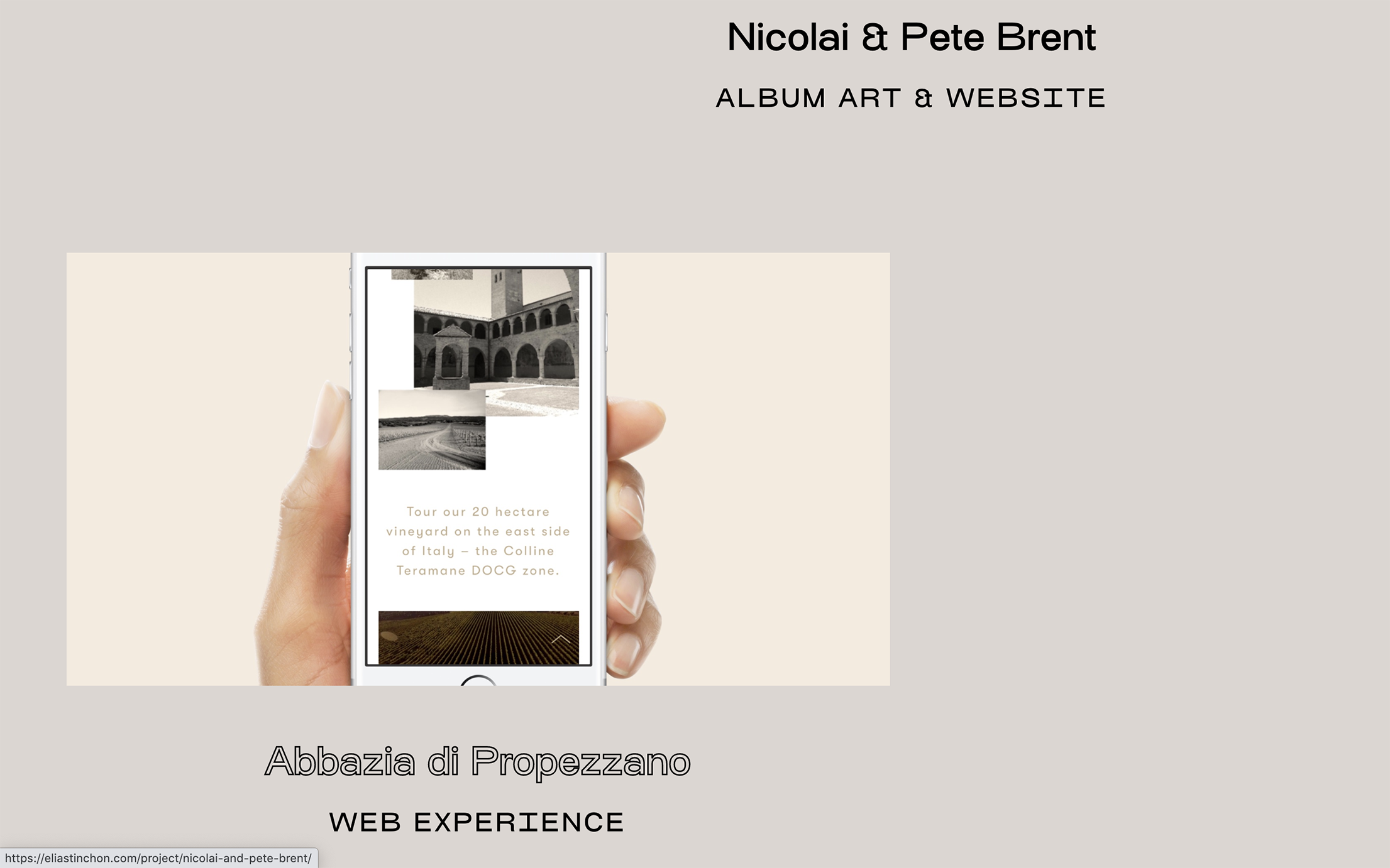 A fine combination of Osmose (Blaze Type) and Riposte (Good Type Foundry) on the portfolio website of Elias Tinchon: