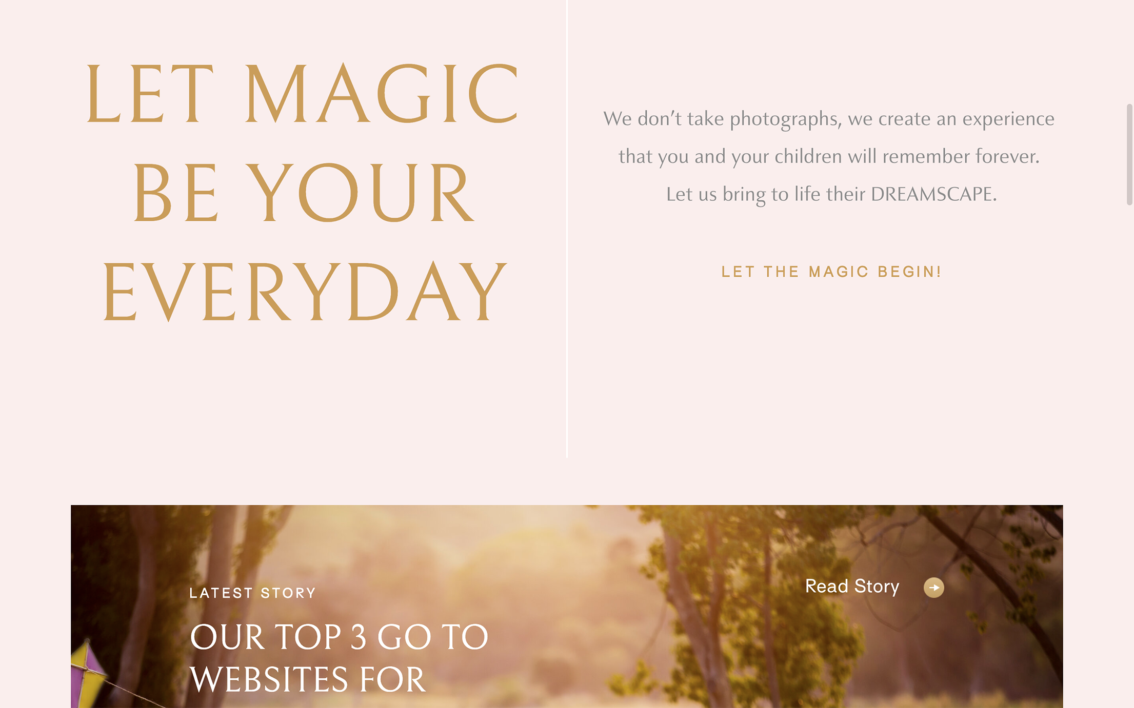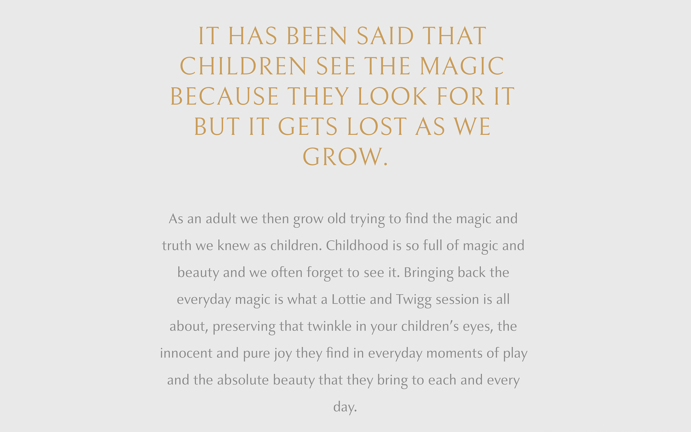 Lottie and Twigg website Contributed by Alain Papazian on Jun 2nd, 2021. Artwork published in June 2020. Source: www.lottieandtwigg.com.au Lottie and Twig. License: All Rights Reserved. Lottie and Twigg is a “unique photography experience based on the Sunshine Coast in Queensland that is truely inspired by childhood and all that comes with the magic that encircles these precious years.” The typography pairs Bellefair (ShinnType) and Charpentier Sans (Ingo Zimmermann) with Surt (Blaze Type). Source: www.lottieandtwigg.com.au Lottie and Twig. License: All Rights Reserved. Source: www.lottieandtwigg.com.au Lottie and Twig. License: All Rights Reserved. Source: www.lottieandtwigg.com.au Lottie and Twig. License: All Rights Reserved. Source: www.lottieandtwigg.com.au Lottie and Twig. License: All Rights Reserved. Source: www.lottieandtwigg.com.au Lottie and Twig. License: All Rights Reserved. Typefaces More about BellefairGet BellefairMore about Charpentier SansGet Charpentier SansMore about SurtGet Surt Formats Web (5527) Topics Services (1530) Lifestyle (1416) Designers/Agencies unknown (4094) Tagged withkids (291)pink (398)pastels (216)portfolios (756)photographers (183)websites (3482)center-aligned text (1862)quotes (522)menus (UI) (548) Artwork location Australia (639) Post a comment Name Email – will not be published Website Your response Submit Comment More in Lifestyle South Side Sanctuaryc. 2024SpanNick AdamKevin MorelandContributed by Nick Adam BESIDE magazine, Issue 112021BESIDE MediaEliane CadieuxPier-Philippe RiouxContributed by Pier-Philippe Rioux A Proper Drink by Robert Simonson, Ten Speed Press2016Lizzie AllenChristopher BrandContributed by Florian Hardwig Staff Pick Sponsor More in Web Suzane Hôtel & Café2023Collectif.hugeContributed by Sharp Type Allform2020unknownContributed by XYZ Type Paul Lapkin’s portfolio website2023Paul LapkinContributed by Alex Slobzheninov Boldlyc. 2023WØRKSContributed by Roy Cranston Staff Pick More Fonts In Use Hillary for America website and logo2015Michael BierutContributed by Stephen Coles Blog Wired Italia, n. 91, “Visioni 2020”2019Pitis e AssociatiContributed by Production Type Staff Pick The Wedding between Art & Agriculture invitation2009Floor WesselingStudio WesselingContributed by Florian Hardwig Staff Pick Metcalf Foundation Biennial Report 2020–21, “What Matters Now?”2022The Office of Gilbert LiAlina SkysonKonor AbrahamsContributed by David Einwaller Staff Pick Seven Steps to Better Listening1964unknownContributed by Indra Kupferschmid Staff Pick Le Train Théâtre2022Brest Brest BrestContributed by Benoît Bodhuin Staff Pick La BF15 2015–2004c. 2015Bureau 205Contributed by 205TF Staff Pick Planet of the Apes German movie poster1975unknownContributed by Florian Hardwig Staff Pick