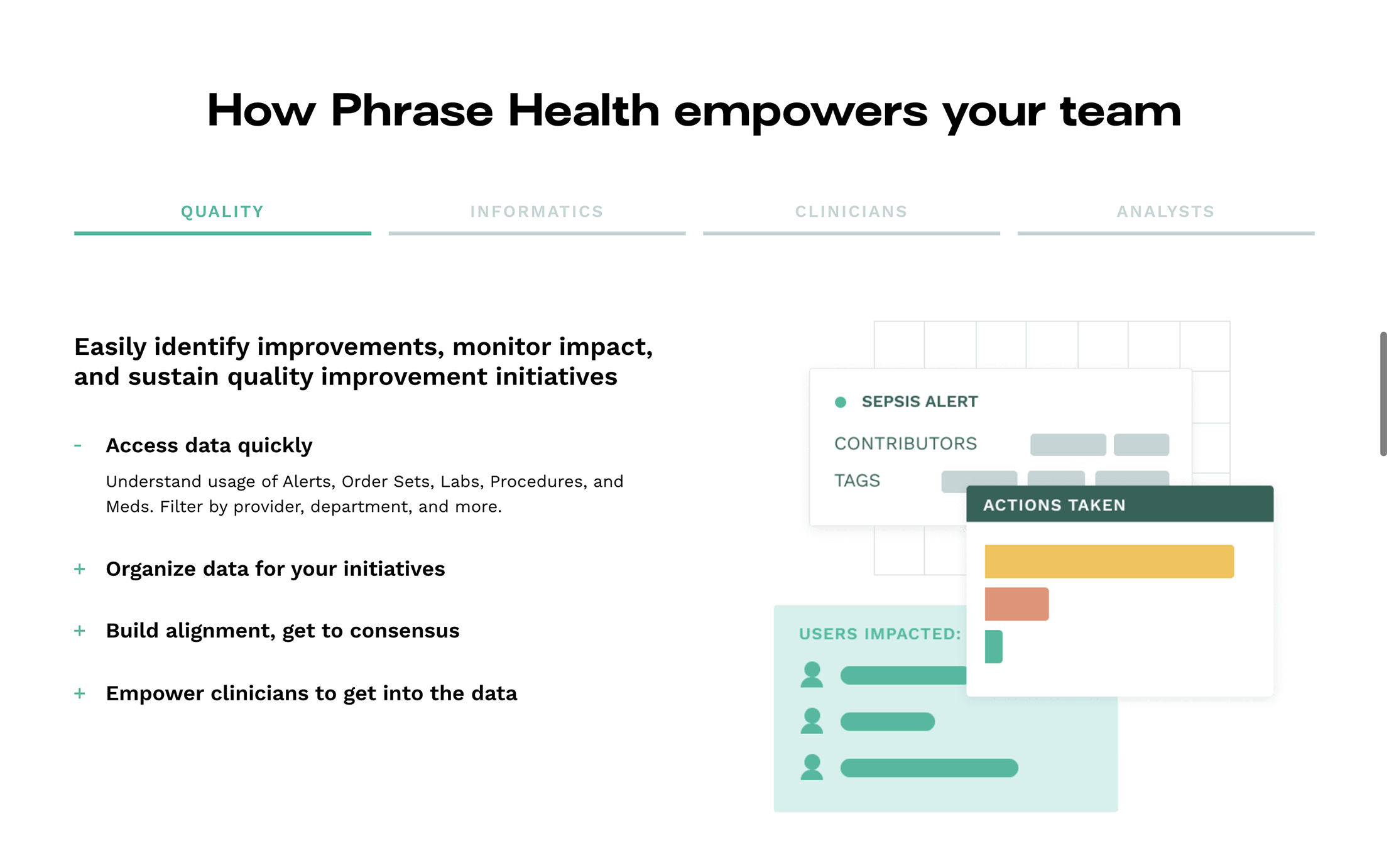 Phrase Health website Contributed by Alain Papazian on Feb 11th, 2021. Artwork published in October 2020. Source: www.phrasehealth.com License: All Rights Reserved. Phrase Health “gives hospitals the ability to track how often EHR clinical decision support tools, such as alerts or order sets, are being used.” The designer picked Surt Extended and Work Sans. Source: www.phrasehealth.com License: All Rights Reserved. Source: www.phrasehealth.com License: All Rights Reserved. Source: www.phrasehealth.com License: All Rights Reserved. Source: www.phrasehealth.com License: All Rights Reserved. Source: www.phrasehealth.com License: All Rights Reserved. Typefaces More about SurtGet SurtMore about Work SansGet Work Sans Formats Web (5565) Topics Product (2082) Services (1538) Technology (1469) Health/Fitness (873) Designers/Agencies Aly Agoff (1) Tagged withdata visualization (118)software (93)medical (52)hospitals/clinics (40) Artwork location United States (9840) Philadelphia (66) Pennsylvania (58) In SetsDesigns by Women (Fonts In Use Staff) (3526) 2 Comments on “Phrase Health website” Aly Agoff says: Feb 12th, 2021 6:16 pm This was my work! Thank you for featuring it. :) Florian Hardwig says: Feb 12th, 2021 7:15 pm Thanks for letting us know, Aly! Credit added. Post a comment Name Email – will not be published Website Your response Submit Comment More Surt in use Resident2023VanderbrandContributed by Vanderbrand 3 ON exhibition posterc. 2020Katharina FrickContributed by Katharina Frick Hinterland Music Festival website2020Now NowContributed by Alain Papazian Sponsor More in Technology Engineering meets art, TU Dortmund2019Ten Ten TeamIna BungeJonas HerfurthContributed by Production Type Pillowtalkc. 2024Belen TenorioCherri HartiganContributed by Belen Tenorio Nagas2023unknownContributed by Darden Studio Franz Constructores2016Mariano MoralesContributed by Emtype Foundry Staff Pick More in Web Senyor Estudi identity2019Senyor EstudiDaniel GuixContributed by Lluís Serra Efteling website2014unknownContributed by Florian Hardwig Genius.com2015Kokoro & MoiContributed by Patch Hofweber Staff Pick BilaDzyga website2021unknownContributed by Marchela Mozhyna More Fonts In Use Super Sexe signunknownContributed by Stephen Coles Staff Pick Kunsten å ikke kaste matc. 2018HandverkEivind Stoud PlatouContributed by Frode Helland (Monokrom Skriftforlag) Staff Pick Ceramicah2022Present StudioContributed by Present Studio Staff Pick Myspace 2012 redesign preview2012JosephmarkContributed by Stephen Coles Staff Pick
