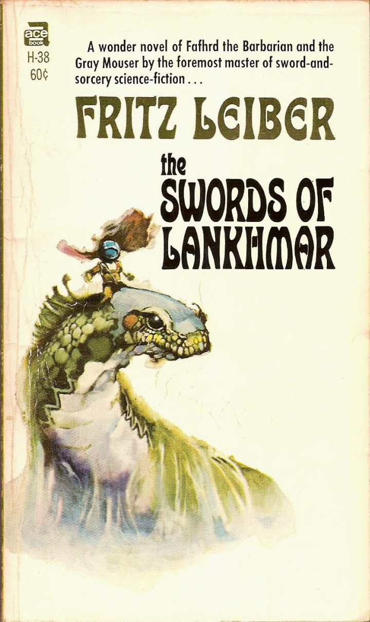 The Swords of Lankhmar (#5), Ace H-38, 1968. Futura Condensed is used for the blurb.