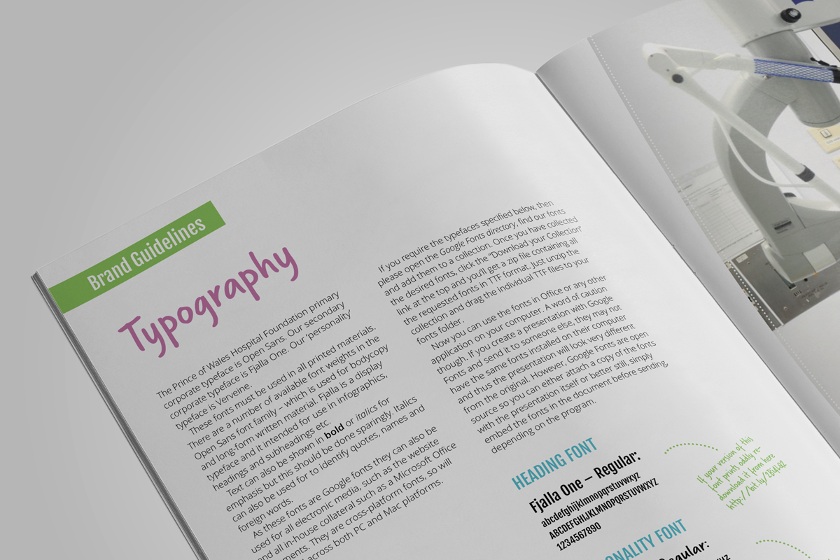 The ‘personality’ typeface is Verveine – whilst used sparingly for quotes and select words, it’s hand-drawn nature adds some humanity to otherwise quite corporate digital documents and creates a more casual and approachable tone (taking the brand away from coming across as too clinical).