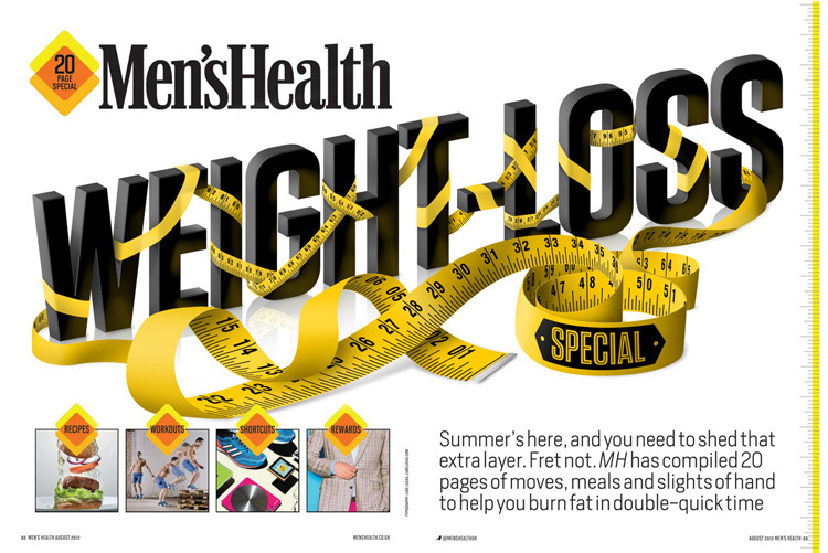 “This illustrative type treatment was commissioned by Men’s Health (UK) Magazine for the opening spread of a weight loss special in the August 2012 edition. The brief was to incorporate the Hoefler & Frere-Jones typeface Tugsten Semi-Bold with a tape measure.” — Luke Lucas