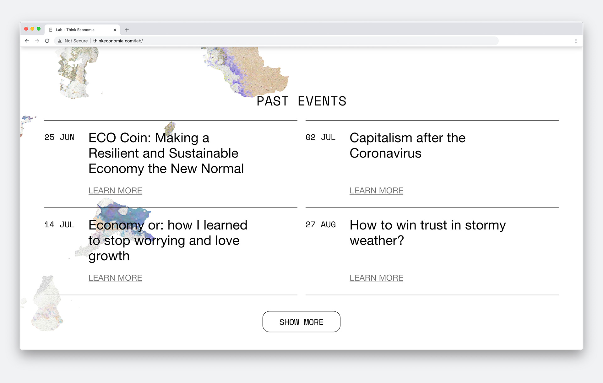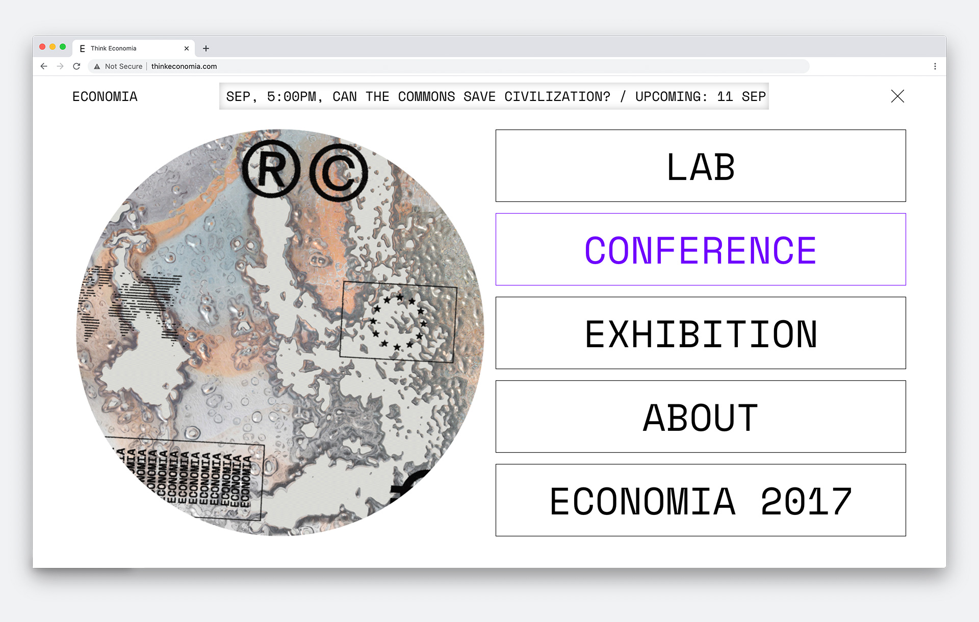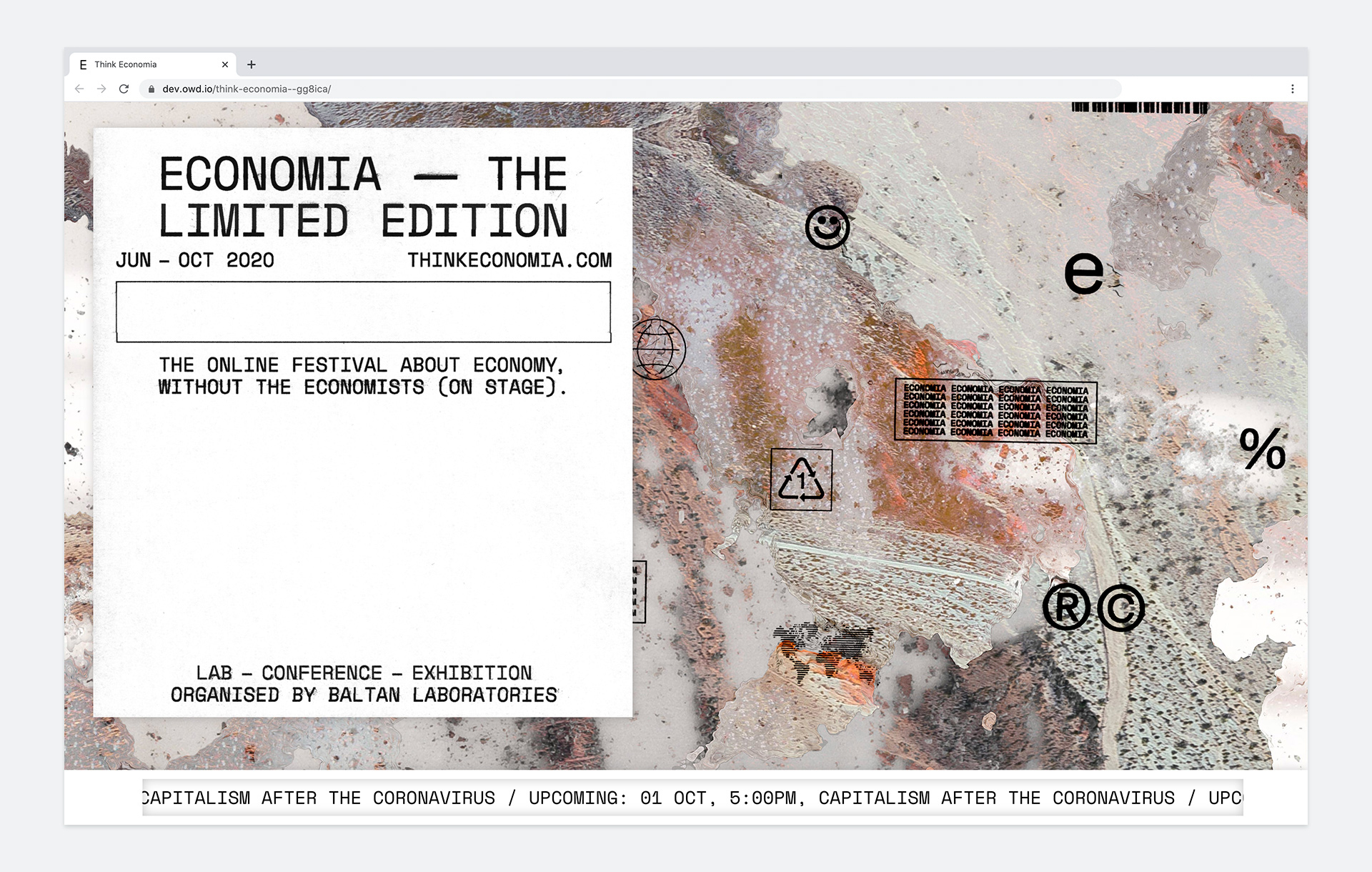 Website design for Economia Limited Edition 2020, a festival by Baltan Laboratories about the economy with a series of events happening both online and live throughout June to October.