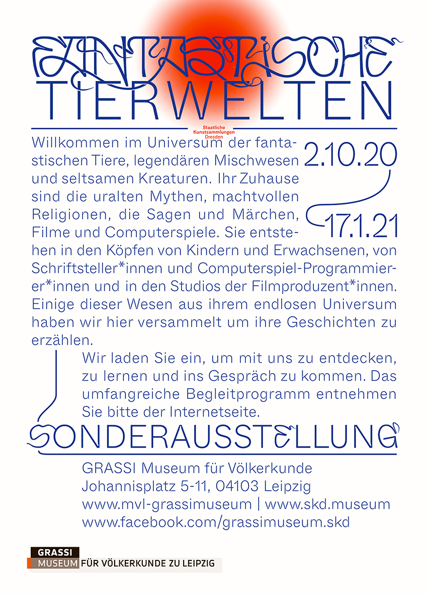 In October 2020 the honorable Grassi Museum in Leipzig presented an exhibition on the subject of the world of fantastic creatures, Fantastische Tierwelten.