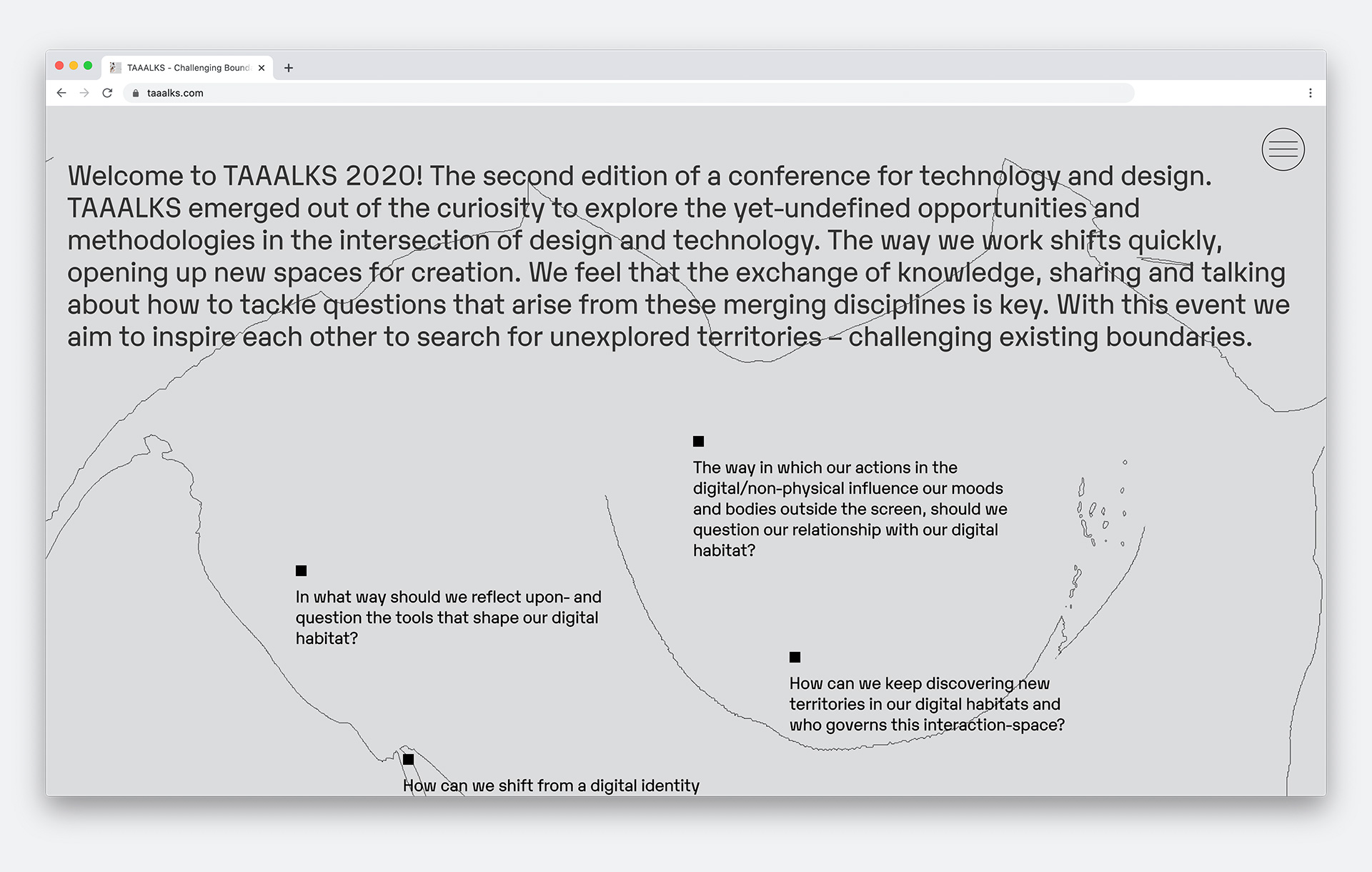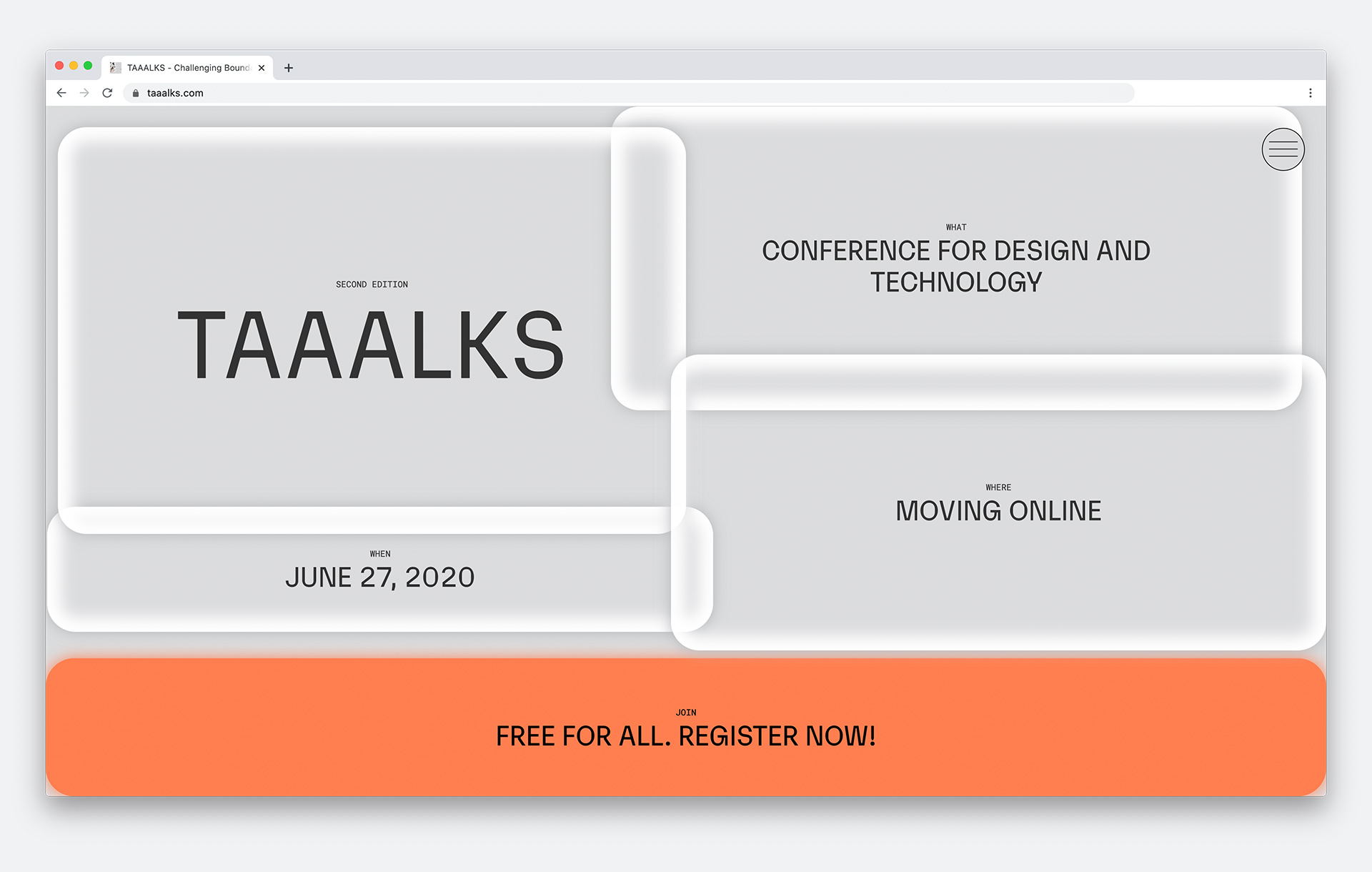 Identity and website for the second edition of the TAAALKS conference for technology and design, which took place online in June 2020: