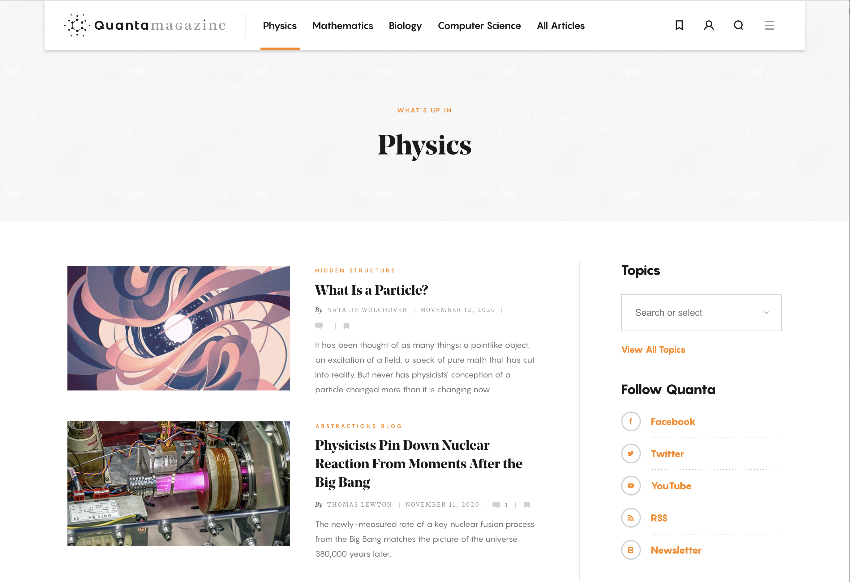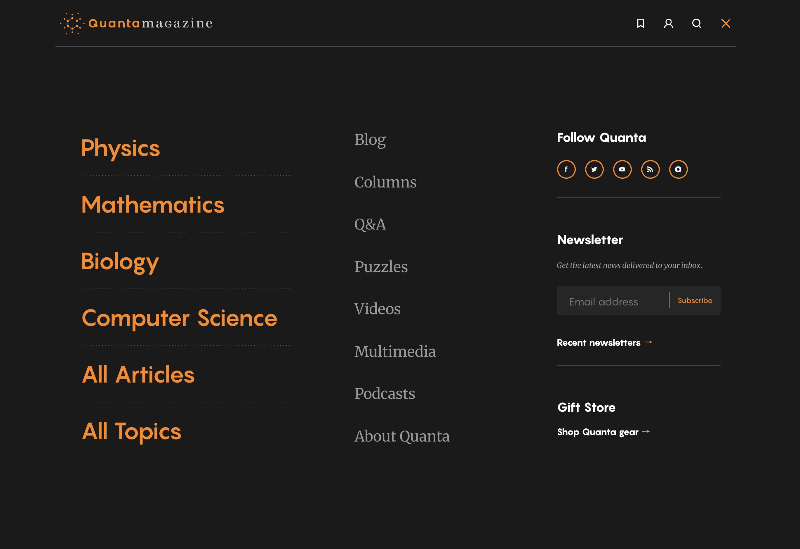 The Quanta Magazine website uses Noe Display for their headlines, and Pangram Sans for menu and navigation. Merriweather is used for body text, bylines, dates, and subheads. The publication describes itself this way: