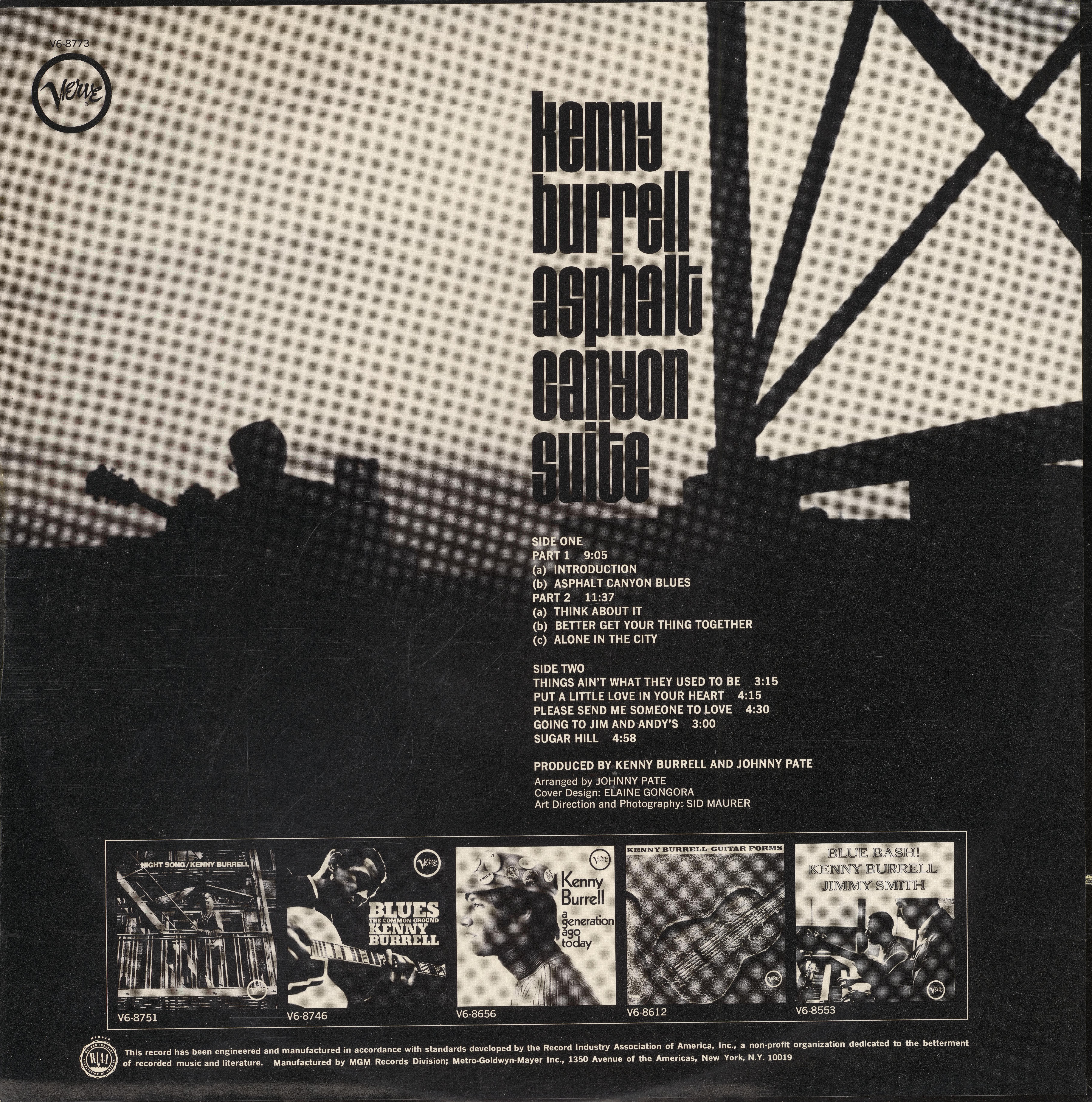 Kenny Burrell – Asphalt Canyon Suite album art Contributed by Garrison Martin on Feb 14th, 2024. Artwork published in 1969. Source: archive.org Internet Archive. License: All Rights Reserved. Asphalt Canyon Suite is a studio album by the jazz guitarist Kenny Burrell (b. 1931). It was recorded in 1969 and released on the Verve label. Art direction and photography by Sid Maurer. Cover design by Elaine Gongora. [More info on Discogs] Source: archive.org Internet Archive. License: All Rights Reserved. Typefaces More about Pacella Graphic BiformMore about News GothicGet News Gothic Formats Album Art (4251) Topics Music (6366) Designers/Agencies Elaine Gongora (1) Sid Maurer (7) Tagged withKenny Burrell (3)Verve Records (23)vinyl records (3365)album records (2826)jazz (493)post bop (9)1960s (778)one word per line (203)back covers (2270) Artwork location United States (9923) New York City (2914) In SetsDesigns by Women (Fonts In Use Staff) (3588)Photo-Lettering, Inc. (Florian Hardwig) (614) Post a comment Name Email – will not be published Website Your response Submit Comment More News Gothic in use The Mike Mainieri Quartet – Insight album art1968Alex GnidziejkoContributed by Florian Hardwig Interstellar movie posters and main title2014BLT CommunicationsConcept ArtsContributed by Rob Hudson Staff Pick Astrological Revelations About You by Sydney Omarr1969John AlcornContributed by Jen Hood Staff Pick Sponsor More in Music Takao Rock2018Onion DesignContributed by Gareth Hague Staff Pick The Dave Brubeck Quartet – Dave Brubeck at Storyville: 1954 album art1954S. Neil FujitaContributed by Florian Hardwig Staff Pick Spacemen 3 – Playing With Fire album art1989Robert Winterman Design GroupSpacemen 3Contributed by John O'Reilly Kevin Ayers – Banana Productions (The Best of) album art1989Phil SmeeContributed by Florian Hardwig Staff Pick More in Album Art The Beach Boys – Friends album art1968Geller & Butler AdvertisingContributed by Robby Rhodes Tyler, the Creator – Don’t Tap the Glass album art and campaign2025unknownContributed by Alex Nguyen Sonic Youth – Sonic Youth EP1982unknownContributed by Nathan Prost Andy Warhol’s Frankenstein1973Larry LurinThe Rosebud StudioContributed by Matthijs Sluiter More Fonts In Use 7 Up branding (1975–1980)c. 1975Thomas MillerMorton Goldsholl AssociatesContributed by Stephen Coles Staff Pick Bernar Venet, Éditions Dilecta2019deValenceContributed by Production Type Staff Pick A Passionfruit as Big as the Ritz by Bill Powell2025Dale TomlinsonContributed by Jeremy Tankard Staff Pick Plantae2020DesistoMargarida BorgesContributed by Nikolas Wrobel Staff Pick
