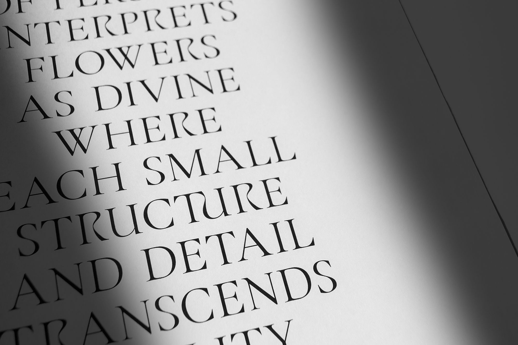 Persona is a publication highlighting the modest and humble beauty of flowers. Editorial design, photography, and type design are used to create an aesthetic that emphasizes each graceful and delicate structure found in flowers. Jugendreisen, an Oldstyle/Garalde typeface with details inspired by Art Nouveau, was designed specifically for this publication. It’s inspired by nature, showing organic and fluid shapes. The images show issue 1, Transcendência, and issue 2, Beleza Gentil.