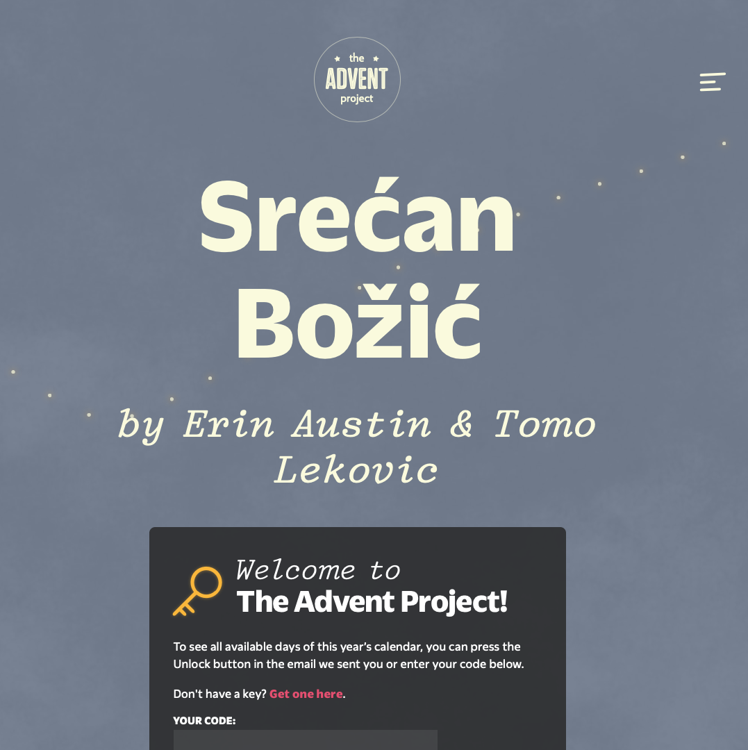 The Advent Project is an online, multimedia advent calendar featuring 24 pieces of bite-sized art by different artists. Each day between December 1st and December 24th, users unlock a new, short piece of media — songs, illustrations, stories, crafts, jokes, and more. This year’s calendar benefits The Community Justice Exchange, a non-profit dedicated to building a community-centered vision of justice.