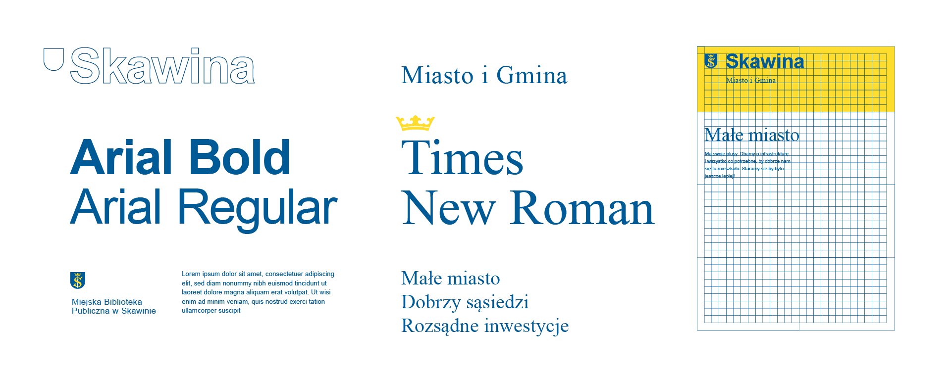 Skawina is – in a good way – a common small town. Good neighbours, easy access to everywhere, nice school, reasonable investment. We felt like this project should also be simple, easy to understand and to use. That is why we chose the most common typefaces: Arial and Times New Roman, and the simplest, easy-to-use layouts, illustrations and icons.