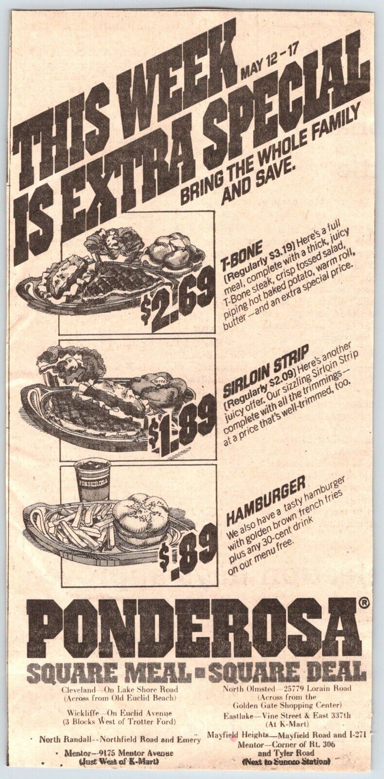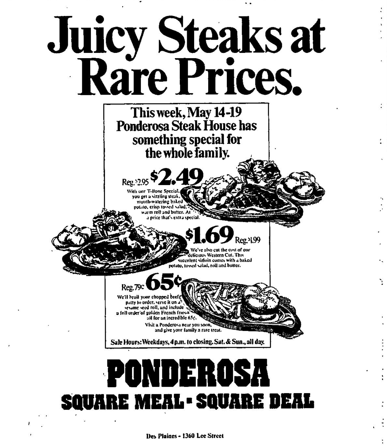 “Juicy Steaks at Rare Prices” newspaper ad, May 1975, ft. Times New Roman