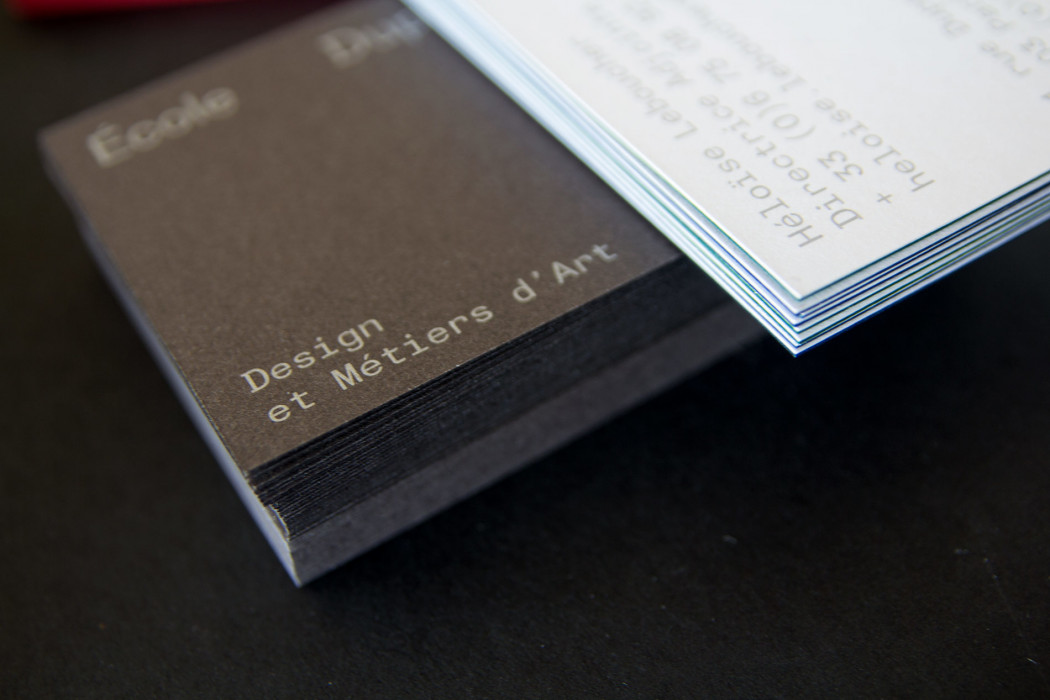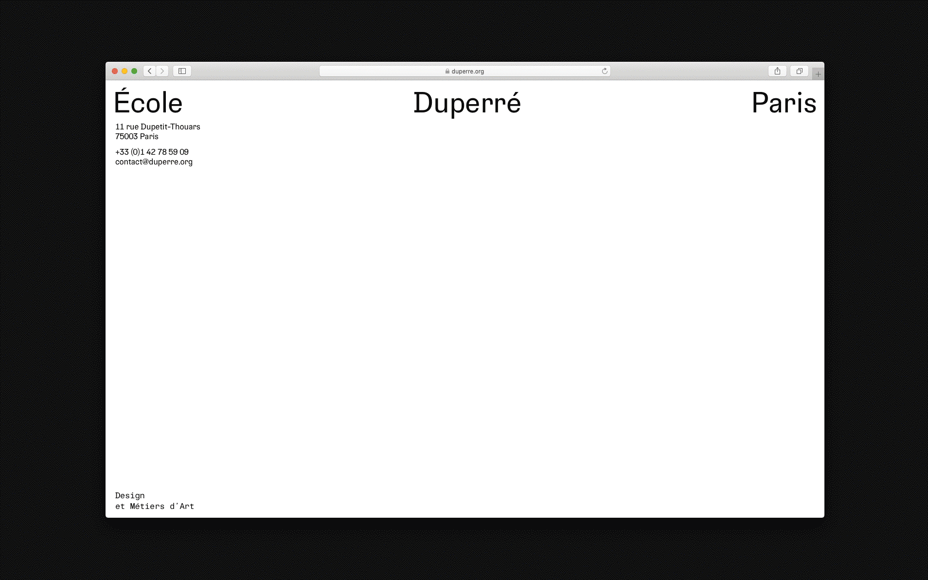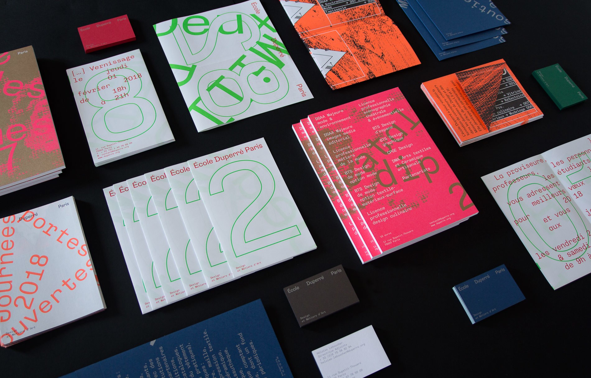 Studio Passages was commissioned to rethink the identity of the École Duperré, an art school in Paris, France. The studio decided to work together with Production Type to create a custom typeface for the school, which would be the sole definitive component of the new identity.