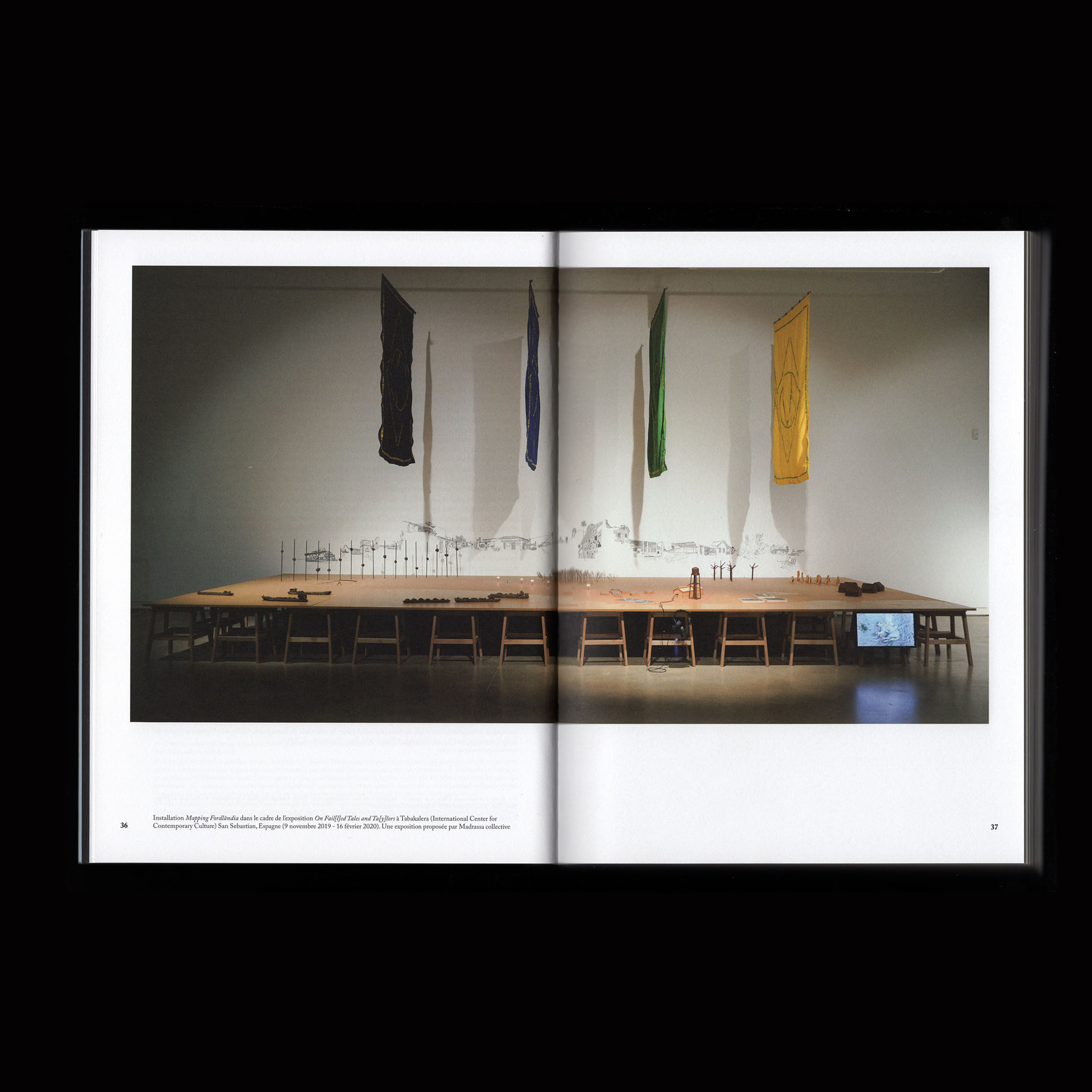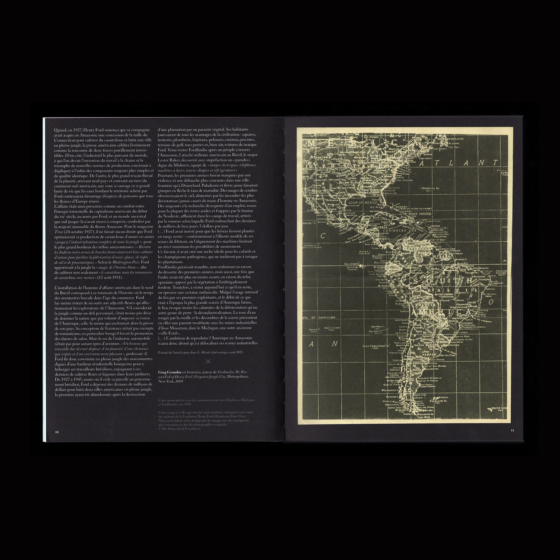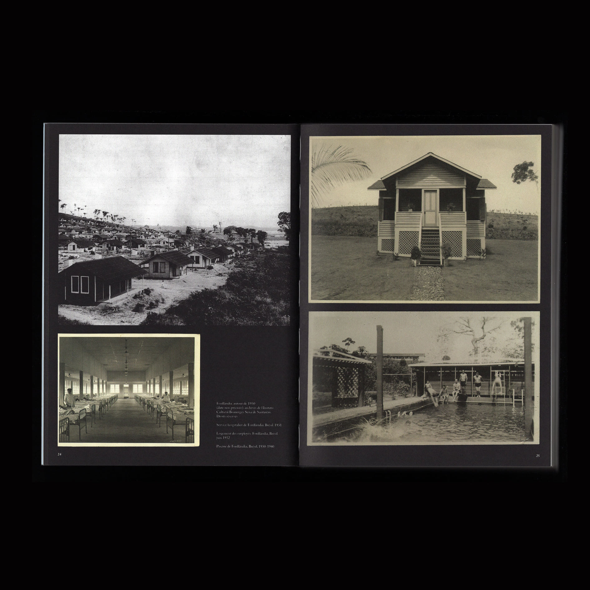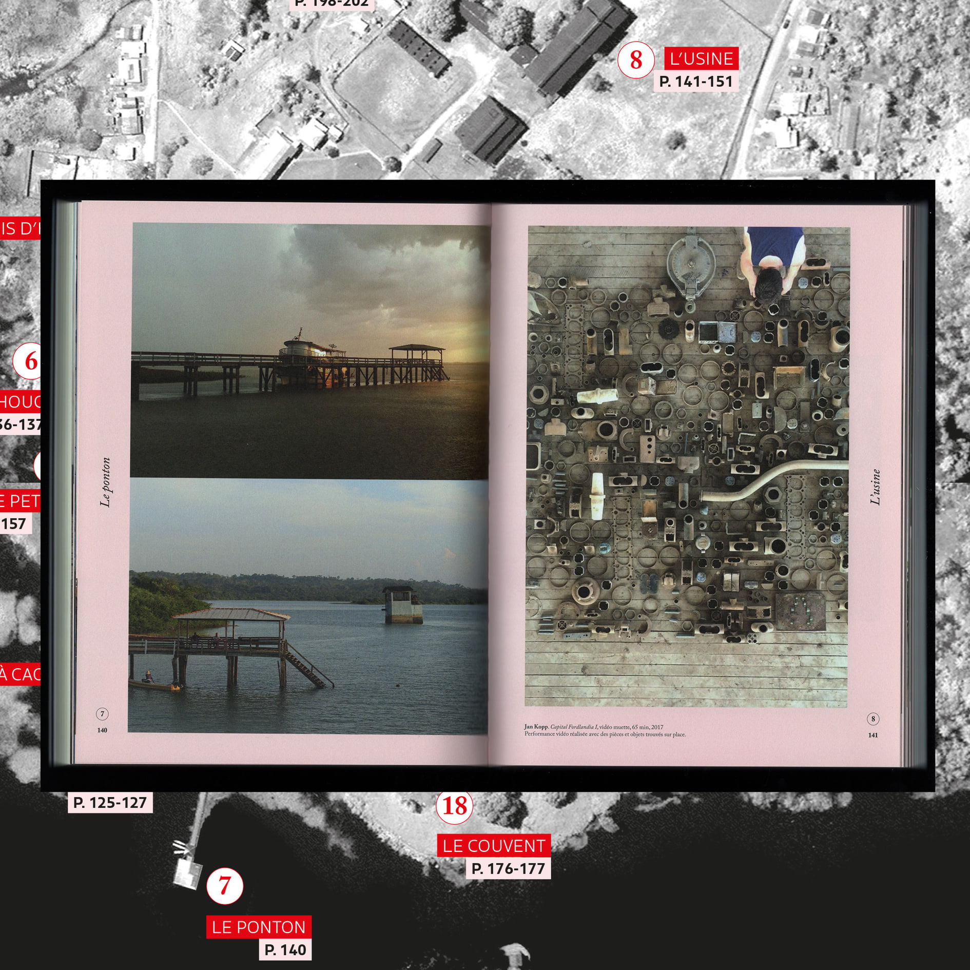 The book Fordlândia is the outcome of a research project and an art residency organized by the Suspended spaces collective, which took place on a boat on the Tapajòs river in Brazil. The boat navigated between the cities of Santàrem and Fordlândia. The latter was devised by American industrial Henry Ford, who decided in 1928 to cut into the Amazon forest in order to set up his own rubber production for the tires of Ford cars. The project was a disaster, as Ford failed to evaluate the weather, the agricultural and the human variables. The goal of this residency was hence to explore the history and legacy of Fordlândia as an encounter of industry and colonialism with the ecological stakes of the Amazon forest.