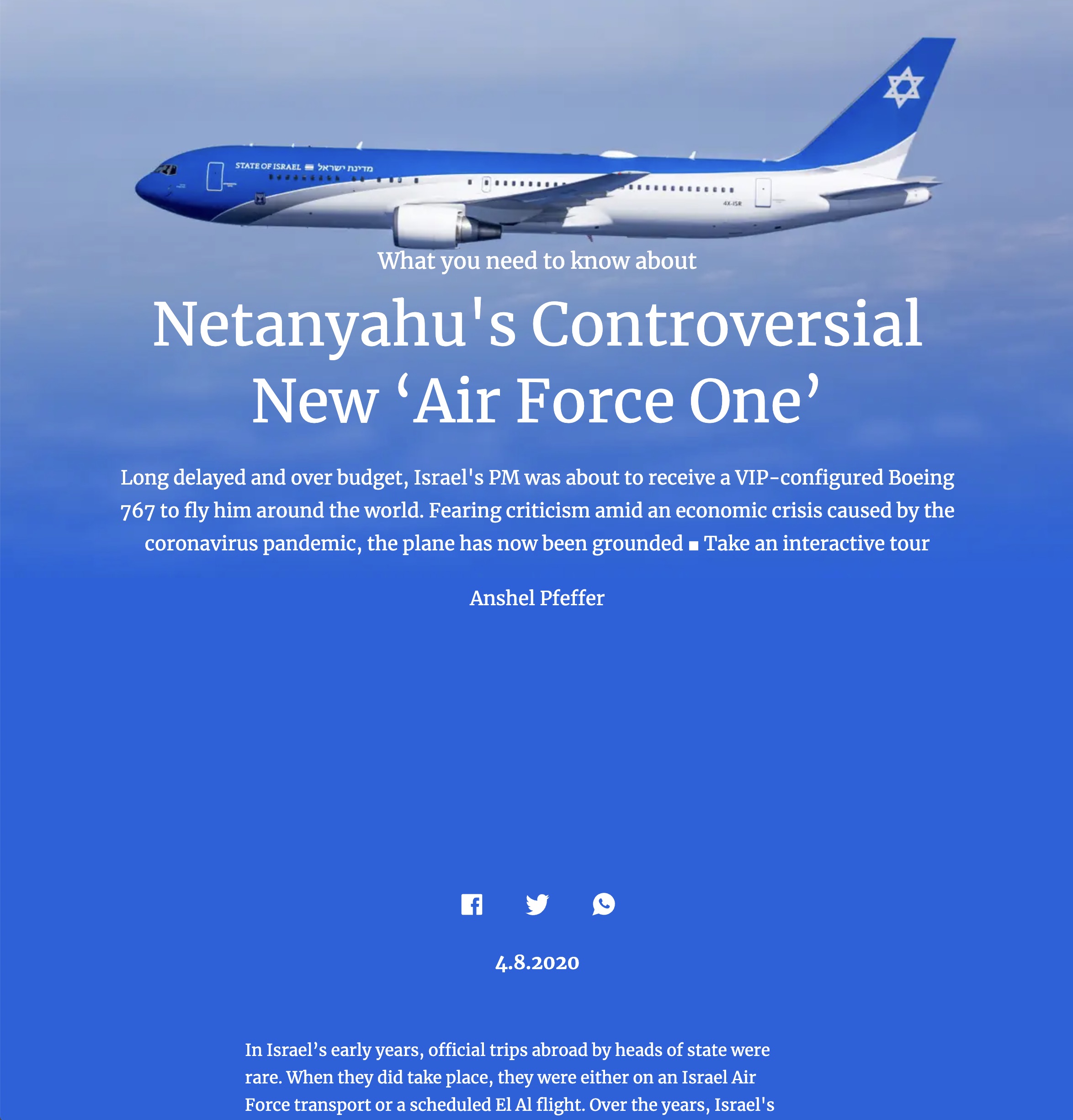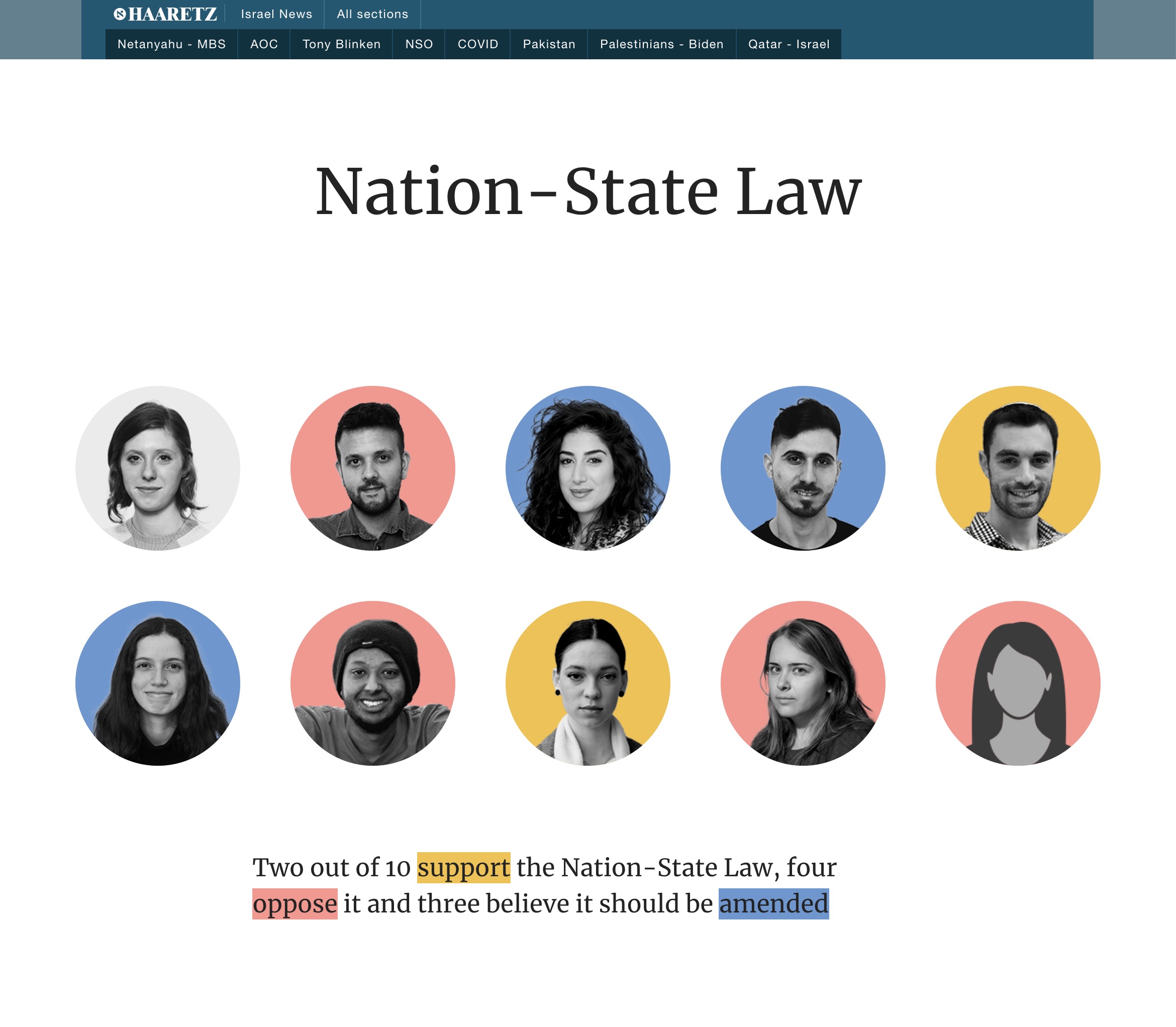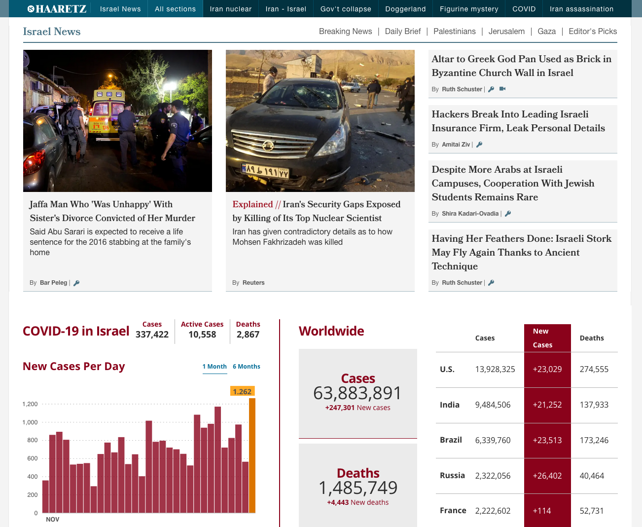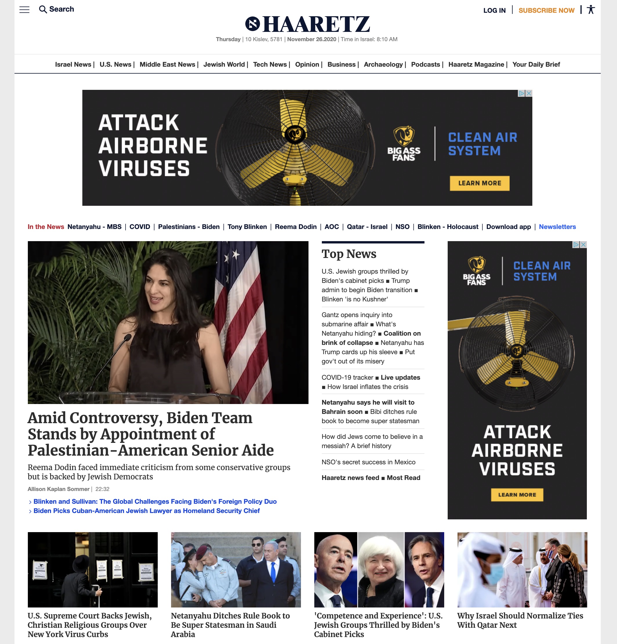 Haaretz.com is the international online edition of the Haaretz newspaper from Israel. It uses a range of typefaces including Merriweather. Merriweather tends to be used in full articles rather than in lists of articles and is used in special or featured content. It appears in several weights and is paired with the sans-serif Neue Helvetica (or Arial in some environments). Other typefaces used include Open Sans and Bookmania as well as Roboto (not pictured here).