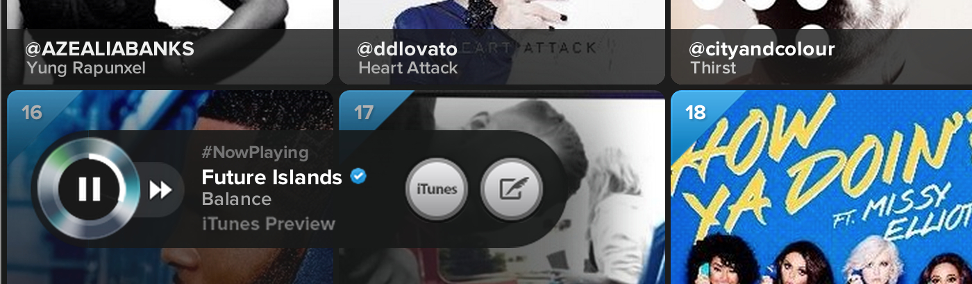 Twitter #music Contributed by Stephen Coles on Apr 19th, 2013. Artwork published in 2013. Source: music.twitter.com License: All Rights Reserved. All the content and UI elements of Twitter’s new #music interface rely solely on three weights of Proxima Nova. They are served as self-hosted webfonts. Source: music.twitter.com License: All Rights Reserved. Source: music.twitter.com License: All Rights Reserved. Source: music.twitter.com License: All Rights Reserved. Source: music.twitter.com License: All Rights Reserved. Source: music.twitter.com License: All Rights Reserved. Typefaces More about Proxima NovaGet Proxima Nova Formats Web (5570) Software/Apps (358) Topics Social Media (266) Music (6284) Designers/Agencies Twitter (2) Tagged withhigh profile (629)Twitter (3)user interfaces (UI design) (289)buttons (UI) (170)UI menus (1)webfonts (449)web apps (43)social networks (18) Post a comment Name Email – will not be published Website Your response Submit Comment More Proxima Nova in use Signal vs. Noise201237signalsContributed by Stephen Coles Tinder “Single, Not Sorry” campaign2018Wieden+KennedyContributed by Swiss Typefaces Staff Pick Game Changer TV showc. 2019Paula SearingContributed by juliaa Sponsor More in Music Mort Garson – Music From Patch Cord Productions album art2020Robert BeattyContributed by Jack Grimes Staff Pick Freaksville National Orchestra album art2023Rémy PoncetBrest Brest BrestContributed by Rémy Poncet Jeff Monn – Reality album art1968Jules HalfantContributed by Matthijs Sluiter Bitch – “Wildcat” / “I’m Gonna Love You” German single cover1973unknownContributed by Garrison Martin More in Web General Projects2025NewTerritoryContributed by Sandrine Nugue Kiwibank2012Ogilvy New ZealandContributed by Stephen Coles Emmi Venna website2017Contributed by Benoît Bodhuin Dictionary Stories website2016CactuslabContributed by Matthew Buchanan More Fonts In Use Eclipse. Jacqueline Doyen2012Delia KellerGestaltung BerlinContributed by Florian Hardwig Staff Pick Soho Radio logo2014unknownContributed by Stephen Coles Staff Pick Crumb at The Bishop Bar concert poster2019Aaron Lowell DentonContributed by Bryson Stohr Staff Pick Fil Roig book series, Tigre de Paper2022Gerard JoanContributed by Gerard Sierra Staff Pick