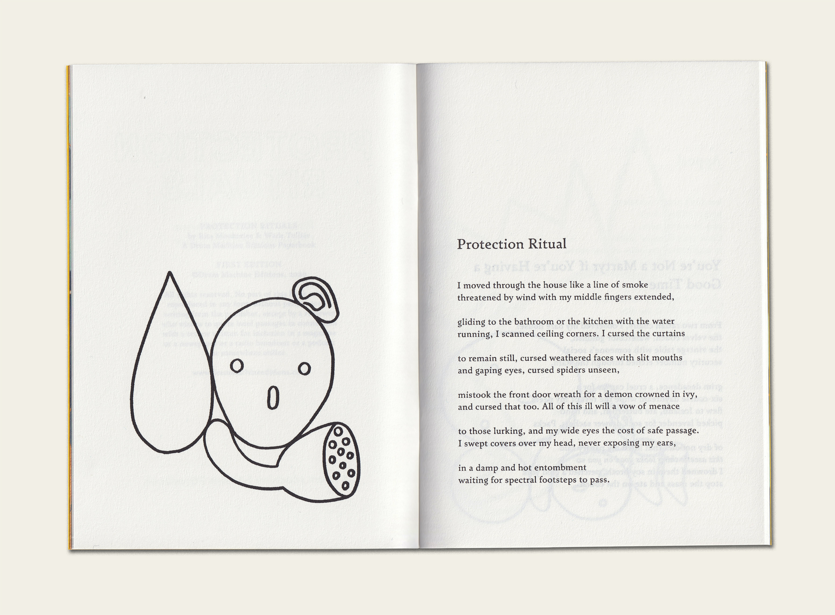 Protection Rituals is a collection of drawings and ekphrastic poems by Wade Tullier (Detroit, Michigan) and Rita Mookerjee (Ames, Iowa).