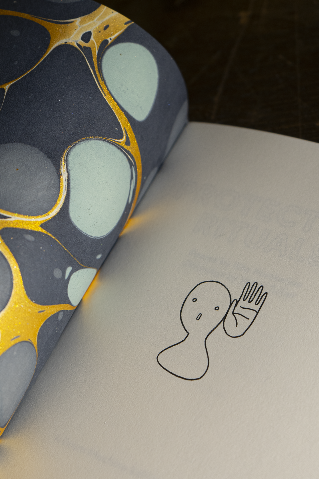 First printing 22 May 2020. Limited edition of 100. Riso-printed in black on FPC Lemon Drop (65#C) and Sweet Tooth (70#T). Saddle-stitch binding with hand-marbled endpapers.