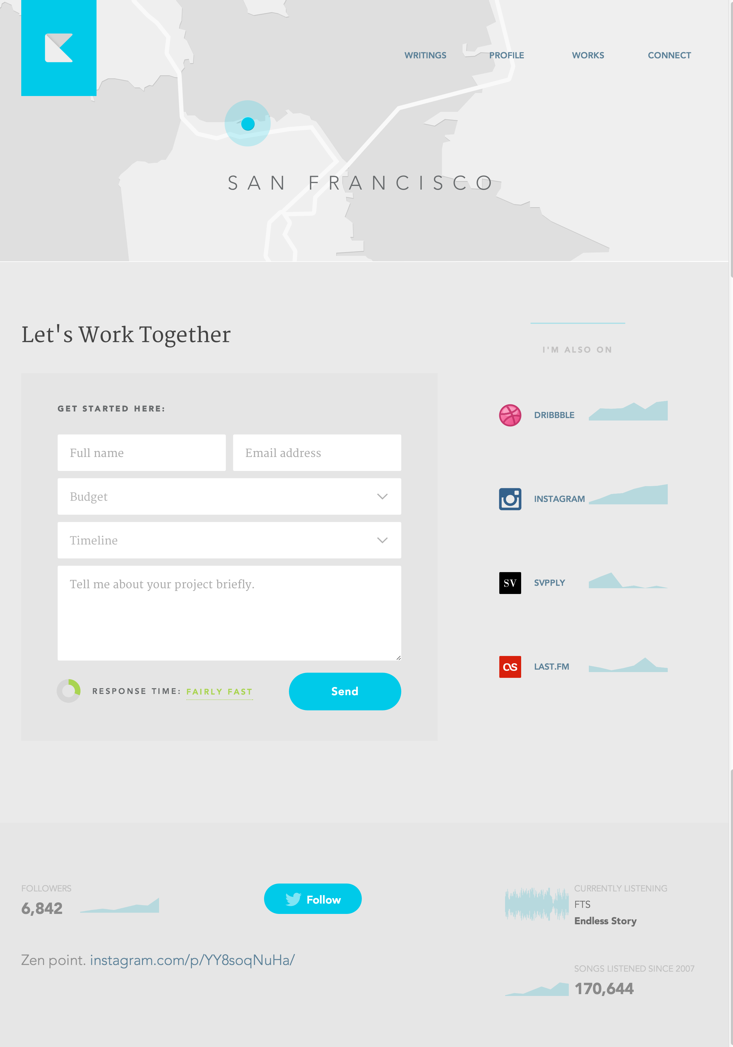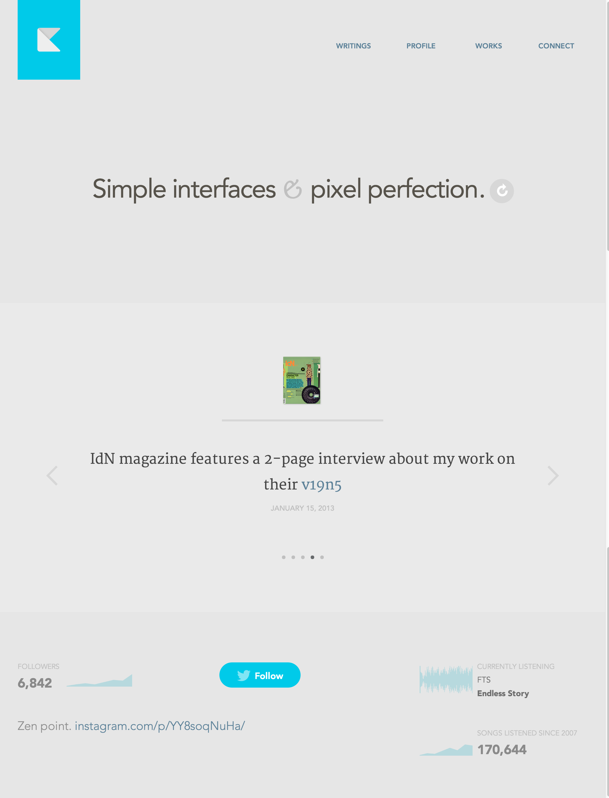 It’s not quite clear what the graphs represent, but the subtle use of FF Chartwell adds some interest to the social network links on Suer’s personal site. Too bad about the straight quotes instead of true apostrophes.