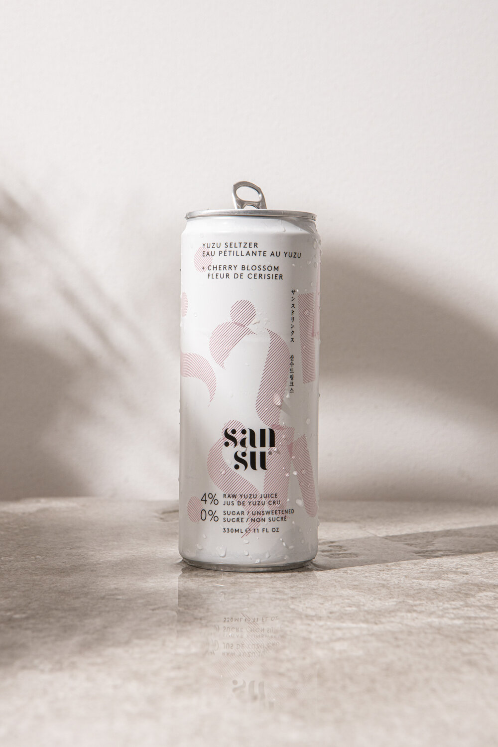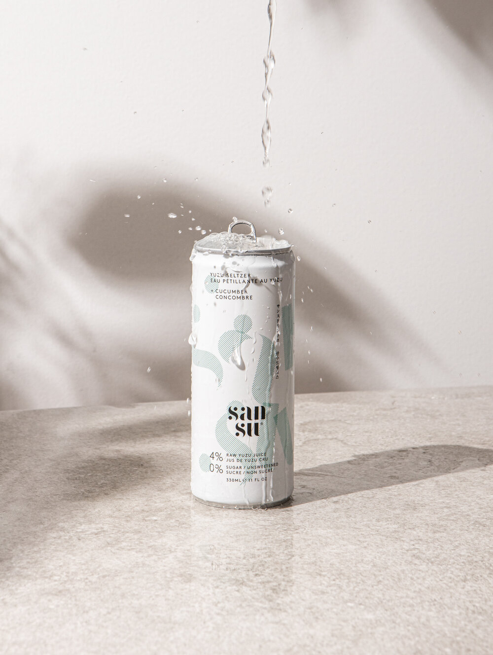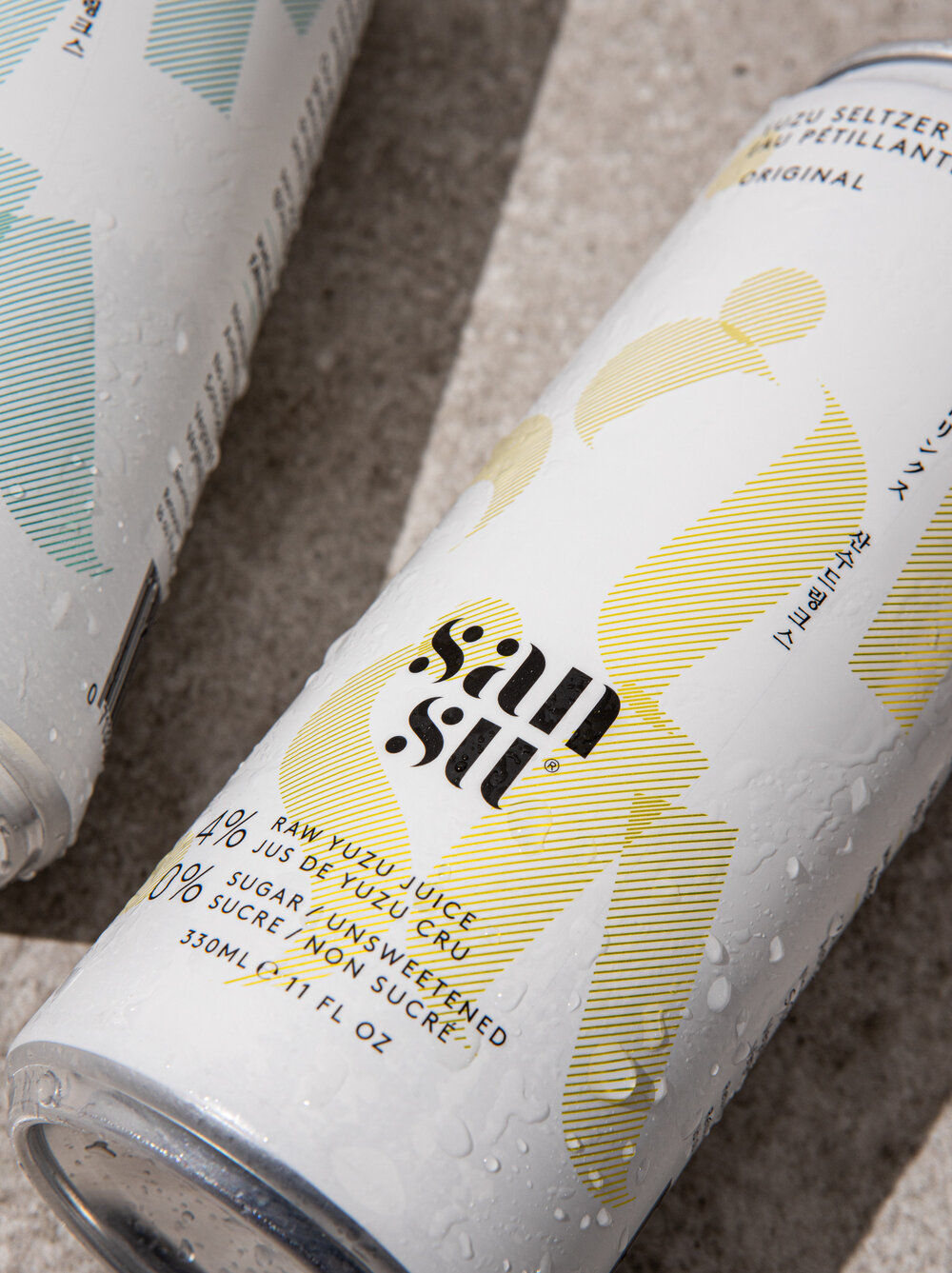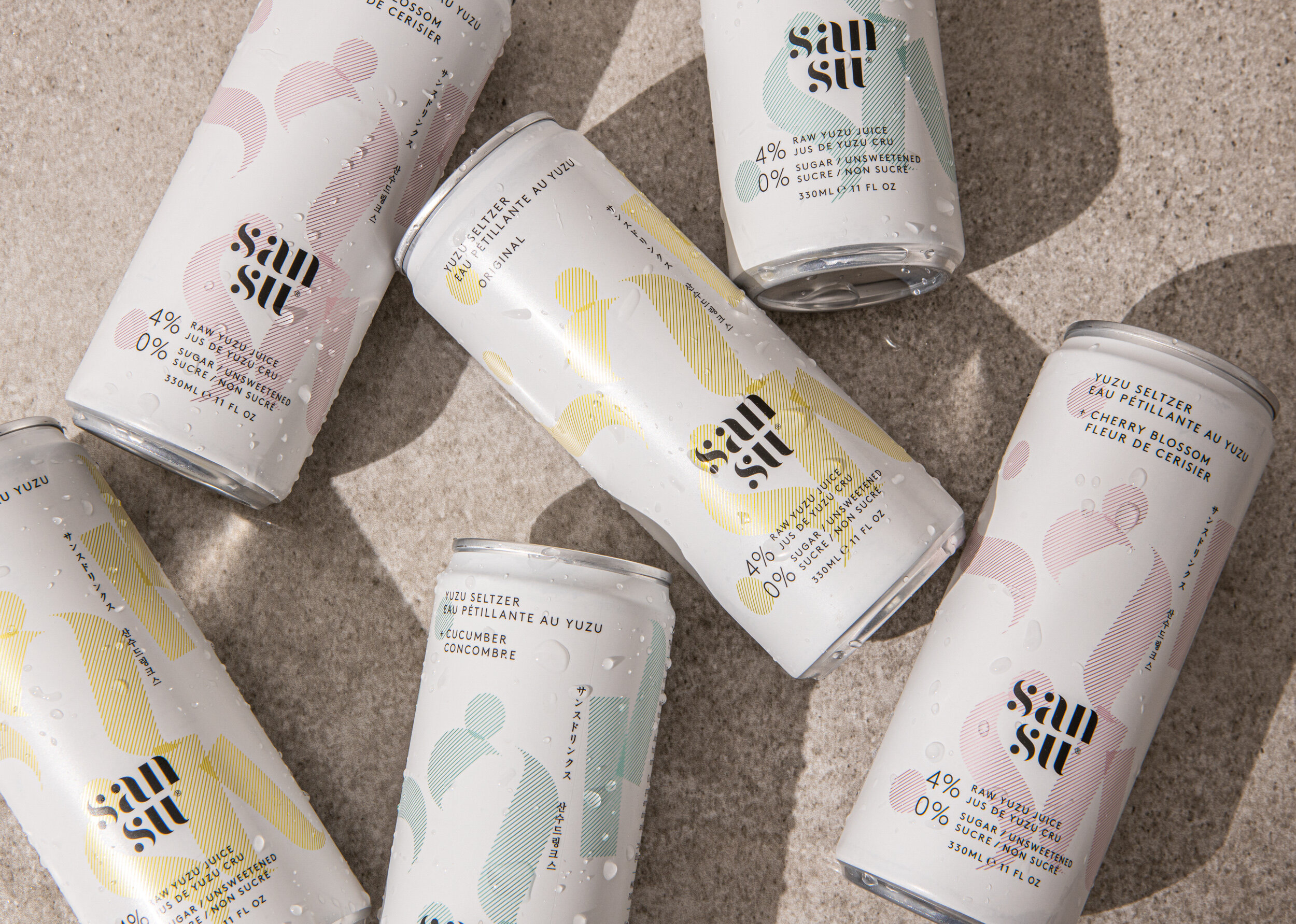 F37 Bella Stencil by F37 Foundry is in use for Sansu, a Yuzu flavoured sparkling drink by Terranamdo. The logo was developed by Studio Thomas. The small text on the cans is set in all-caps LL Brown by Lineto. The typeface used for the Japanese and Korean text is unidentified. Photography by Handover Agency.