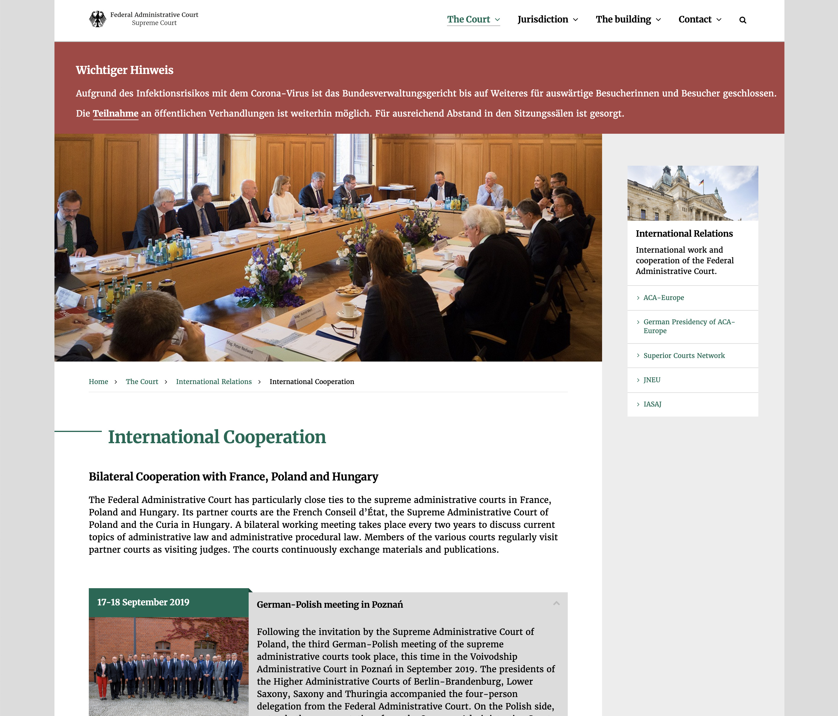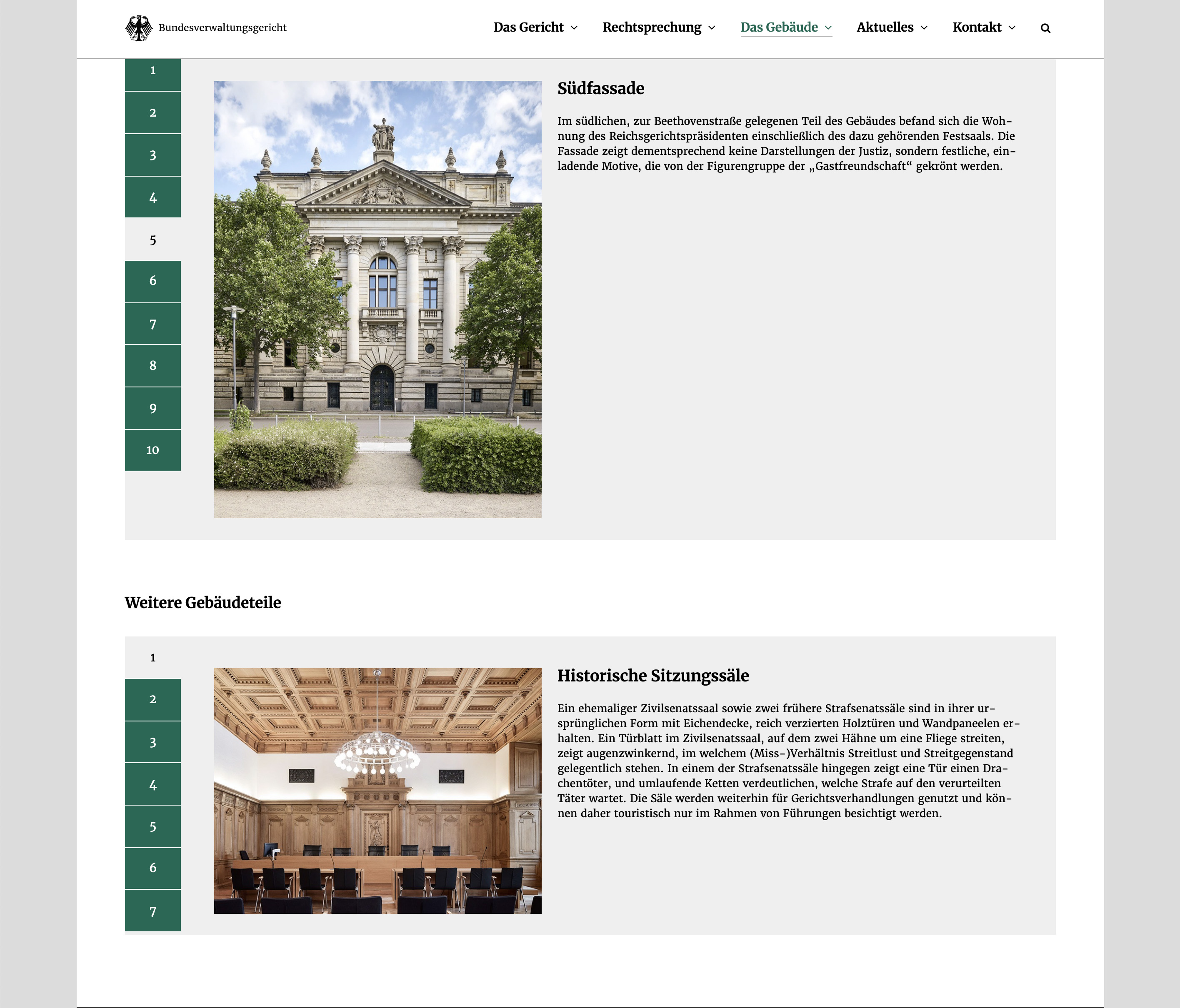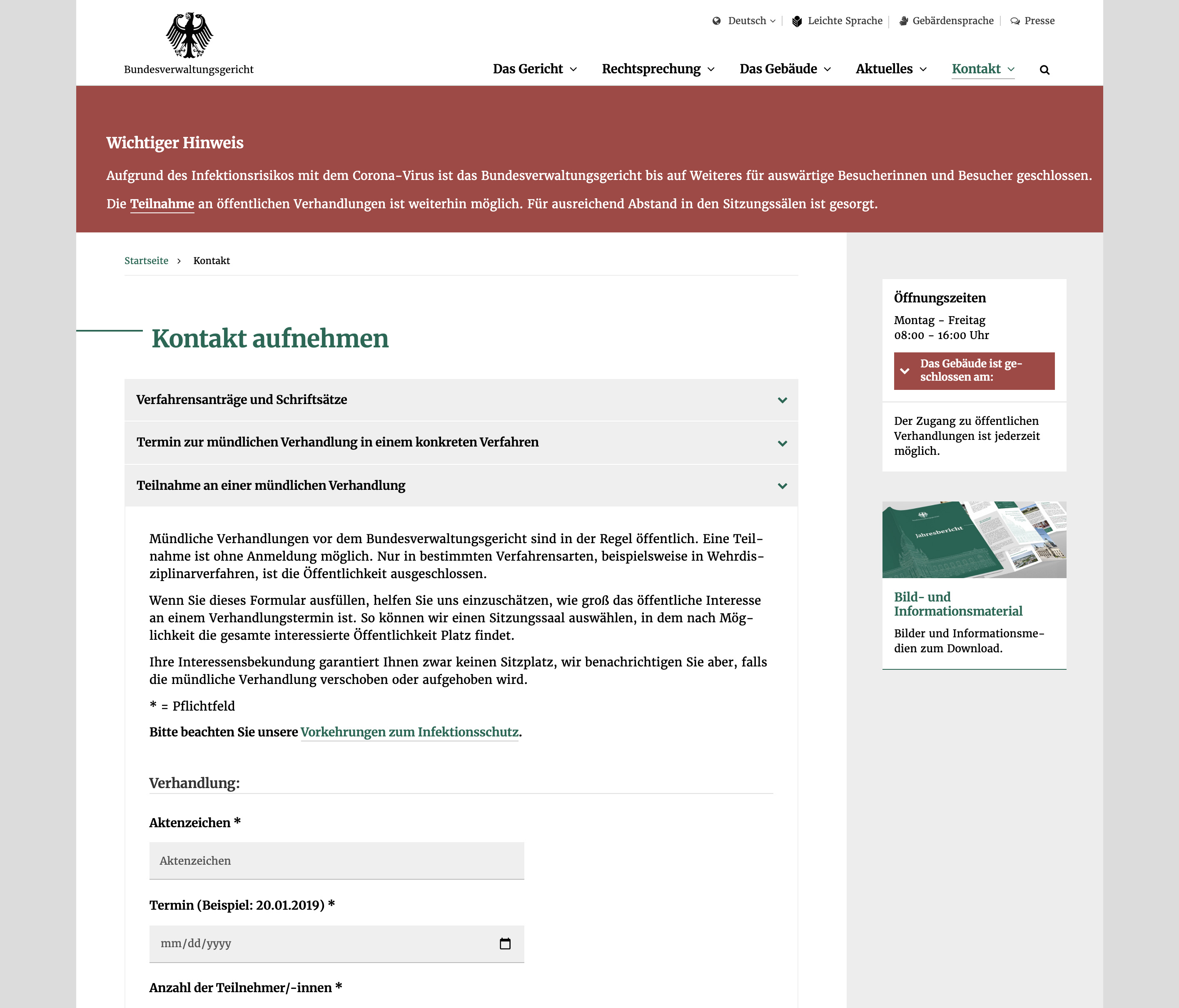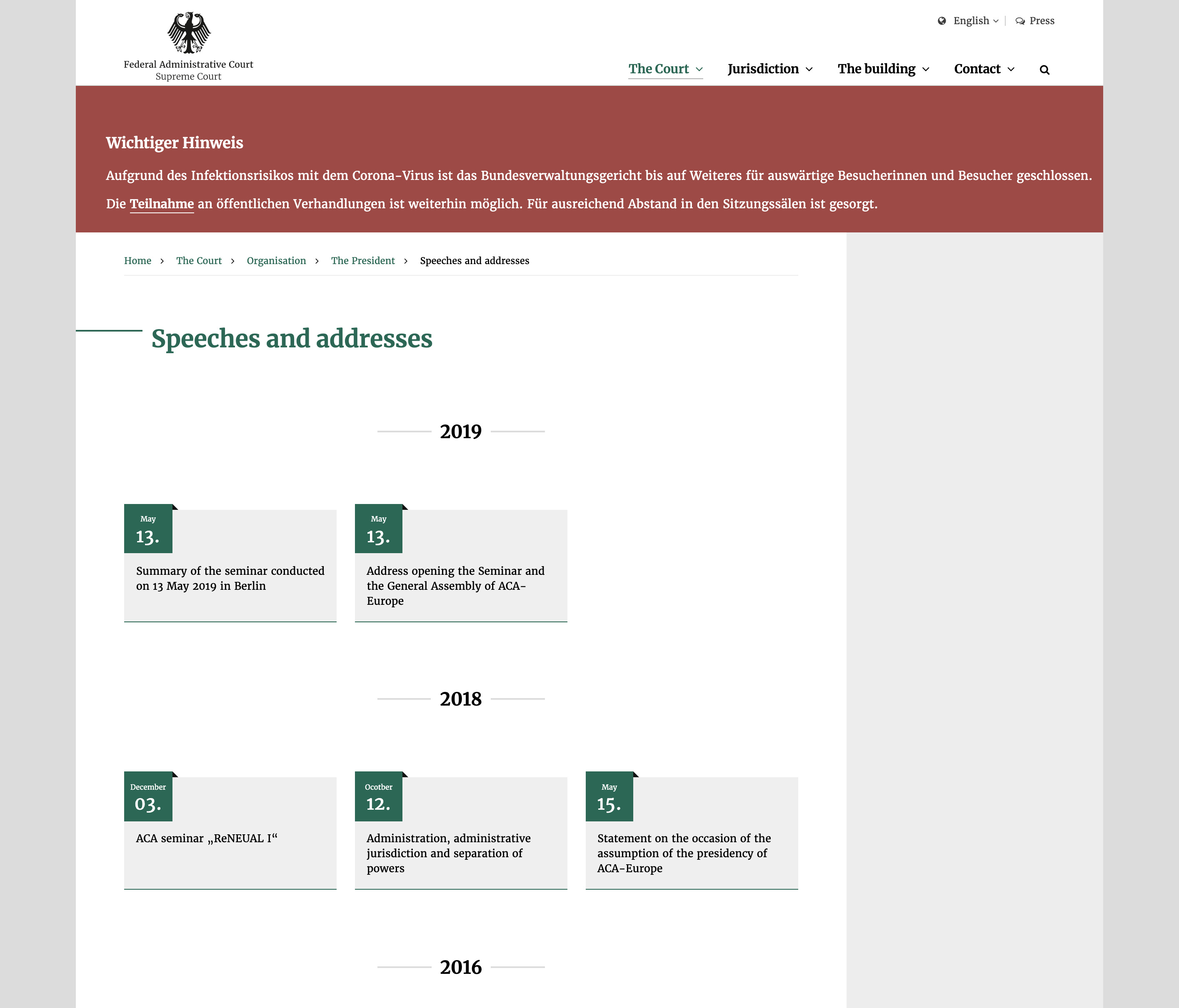 The Bundesverwaltungsgericht (Federal Administrative Court) is the supreme administrative court in the Federal Republic of Germany. The website for the court makes use of Merriweather for all typography, from headlines and subheads to body text. Other documents using Merriweather include pre-printed documents and PDFs and videos. The site and and other media are made available for use in three languages: German, English, and French.