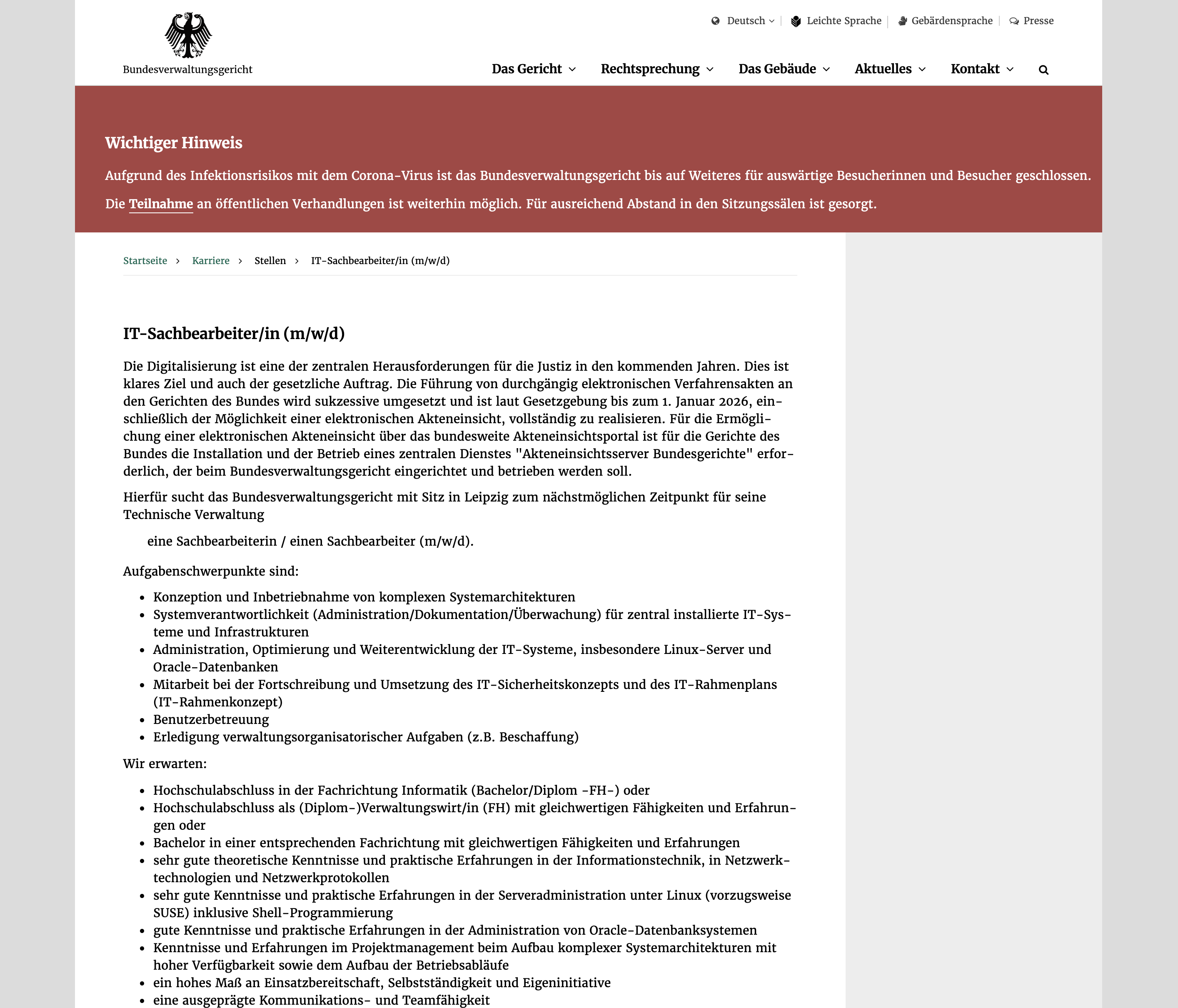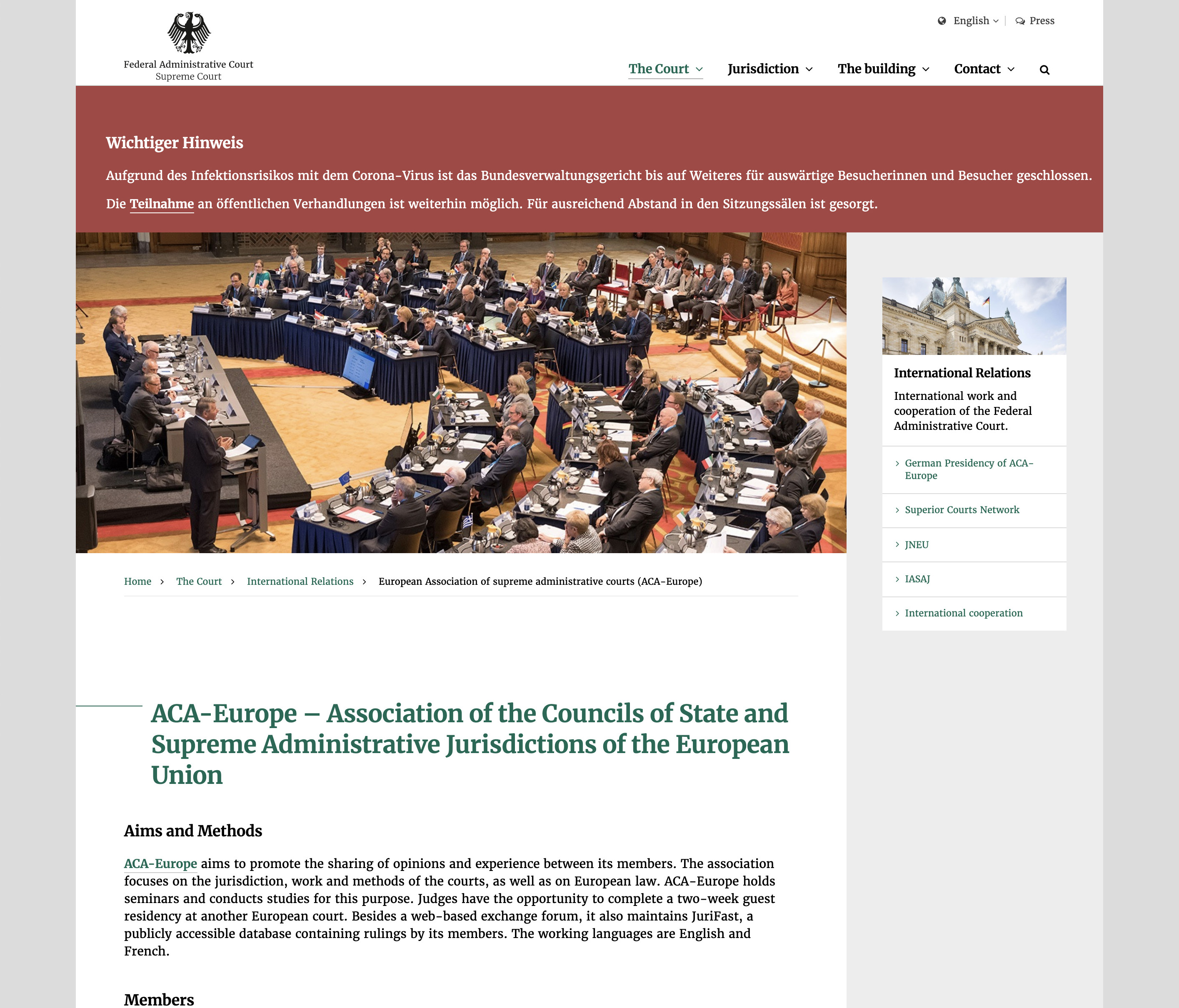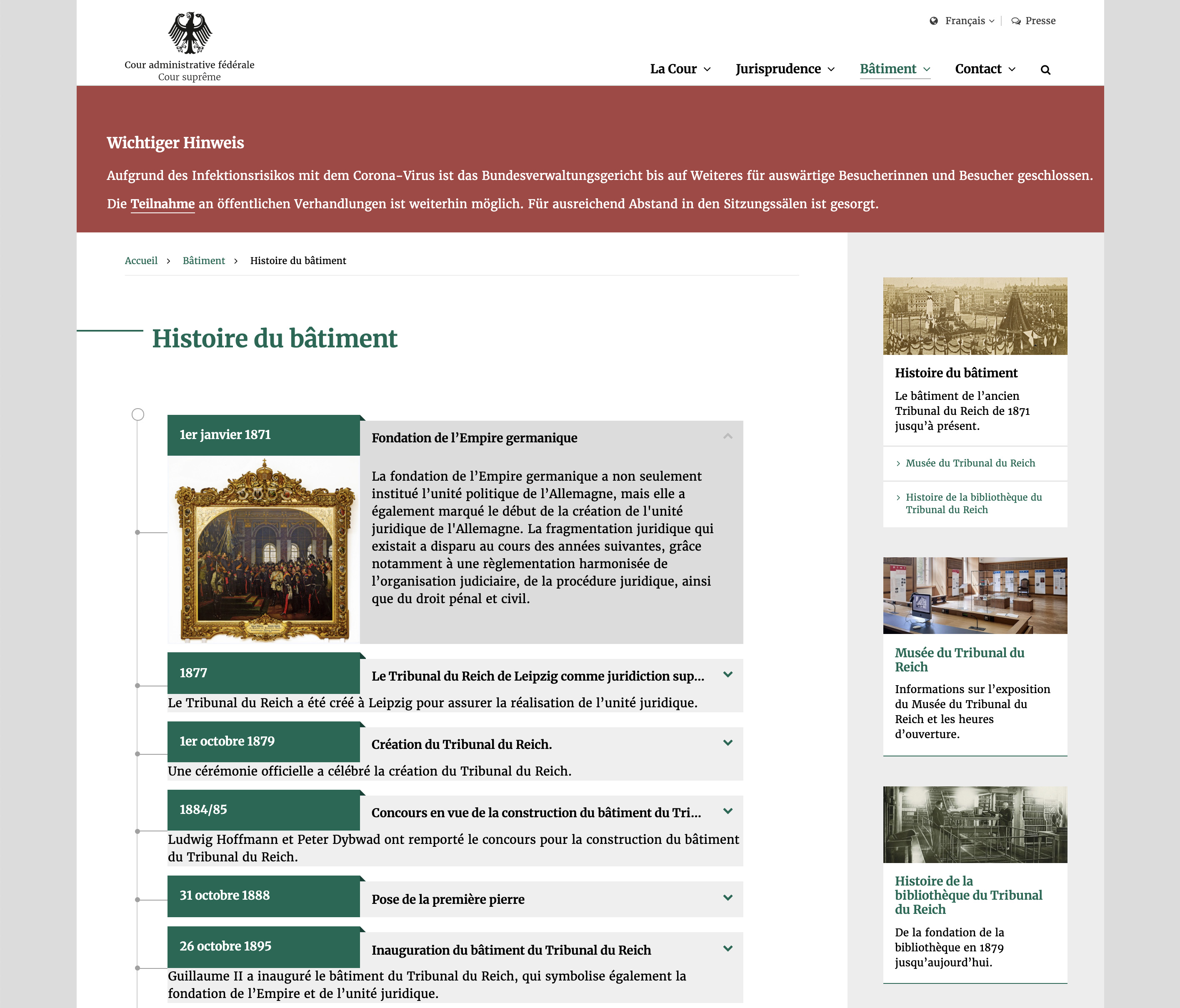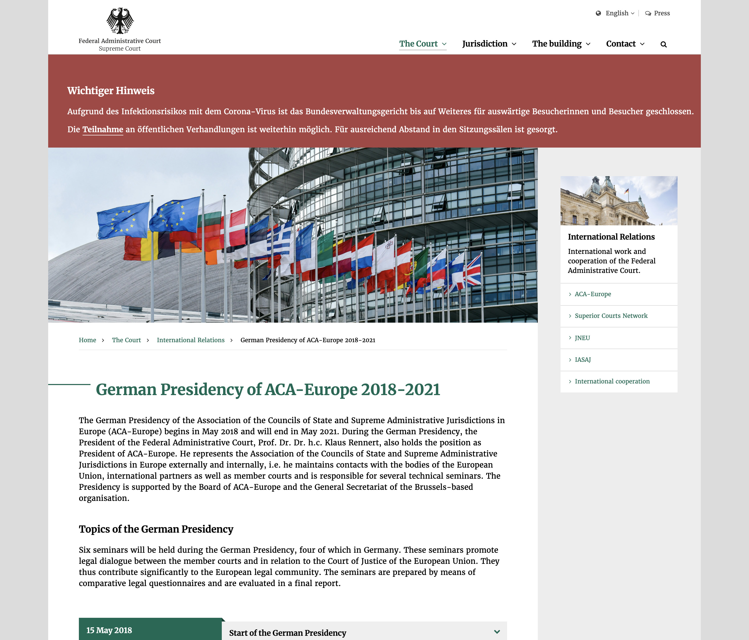 The Bundesverwaltungsgericht (Federal Administrative Court) is the supreme administrative court in the Federal Republic of Germany. The website for the court makes use of Merriweather for all typography, from headlines and subheads to body text. Other documents using Merriweather include pre-printed documents and PDFs and videos. The site and and other media are made available for use in three languages: German, English, and French.