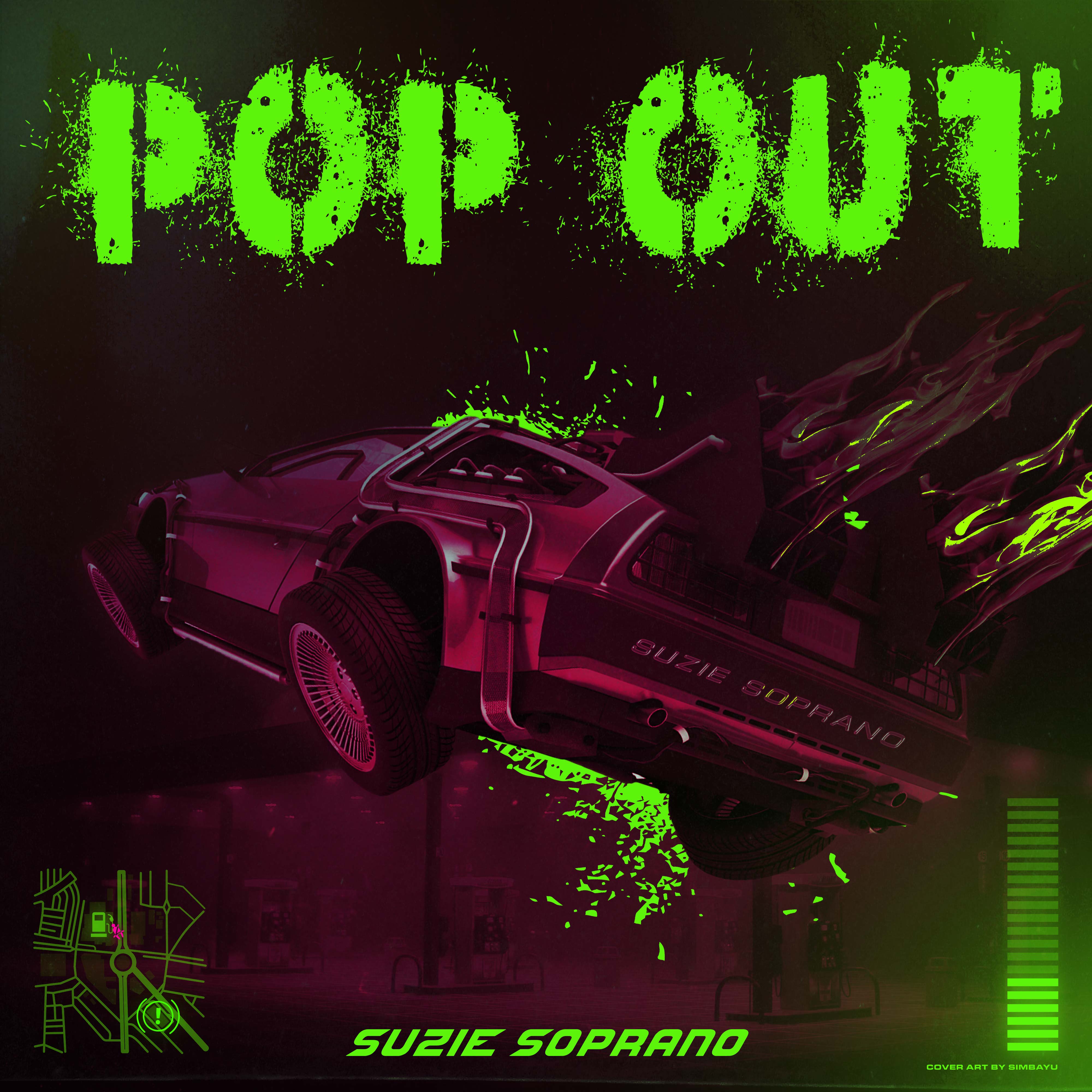 Cover art for the “Pop Out” single by American rap artist Suzie Soprano, from Plaque Chaserz prod by Melodiq. The artist’s name and title was set in NFS.