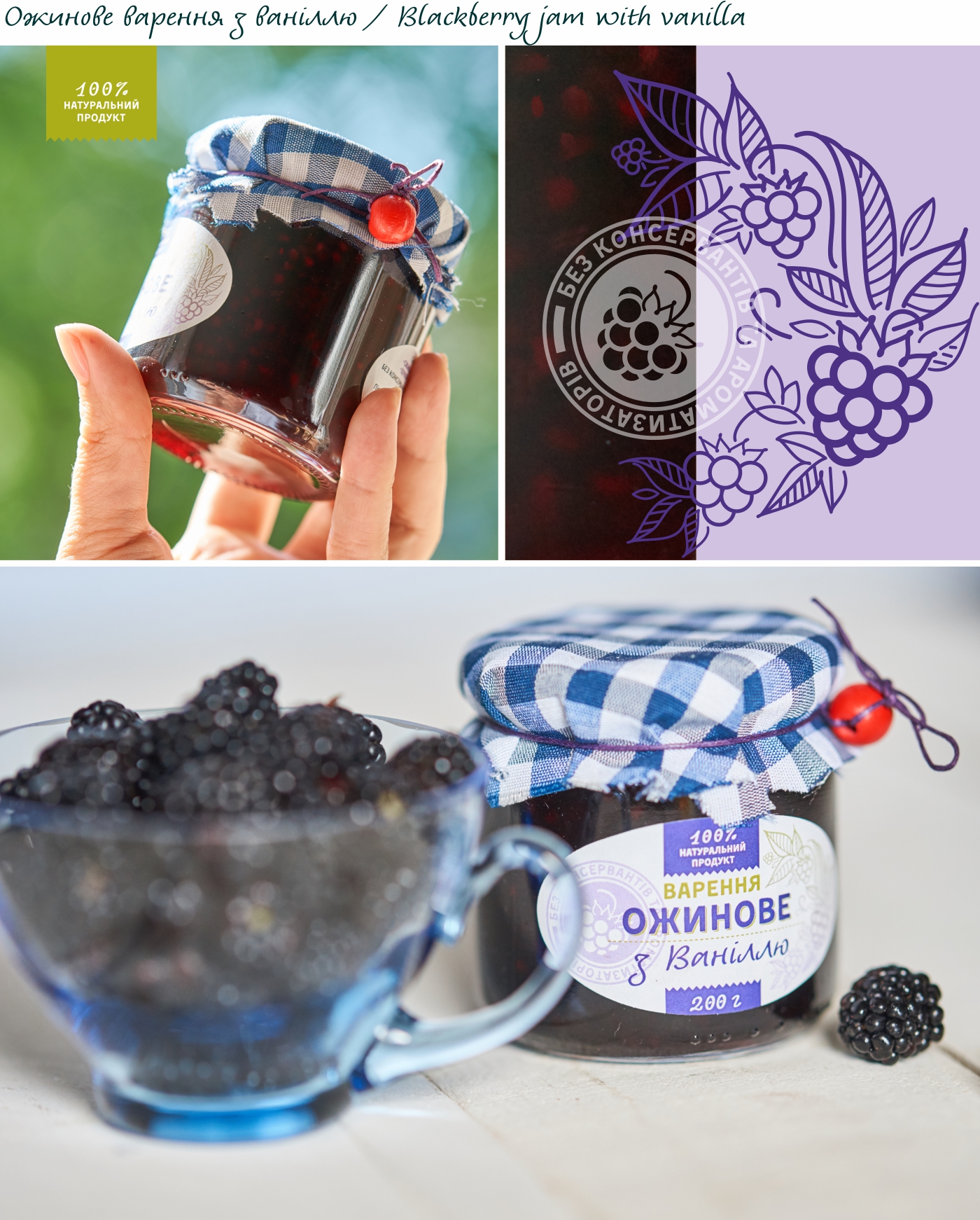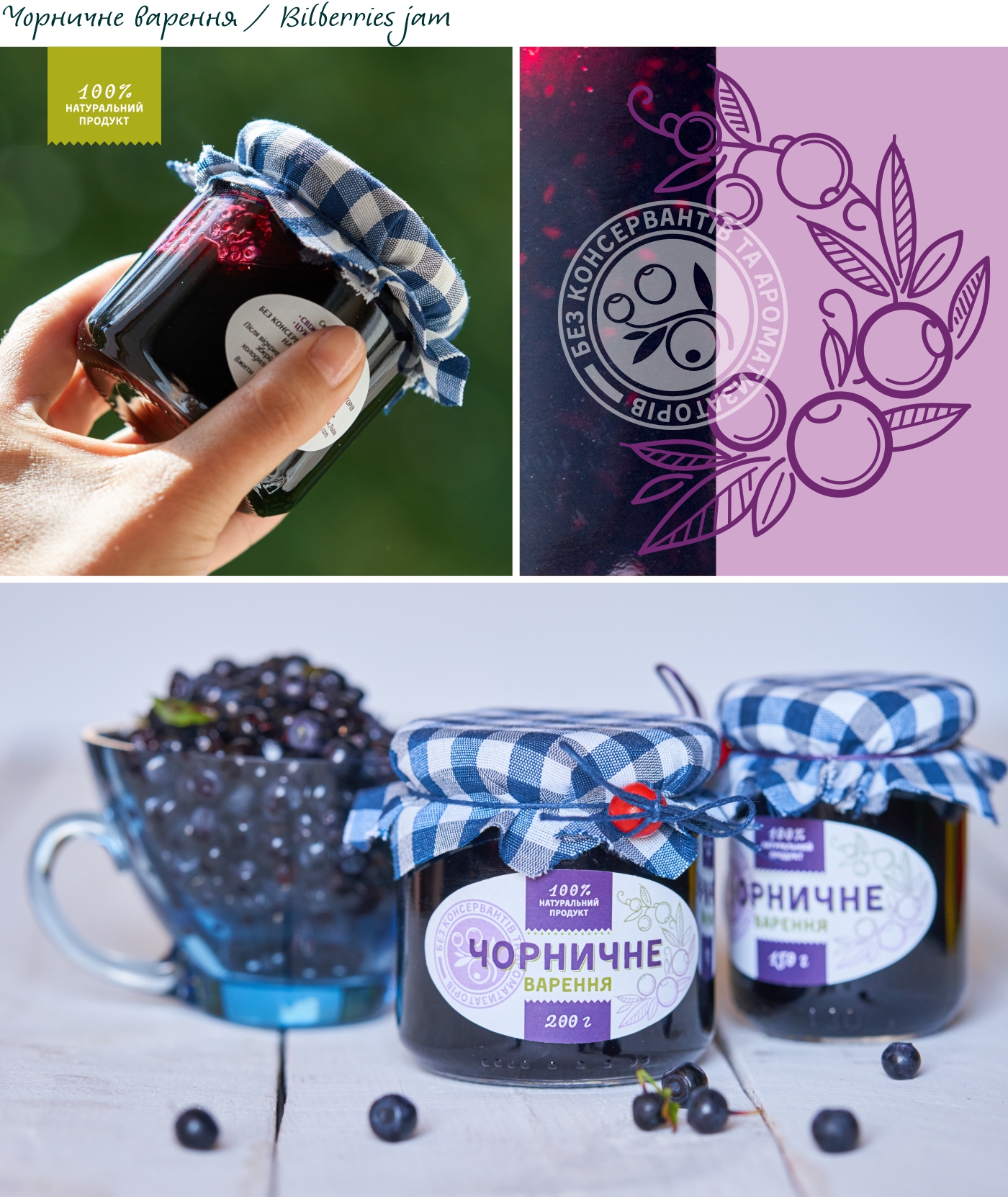 Labels and packaging of natural organic jams for a small local manufacturer in Lviv, Ukraine.