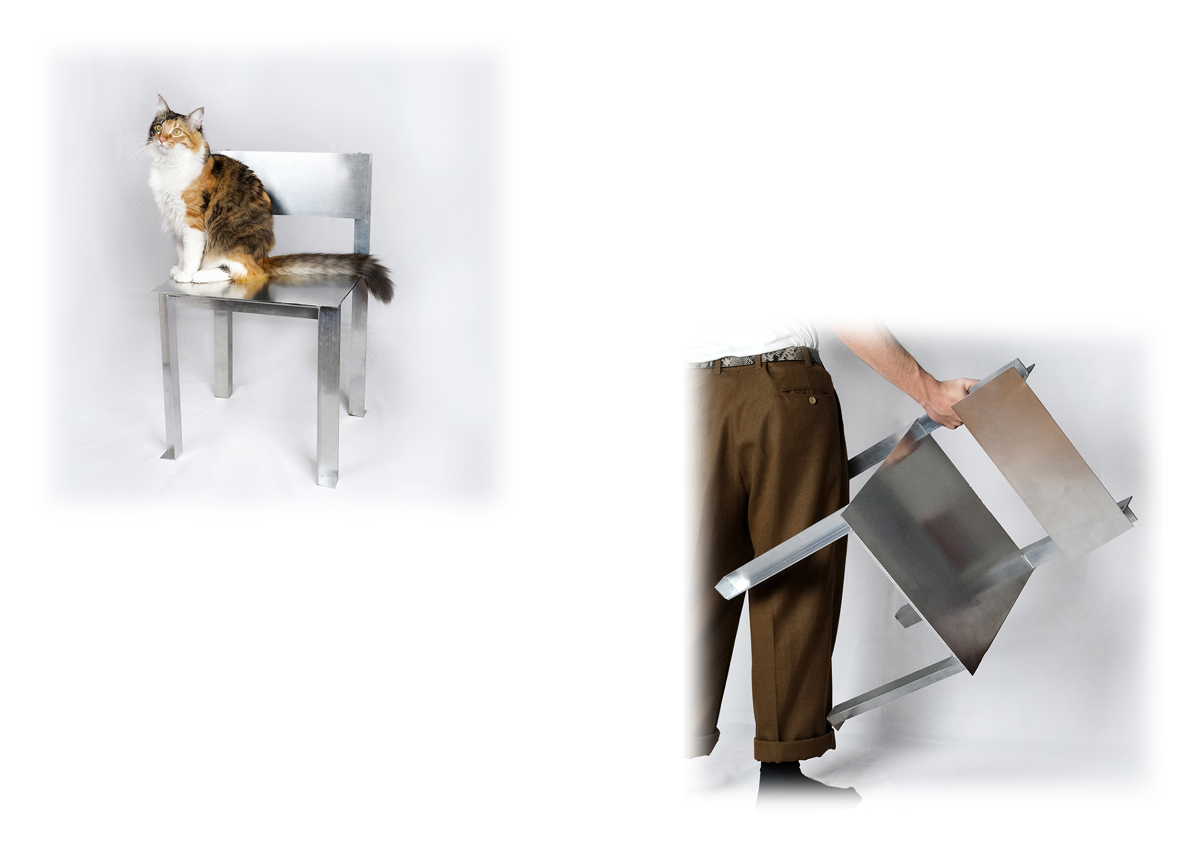 For this exhibition CLUBE produced the Canto Series: chairs and stools produced from aluminum sheets. The objects remain materially raw – unpainted and with the seats fitted to welded frames and screwed backrests.