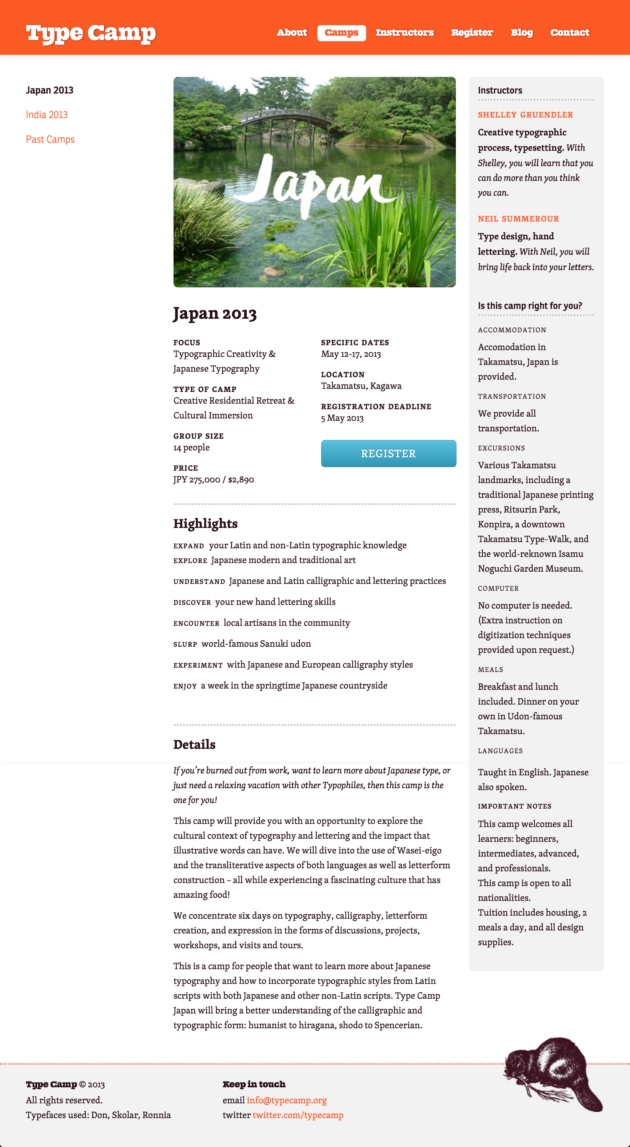 Just like the other camps, the upcoming event in Japan isn’t a conference. I still include it in this overview, since it is also about coming together, in order to hear and learn about typography. And yes, Type Camp is awesome. At least that is what the enthused participants of the Bauhaus Camp 2012 assured me.