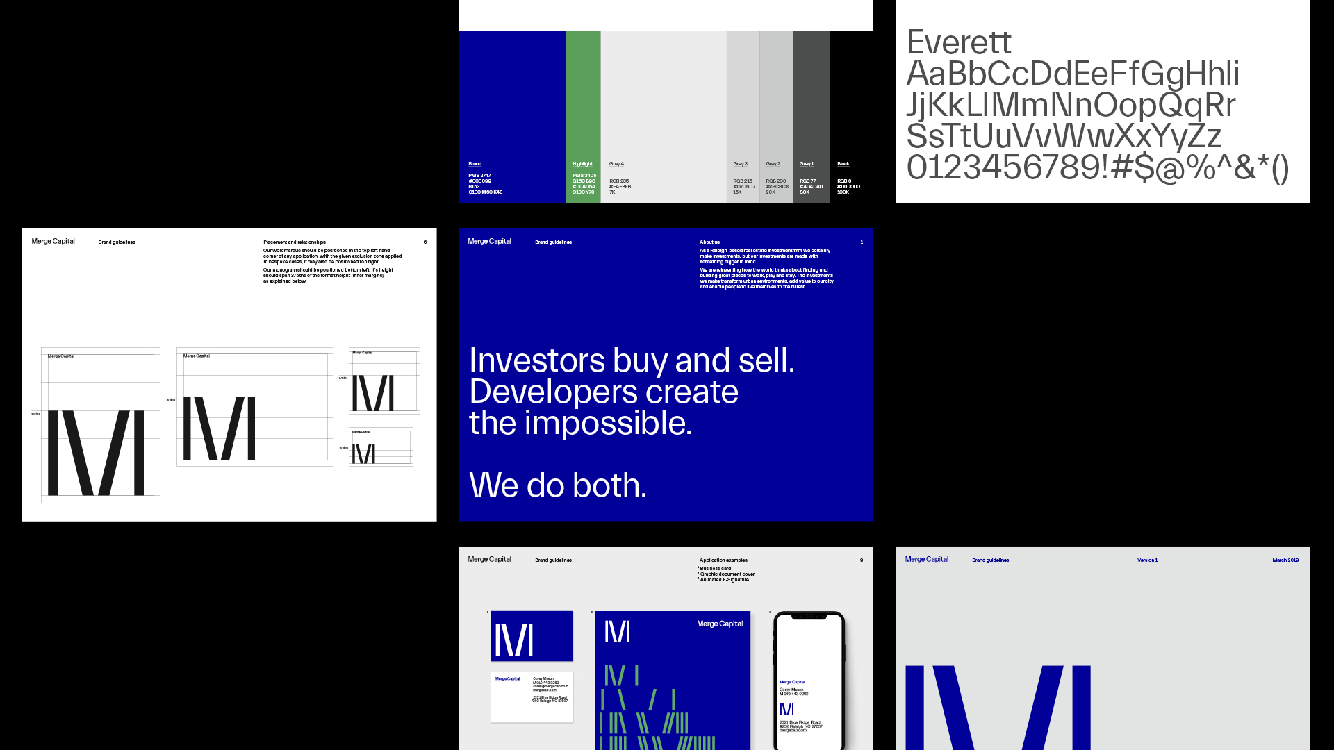 Melbourne-based Clear used Everett overall in the Merge Capital branding. The responsive capital M is derived from the typeface and is used throughout Merge Capital’s website.
