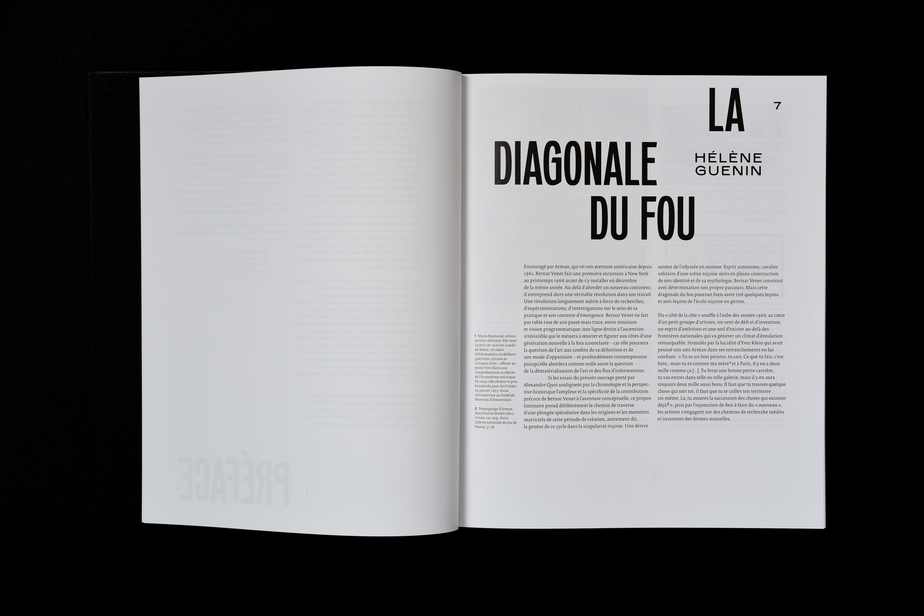In 2019, deValence designed a series of three books for Éditions Dilecta, presenting the work of French artist Bernar Venet. Mostly known for his monumental steel sculptures, Bernar Venet’s artistic career has however shown different facets in the last years, such as conceptual art or painting. These different aspects are documented through this series: one book deals specifically with his conceptual work, another holds a retrospective, and the last one is an anthology of critical texts and essays about the artist’s work.