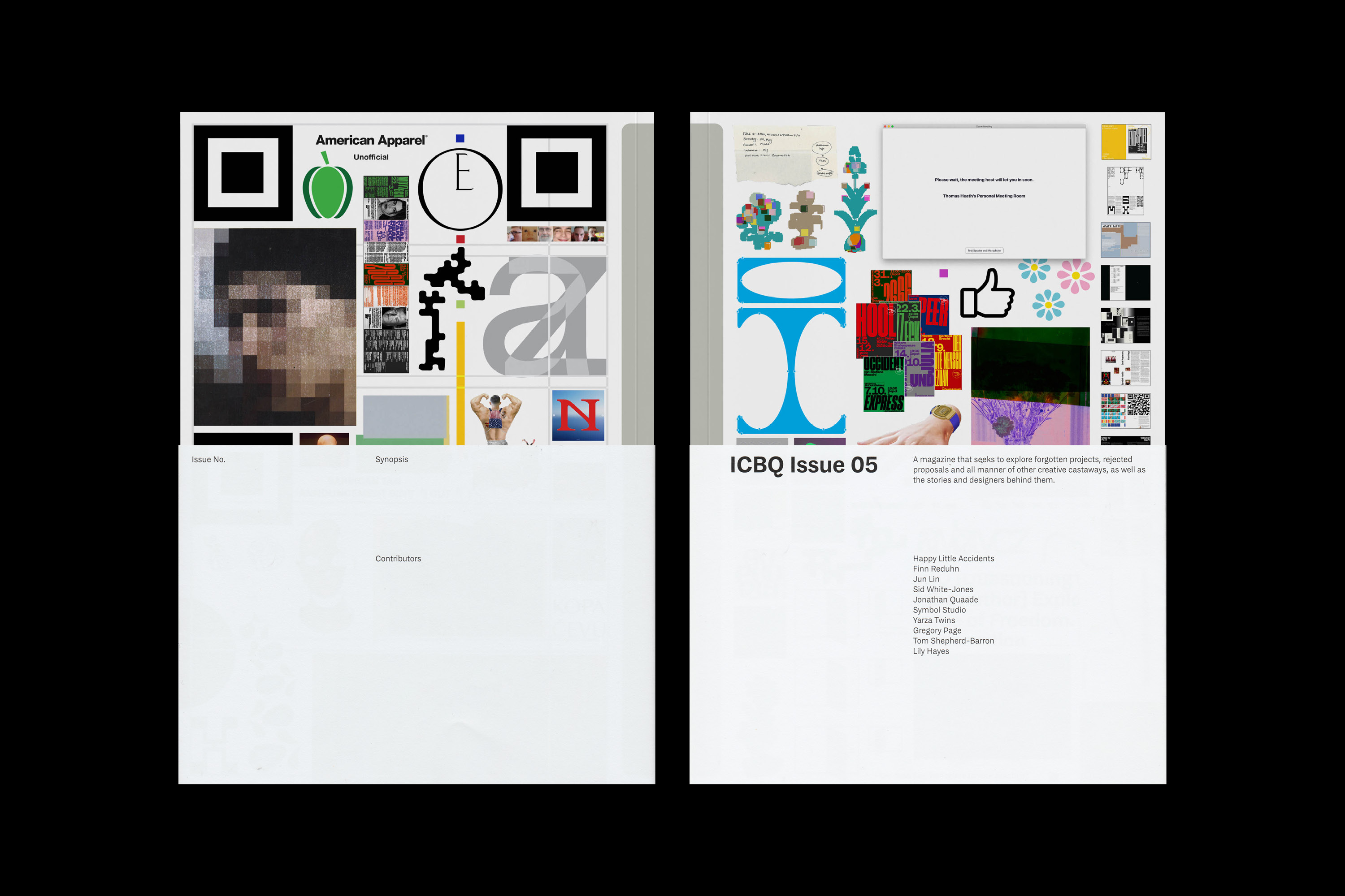 ICBQ is a magazine that focuses on sharing and exploring the work of designers and other creative people that was previously unseen, unused or rejected. Issue 05 was released in December 2020, with a focus on the overarching theme of freedom. The issue features previously unpublished work from Happy Little Accidents, Finn Reduhn, Jun Lin, Sid White-Jones, Jonathan Quaade, Symbol Studio, Yarza Twins, Gregory Page, Tom Shepherd-Barron and Lily Hayes.