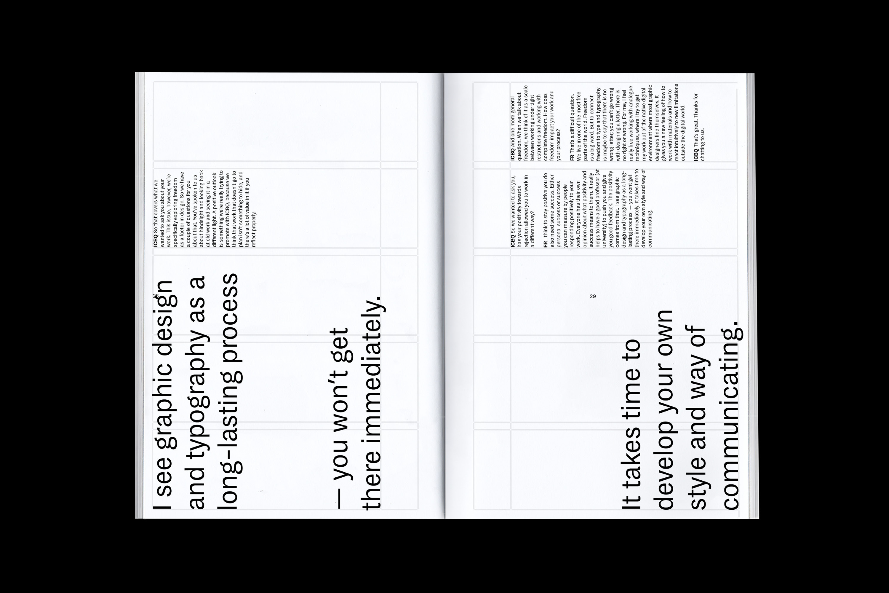 The issue was designed as an exercise in freedom itself, with several designers working independently of each other throughout 2020, for obvious reasons. Each feature was developed in response to its content, but within a certain set of typographic restrictions — namely the font. MD System from the excellent Mass-Driver™ is used throughout in two styles (Regular and Bold) to tie the otherwise eclectic design together and unify the editorial voice.