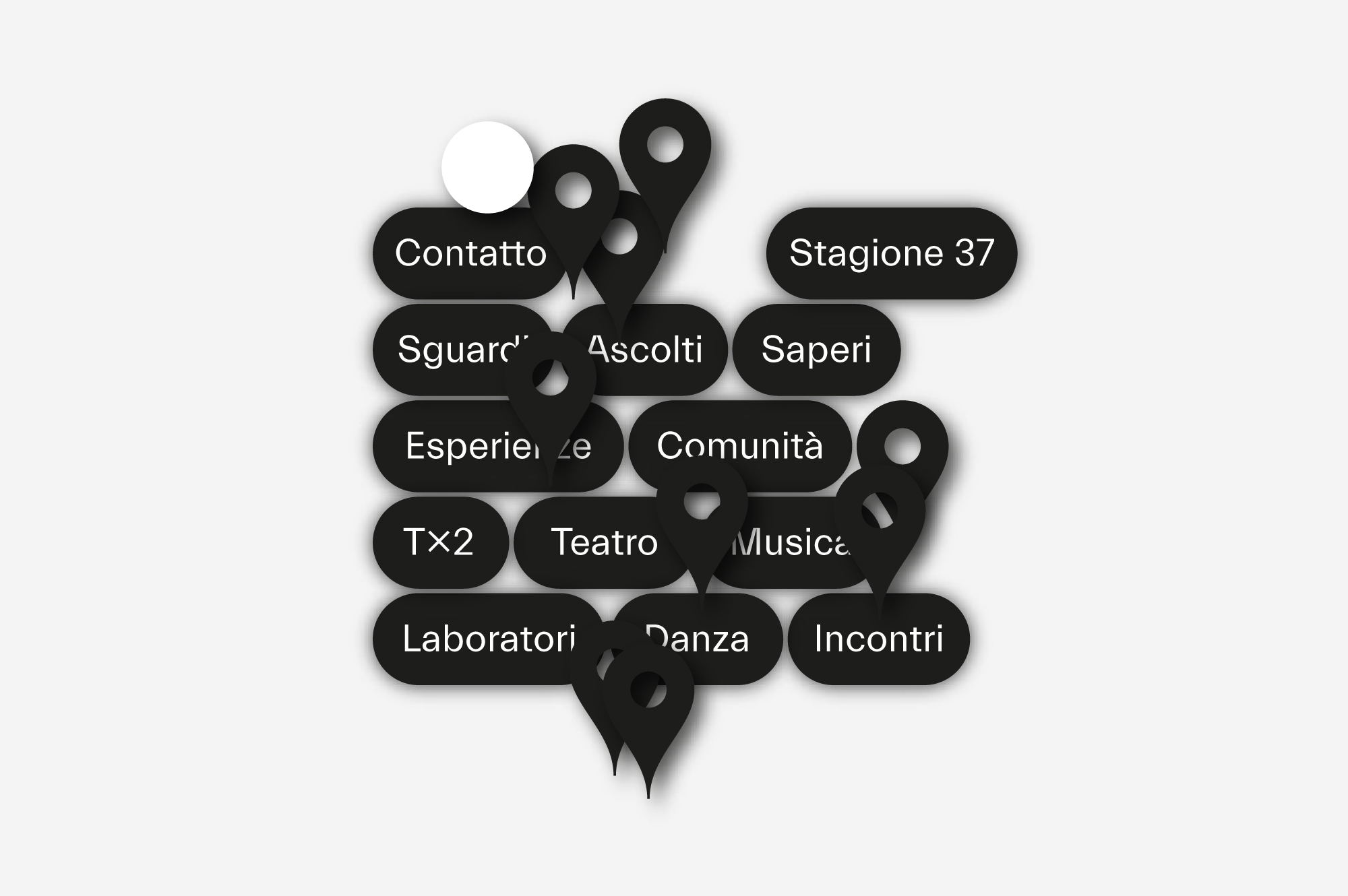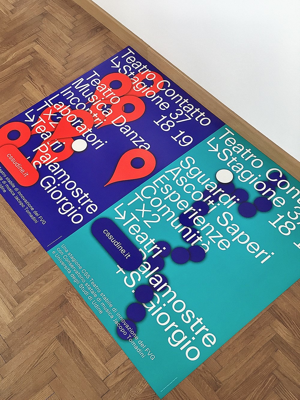 The T×2 project stands out for its focus on the new generations and the opening of a dialogue between them and different public and users of the cultural activities and theatrical halls of our city. TWO has developed the graphic image of a concept focused on paths connecting places, designed to express the idea of sharing experiences, the use of artistic visions and listening, the exchange of knowledge, through the aesthetics of digital identity, of the graphics of the maps. The daily presence of these elements typical of the digital world is effectively returning them to a more human and analogical form, with the result of making us live as suspended between real and virtual, freer in space-time references, almost divided in two.