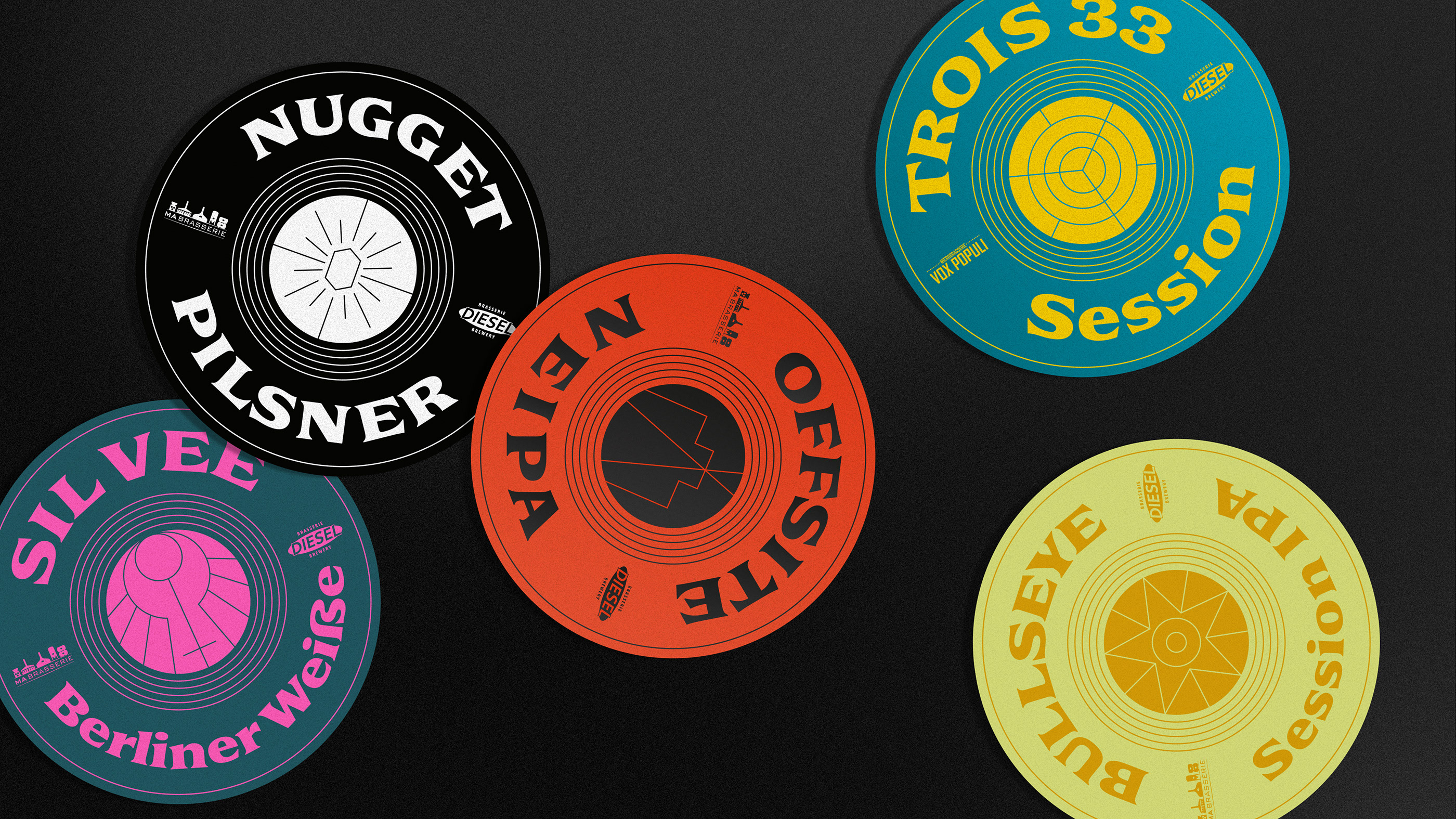 Creative agency Sid Lee used Double for a series of beer cans and related self-promotional items. The name of the fictive Diesel brewery – an anagram of Sid Lee – is a nod to the past of the agency. Each beer is named by using terms from the company’s own lingo. A familly of icons illustrate each name to make every flavour more unique. Finally, a short text with a poetic, humoristic or even cryptic touch goes along with the design to complete the whole. To this day, five different beers have seen the light of day.