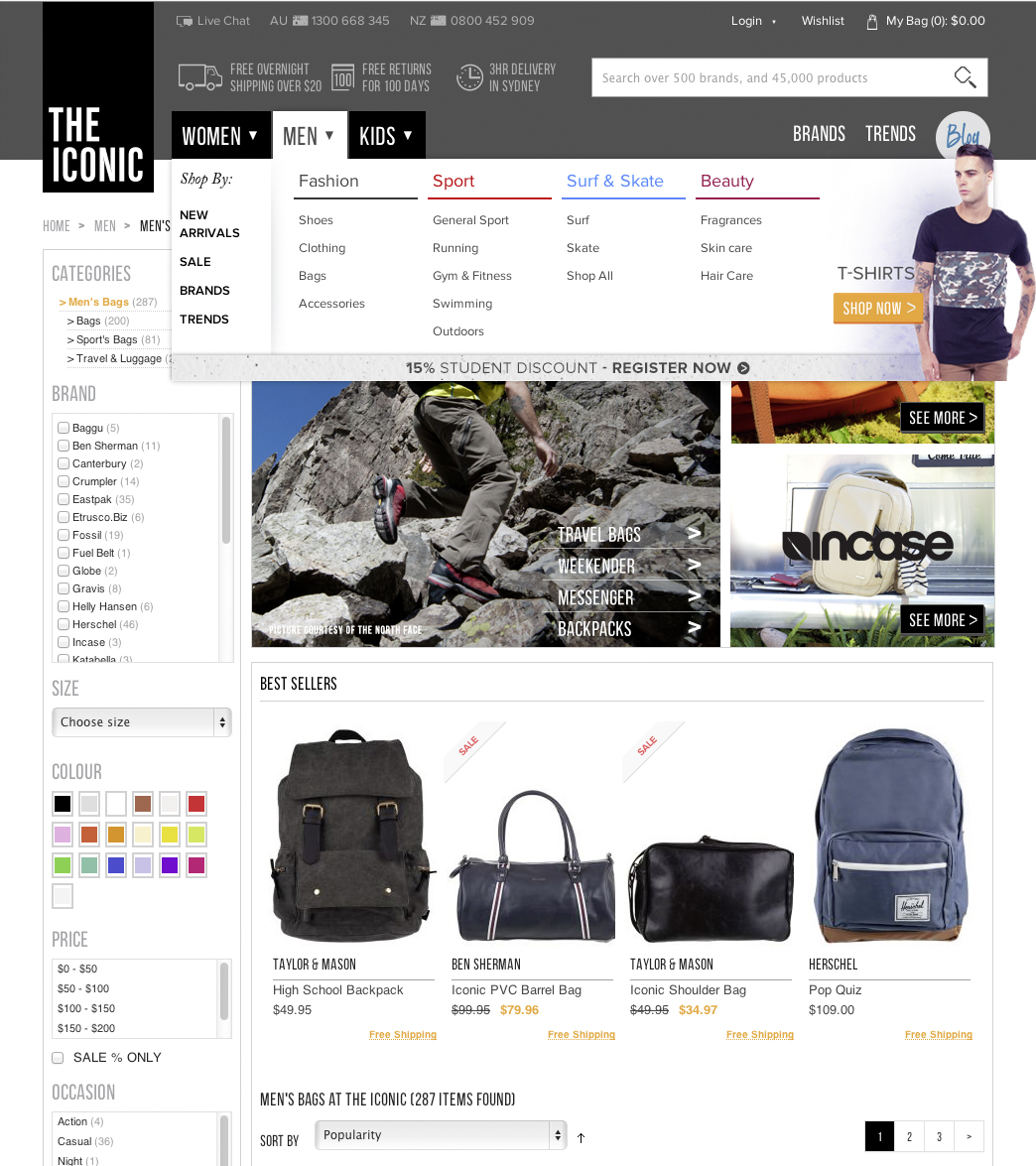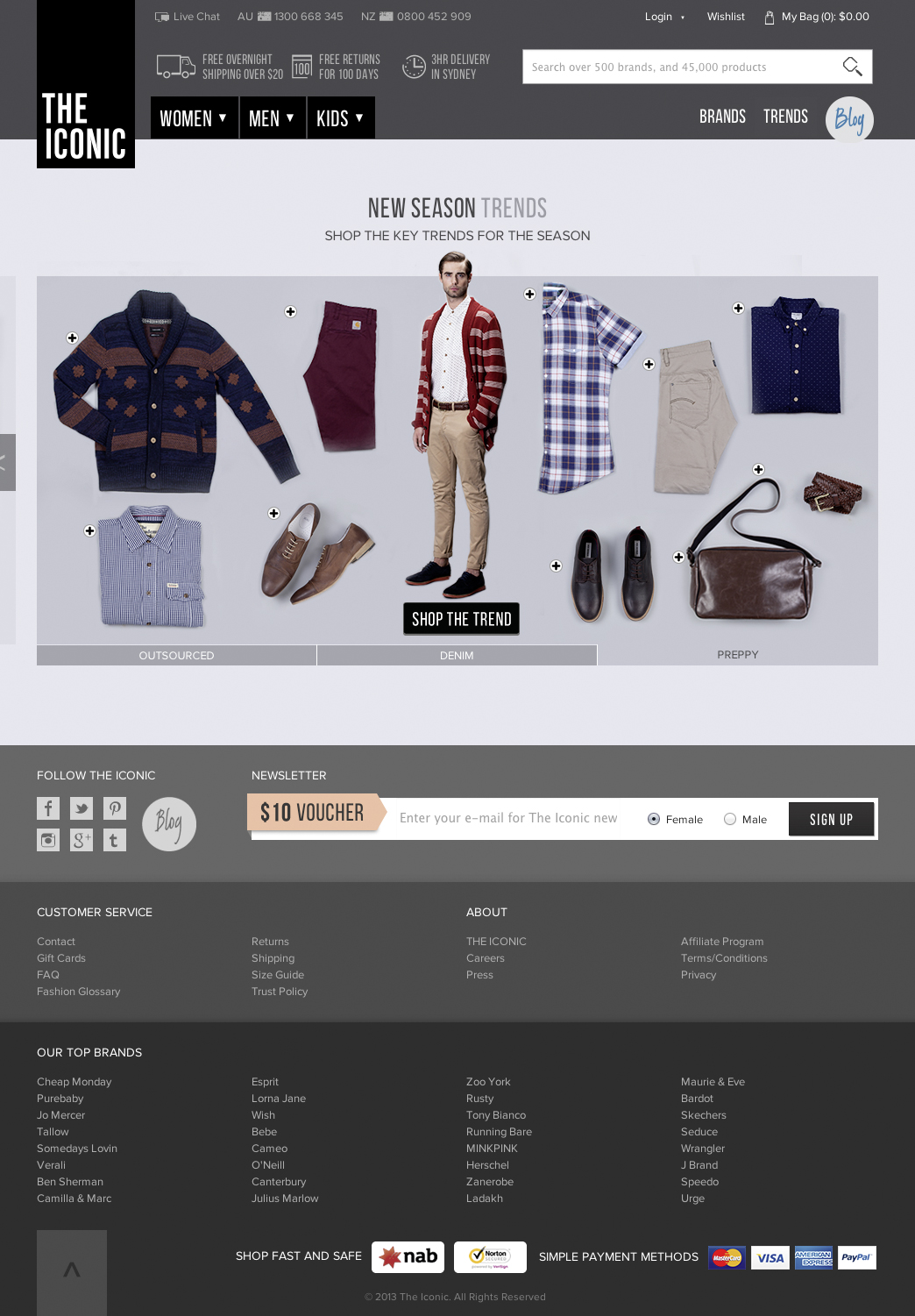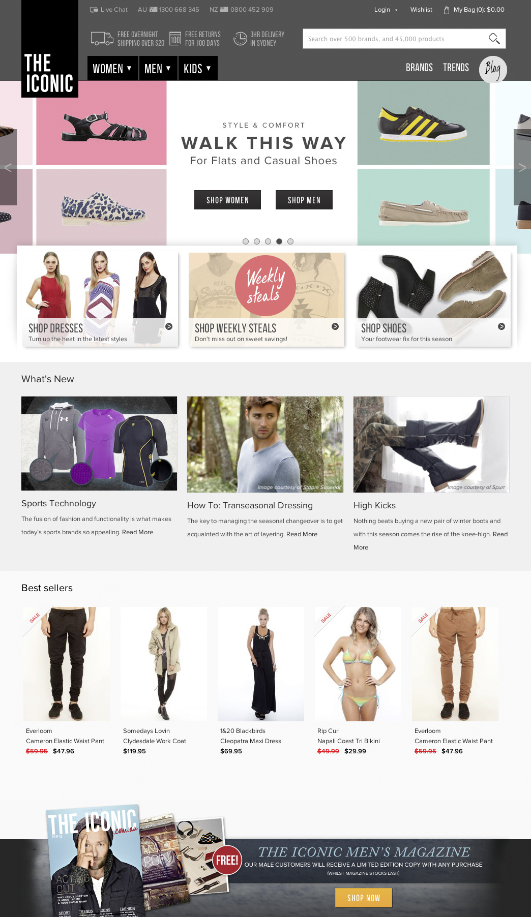 In addition to three weights of Proxima Nova and two weights of Adobe Caslon Italic, The Iconic also employs “The Iconic Typeface”, a custom narrow grotesque. Icons are provided via another custom symbol webfont. The magazine’s Creative Director is Francesco De Chirico.