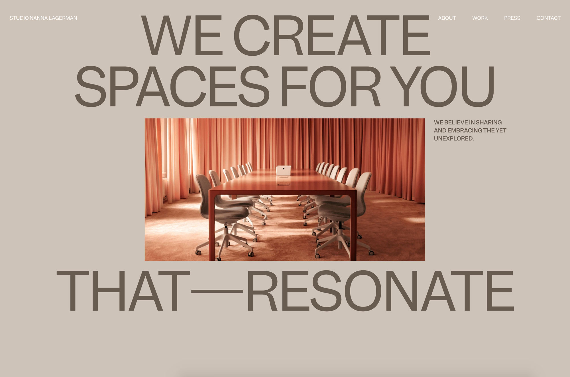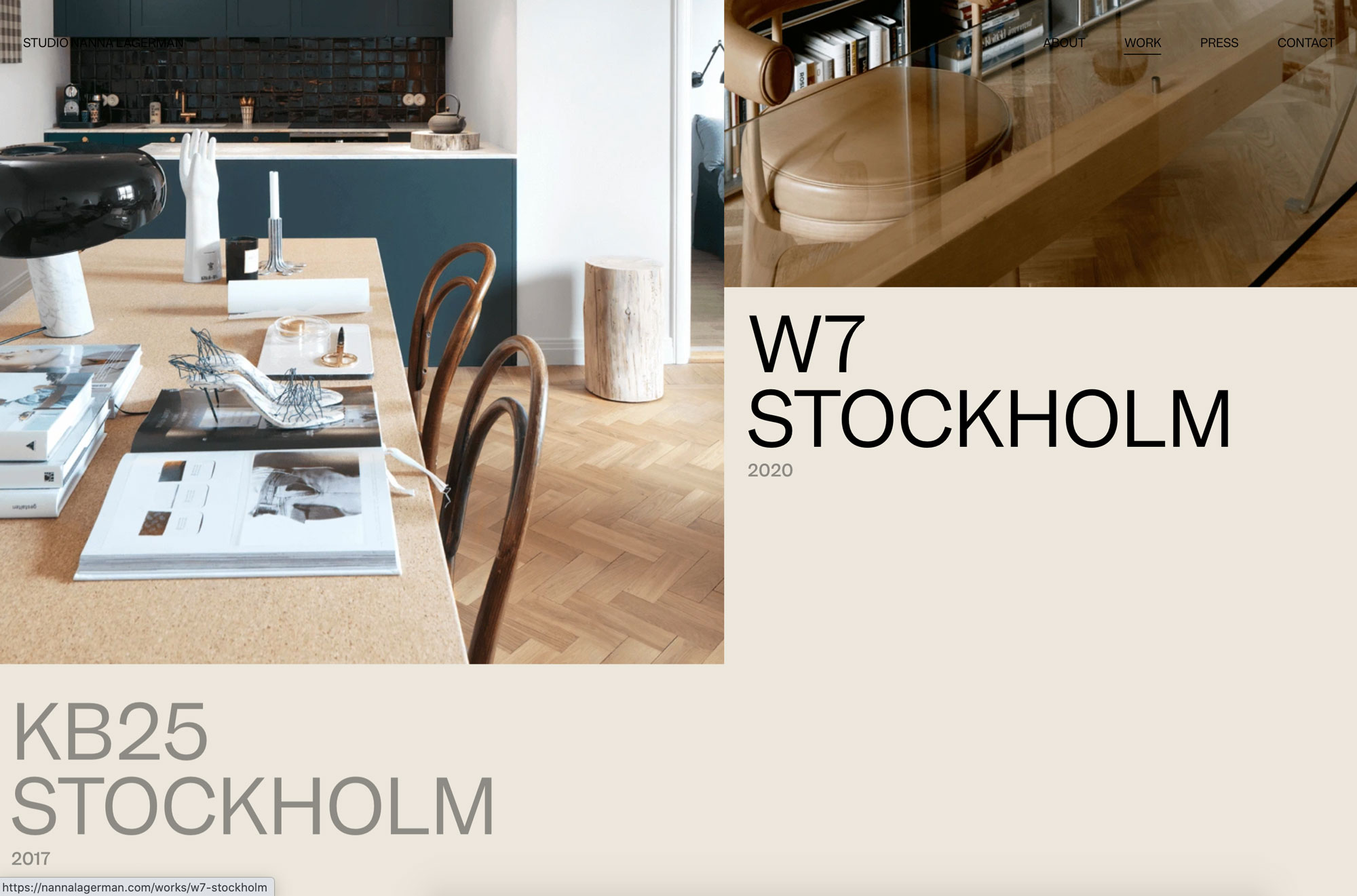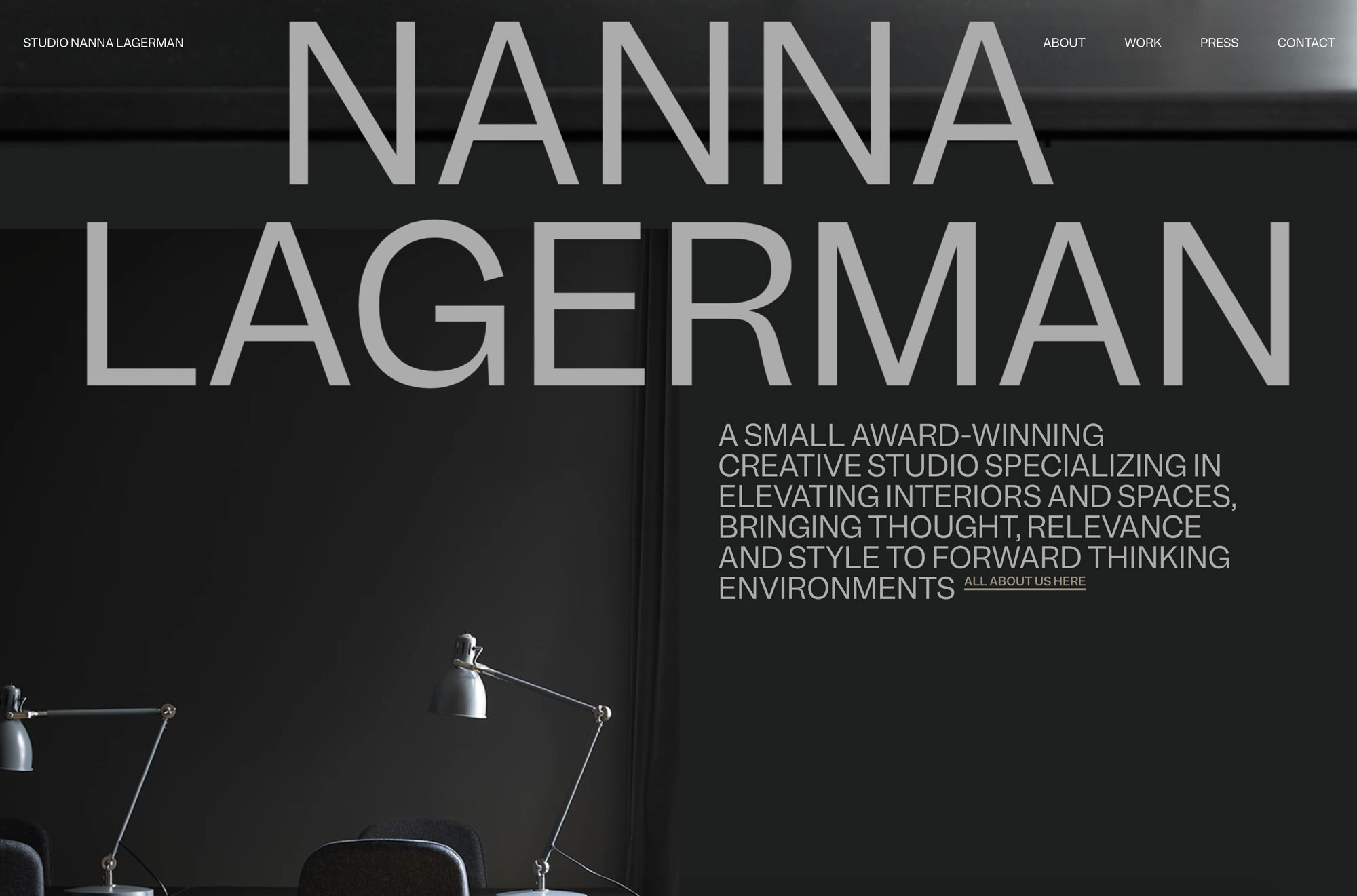 Studio Nanna Lagerman is an award-winning interior design and architecture studio based in Stockholm, Sweden that prides itself in elevating spaces and interiors. The studio’s portfolio website is fully set in Garnettwith all-caps, juxtaposing large headlines and small captions that dramatic contrast and scale.