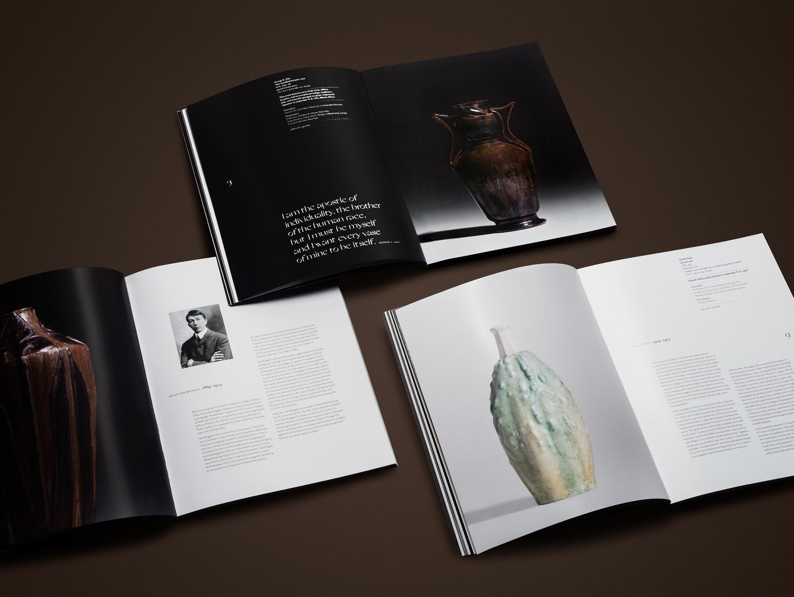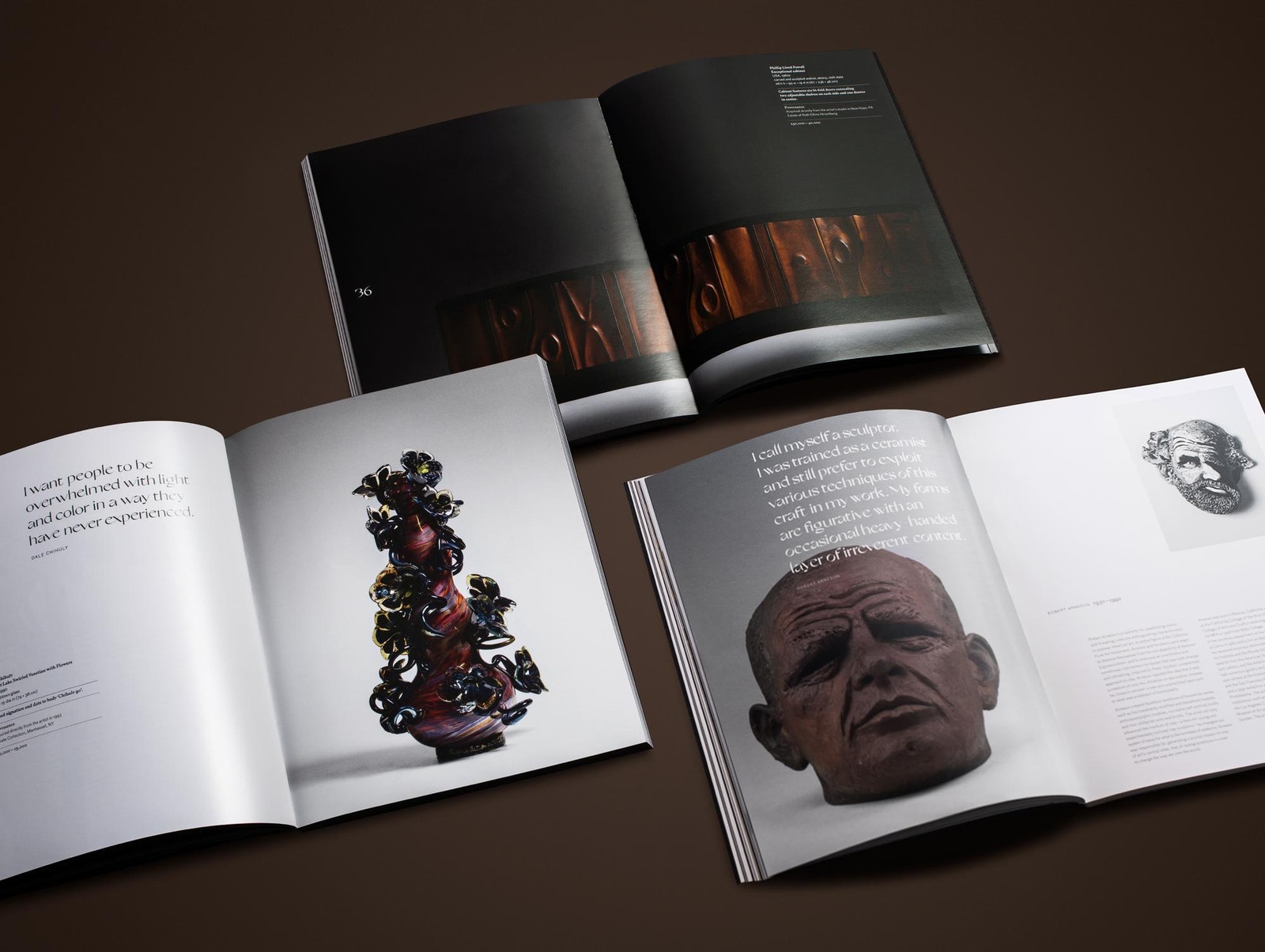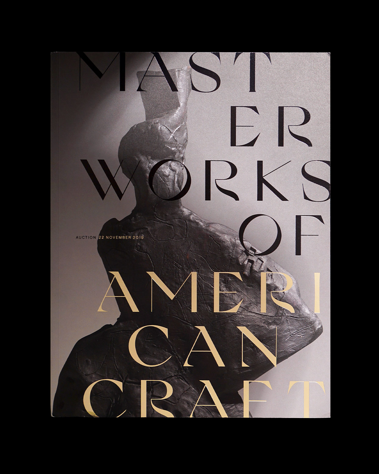 The catalogue, designed and art directed by Ellen Winston and Jennifer Mahanay from Wright, features premier works by George Nakashima, Paul Evans, and John Risley, alongside significant and unique sculptures by Robert Arneson, Harry Bertoia, Viola Frey, and Peter Voulkos. Masterworks of American Craft achieved a sales total of $1,436,345 on Nov. 22 2019.
