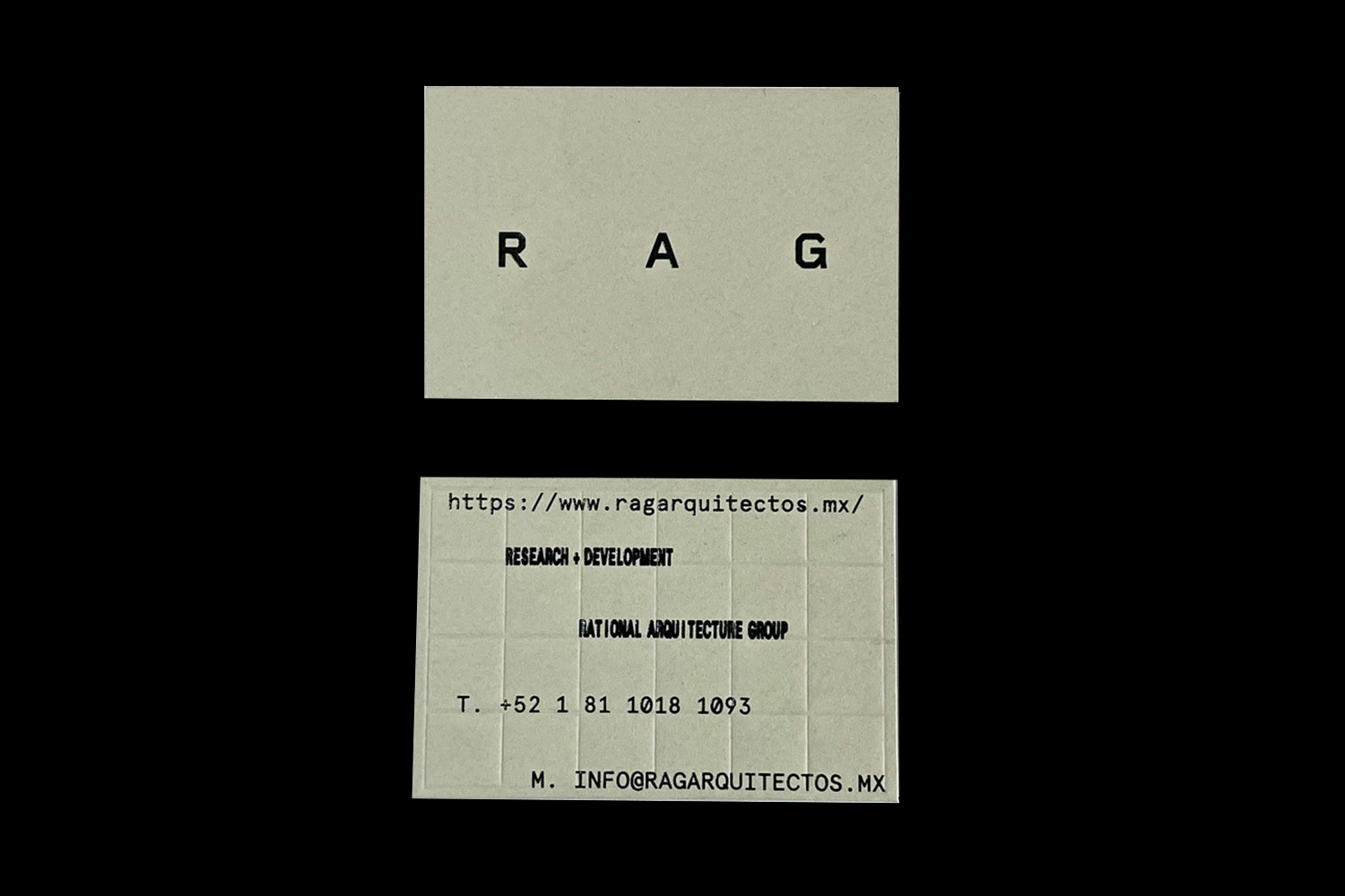 RAG Arquitectos in Monterrey, Mexico offer architecture and interior solutions for commercial and residential clients. RAG, Rational Architecture Group, seeks to provide detailed solutions and have a plan and a reason for each project decision. The identity is based on an “invisible” grid to reflect this attitude.