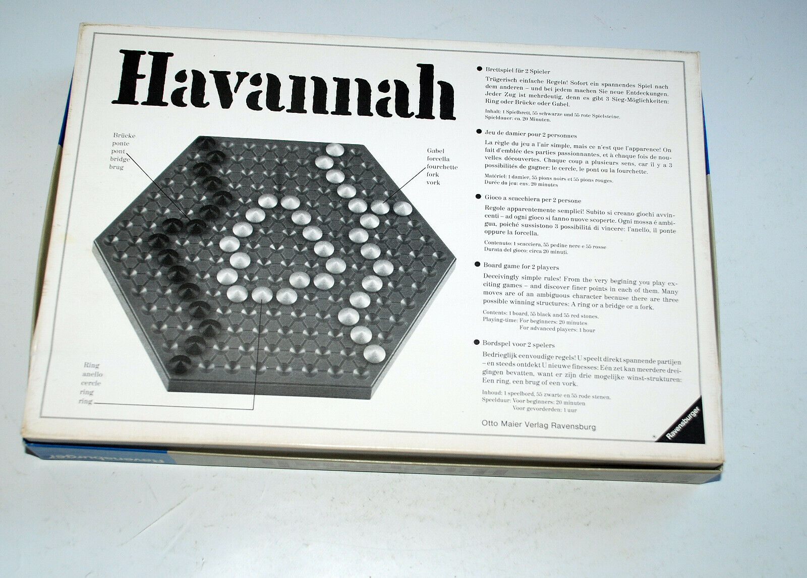 Havannah board game (Ravensburger) Contributed by Florian Hardwig on May 16th, 2021. Artwork published in 1981. Source: www.amazon.de License: All Rights Reserved. Havannah is a two-player abstract strategy board game invented by Dutch math teacher Christian Freeling (b. 1947) and published by Ravensburger in 1981. The game logo uses Marcel Jacno’s Chaillot. Source: www.amazon.de License: All Rights Reserved. Source: www.ebay.de rudand2. License: All Rights Reserved. Source: www.ebay.de rudand2. License: All Rights Reserved. Typefaces More about Chaillot Formats Packaging (2482) Branding/Identity (8605) Topics Entertainment (1555) Tagged withboard games (58)Ravensburger (7)stencil (473)reversed type (3457)logos (5114)boxes (556)1980s (686)hexagons (33) Artwork location Germany (3923) Ravensburg (19) Post a comment Name Email – will not be published Website Your response Submit Comment More Chaillot in use PrintMaster1985Unison World Inc.Berkeley SoftworksContributed by B.J. Winzer Drawings. Birds Shells Hands by Philip Sutton1966Philip SuttonContributed by Florian Hardwig Letteratura e/o rivoluzione1970unknownContributed by Florian Hardwig Sponsor More in Entertainment Sega logo (1976–present)1976unknownContributed by Stephen Coles Blog Taxi Wala2008Paule Palacios-DalensContributed by PampaType Team Burly Men at Sea2016Brain&BrainContributed by TypeTogether Northcote Social Club2016The Company You Keep (TCYK)Contributed by Gareth Hague More in Branding/Identity Deneb2020Antoine GouletContributed by Antoine Goulet New Age Nowc. 2017Pouya AhmadiContributed by Swiss Typefaces Apal Sideric. 2024ANTIContributed by Smuss Studio South East Asia Youth Music Camp2020The 1984Contributed by Irawandhani Kamarga More Fonts In Use Epcot Horizons Futureport departures board signage1983unknownContributed by Patrick Concannon Staff Pick Elastic magazine, no. 12025Chloe ScheffeNatalie ShieldsScheffe ShieldsContributed by Greg Gazdowicz Staff Pick Dada Factoryc. 2019KimgardenContributed by Altiplano Typefaces Staff Pick Posters for Kunsthalle Basel, 1982–1988c. 1985Judith AmmannContributed by Philipp Messner Staff Pick