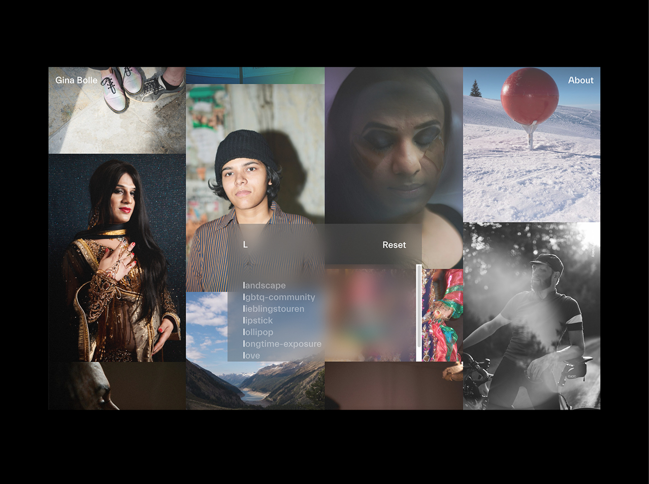 Together with Kolja Buscher, Roman Zimmermanns developed and designed her identity including a website. In order to not limit the still very diverse portfolio and to make the refreshing diversity as accessible as possible, we developed a search engine. This is based on a well thought tag system, which enables the user to search freely for keywords, such as optical features, colors or names. An individual selection can then be saved as a link and forwarded in this way.