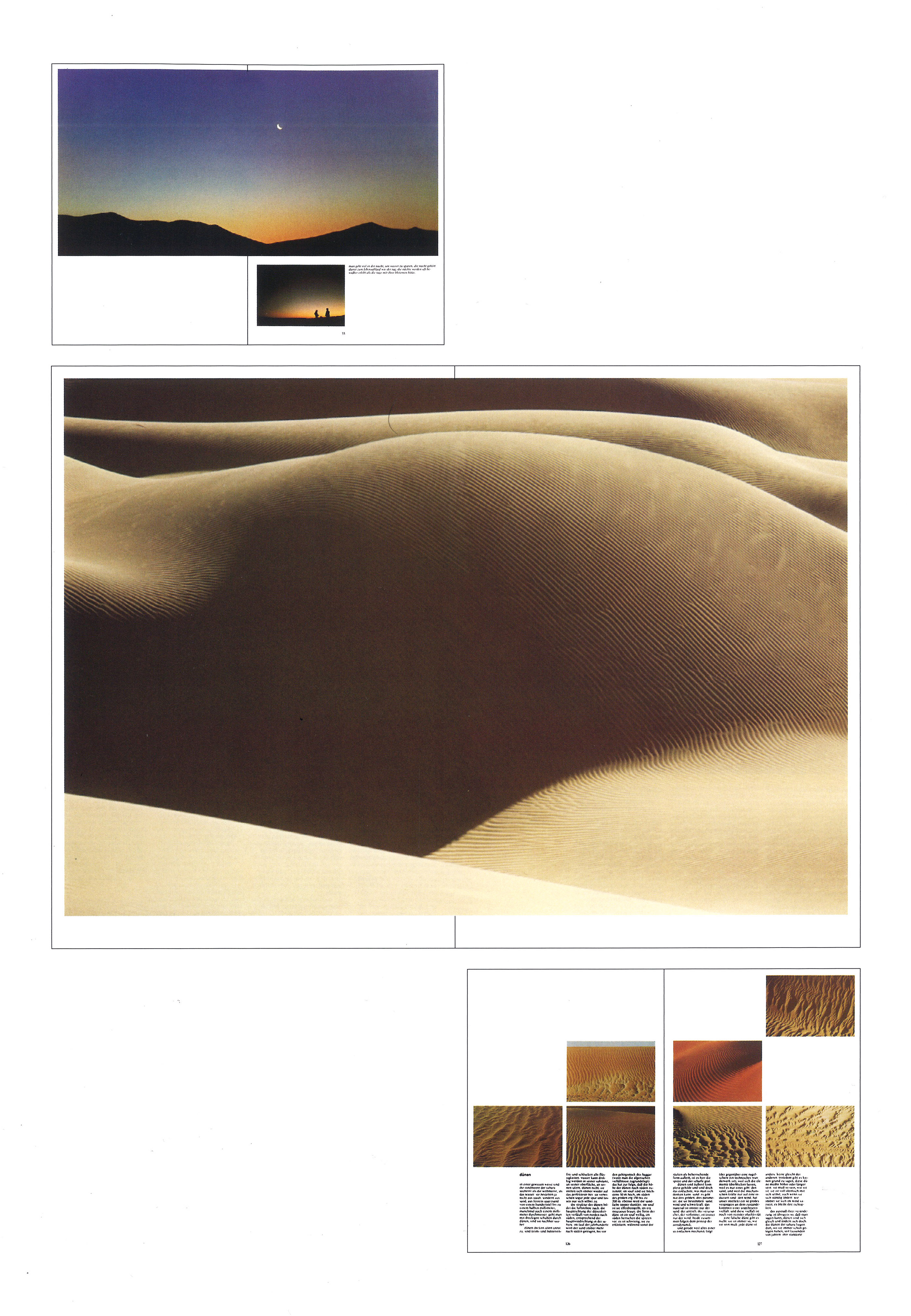 What began just as a trip, with the focus of producing an exhibition, ended up in a book. Otl Aicher got focused during this trip, with his son and some friends, on forms, shapes, structures and textures of the dunes. This book is a chronicle of this trip across the Sahara desert.