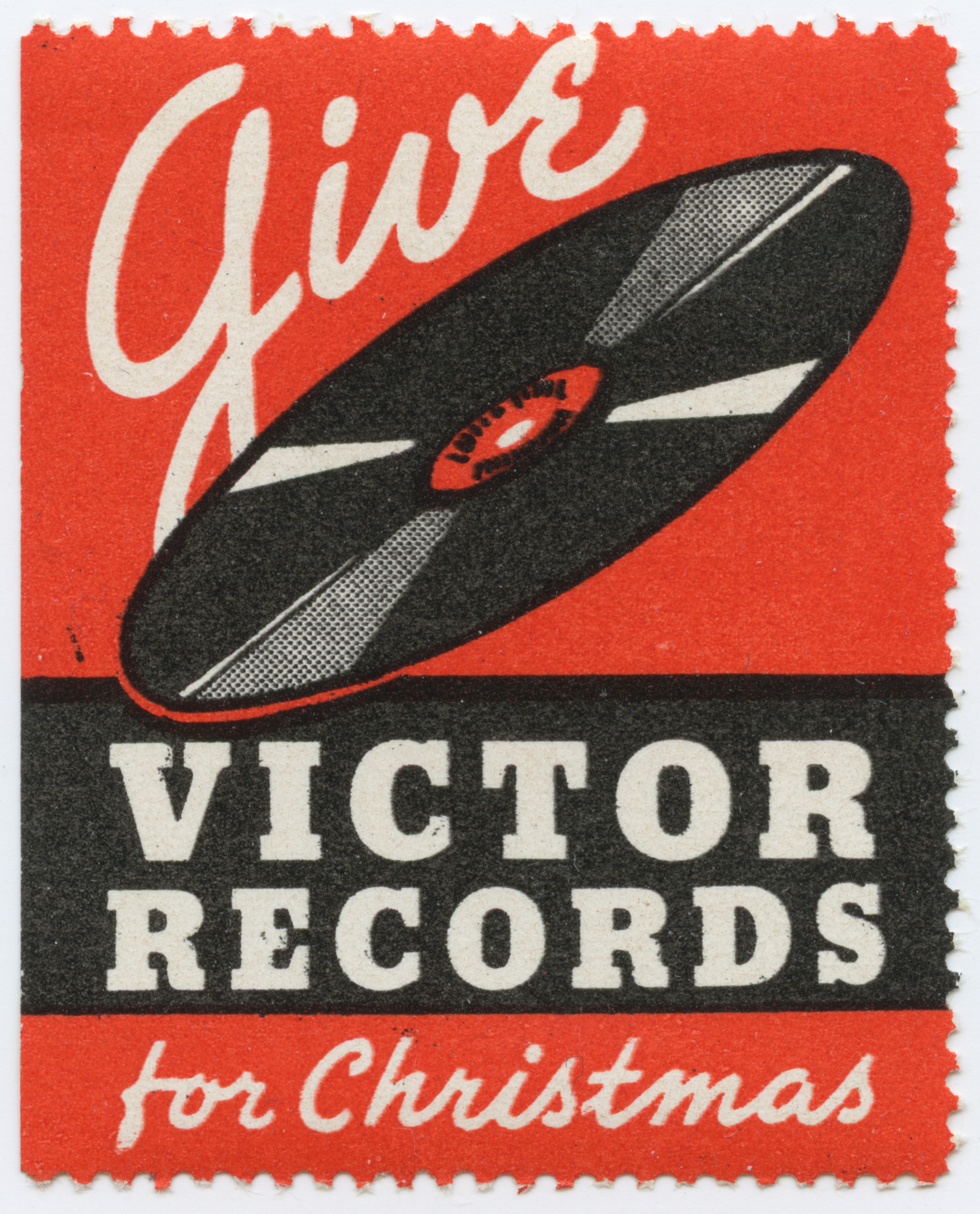 1930s or 1940s “Give Victor Record for Christmas” advertising stamp making use of Beton extrafett, or Extrabold, for “Victor Records”. The decorative script styles for “Give” and “for Christmas” are custom lettering (Kaufmann comes somewhat close for the latter).