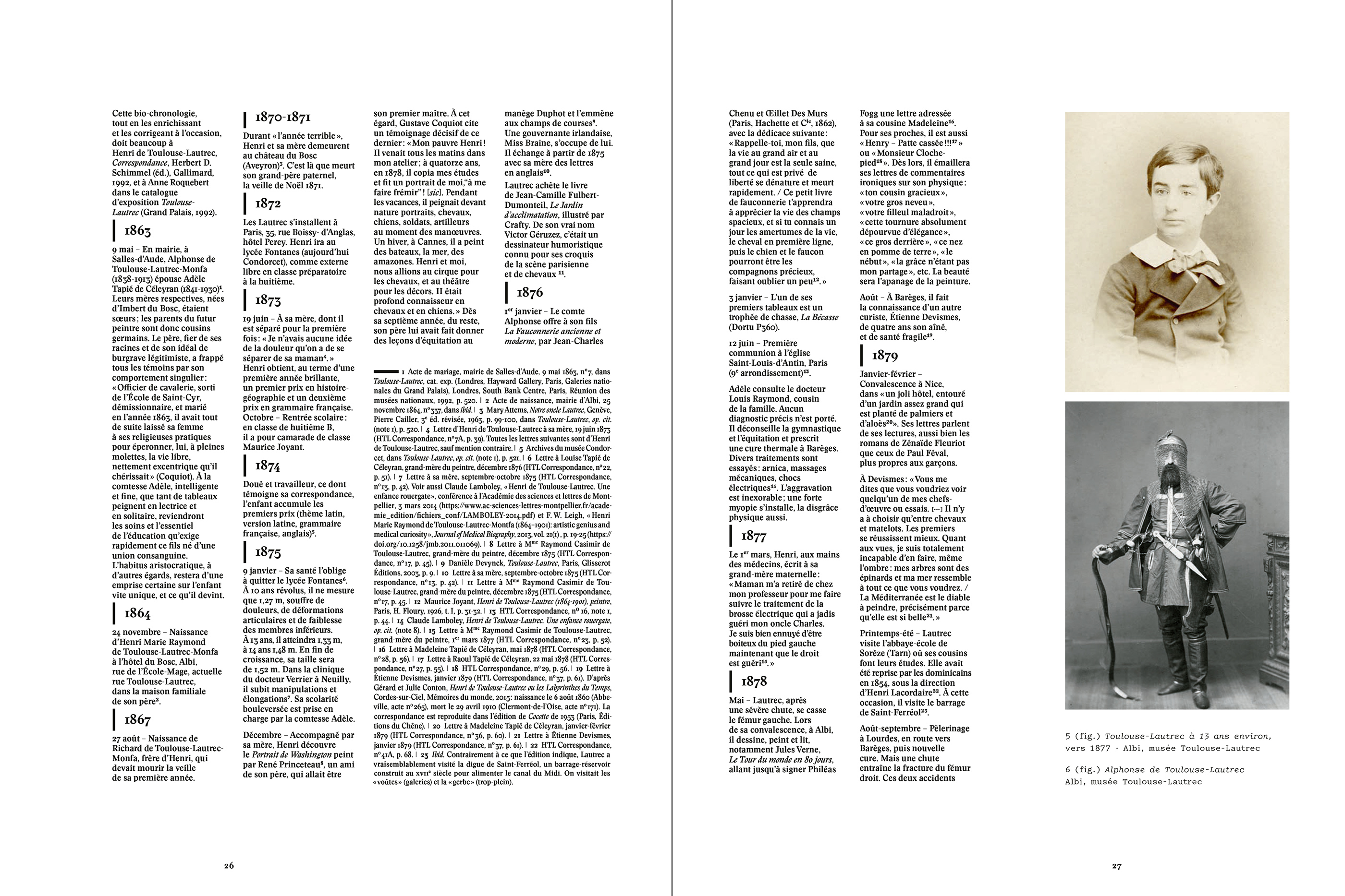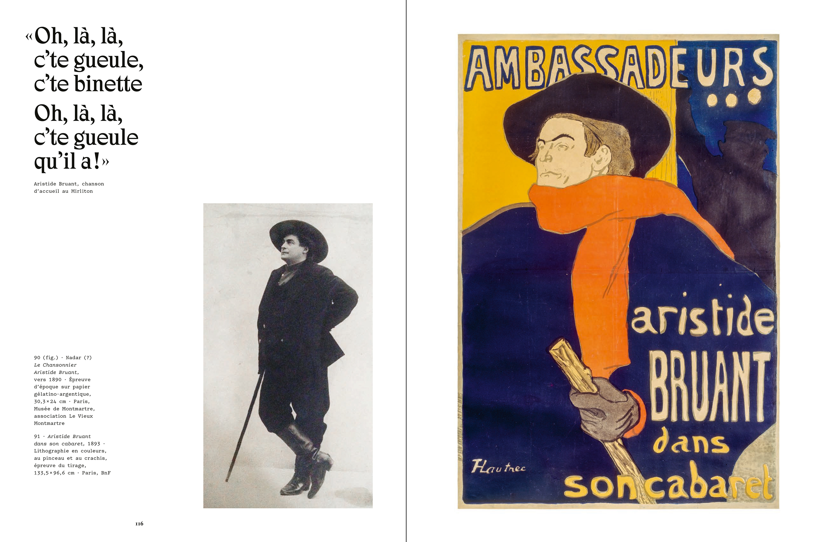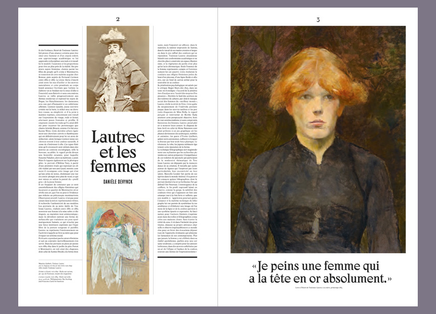 The display typeface used for all these publications is Zangezi. Started in 2018, Daria Cohen’s in-progress design is inspired by Salem, a metal typeface first cast by the Keystone foundry in 1901 – the year of Toulouse-Lautrec’s death. It’s used for headings and quotes, occasionally featuring its italics, too. Zangezi is also used for the exhibition logo that shows the artist’s double name in two stacked lines. The initial letters here touch each other, with unilaterally clipped serifs.
