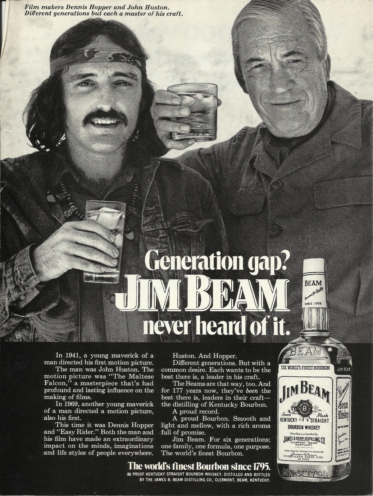 Jim Beam ad: “Generation gap? Jim Beam never heard of it.” (1972)