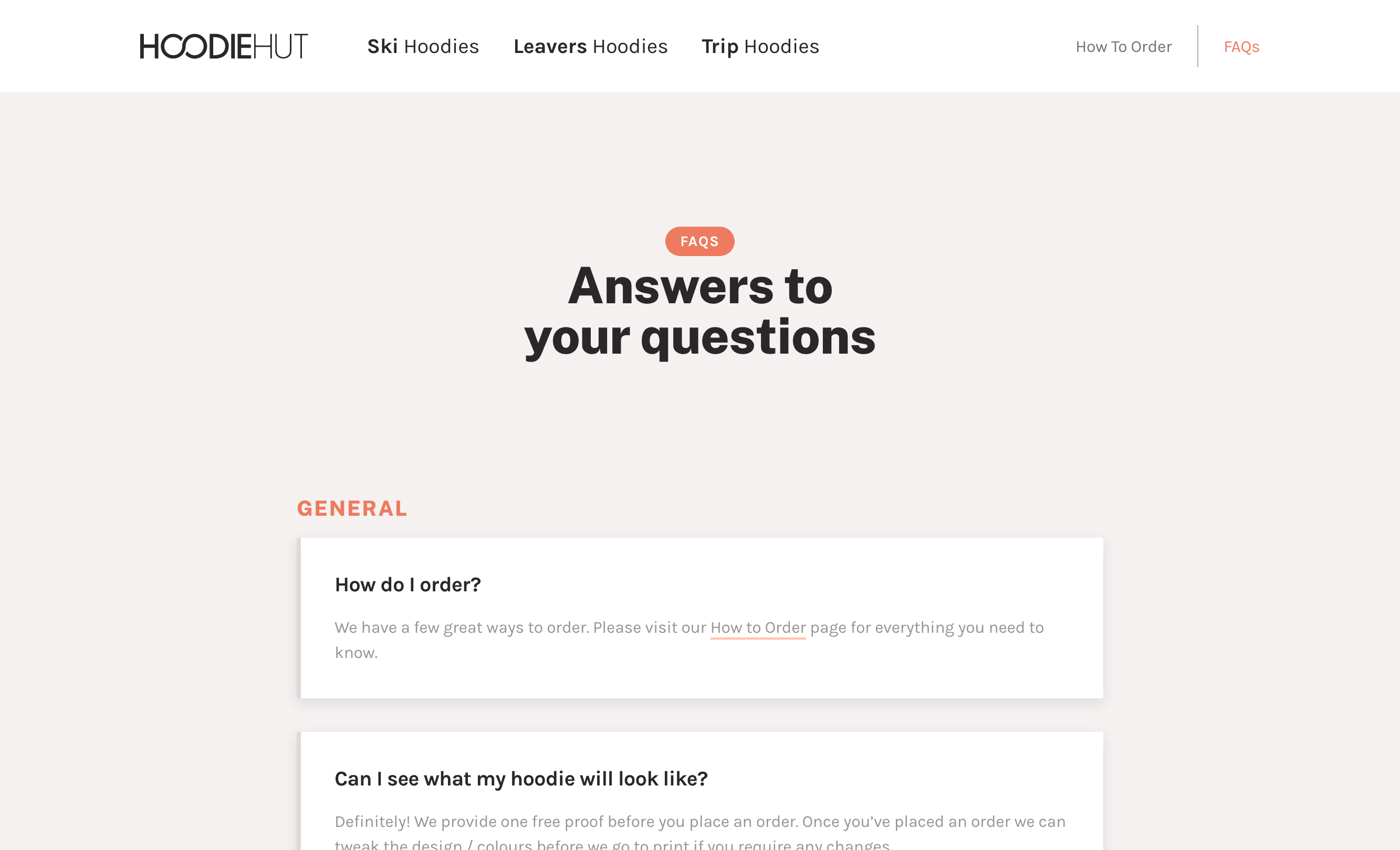 Website design for the recently launched hoodiehut.co.uk — a UK based hoodie printing company who provide personalised hoodies for schools, colleges, and universities. (Most notably, the classic end of year Leavers Hoodies)