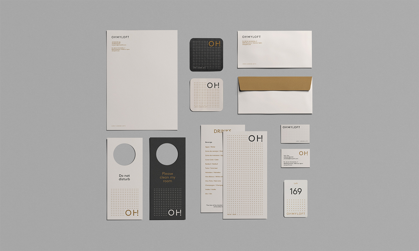The client wanted their image to convey minimalism, elegance and timelessness based on a fresh and clean corporate identity. Following this proposal, and with the intention of achieving maximum expression with minimal graphics, we decided to carry out the design of a merely typographic brand. For the logo design, we wanted to make a nice wink by adding the exclamation point inside the H itself, simulating the English expression “oh my god!” and achieving a very versatile identity.