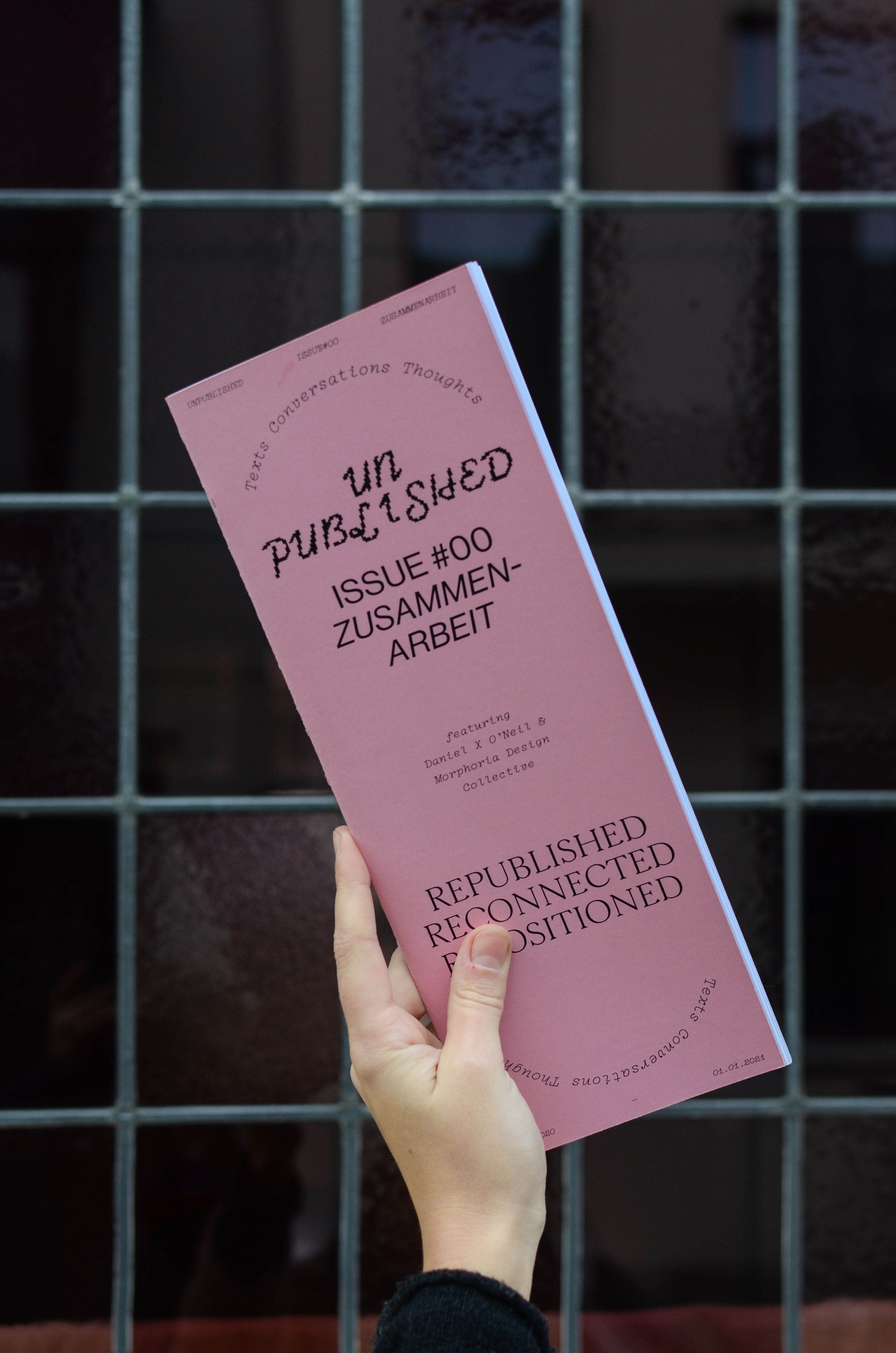 Unpublished is a publication series dedicated to research and reflect upon the framework and practice of the design industry. Every two weeks Unpublished Press releases a new issue on a different topic. The images show the printed editions of issue #00 “Zusammenarbeit” and #01 “Responsibility”. Unpublished can also be read online.