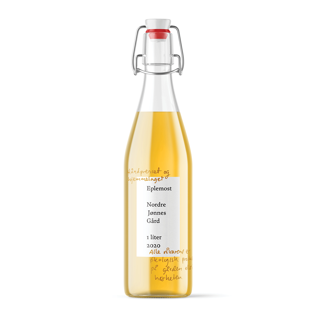 The whole visual profile for Nordre Jønnes Gård is basically just one typeface, always in black and always typeset at the same size. In addition, there’s often a little extra ‘something’ written out by hand.
