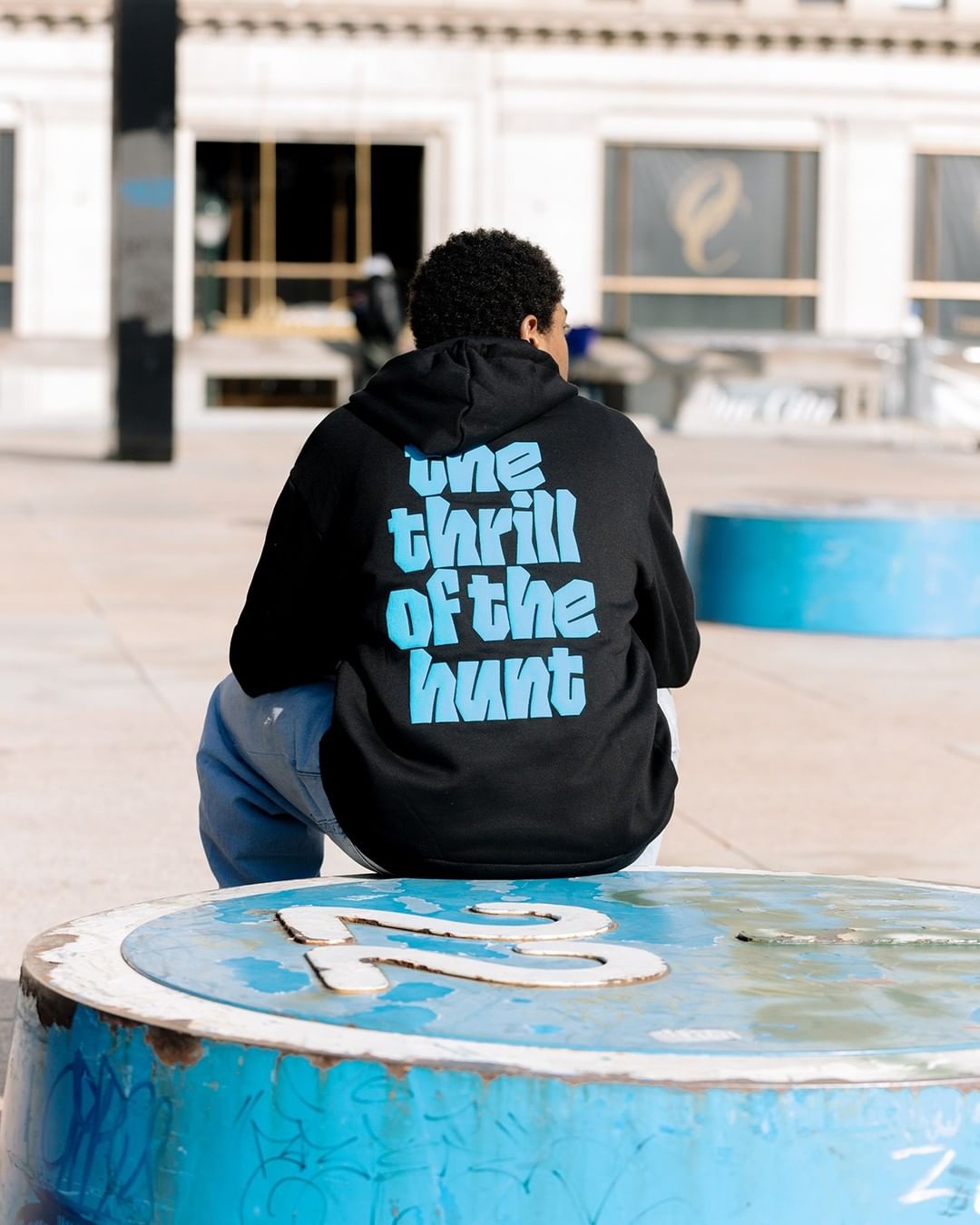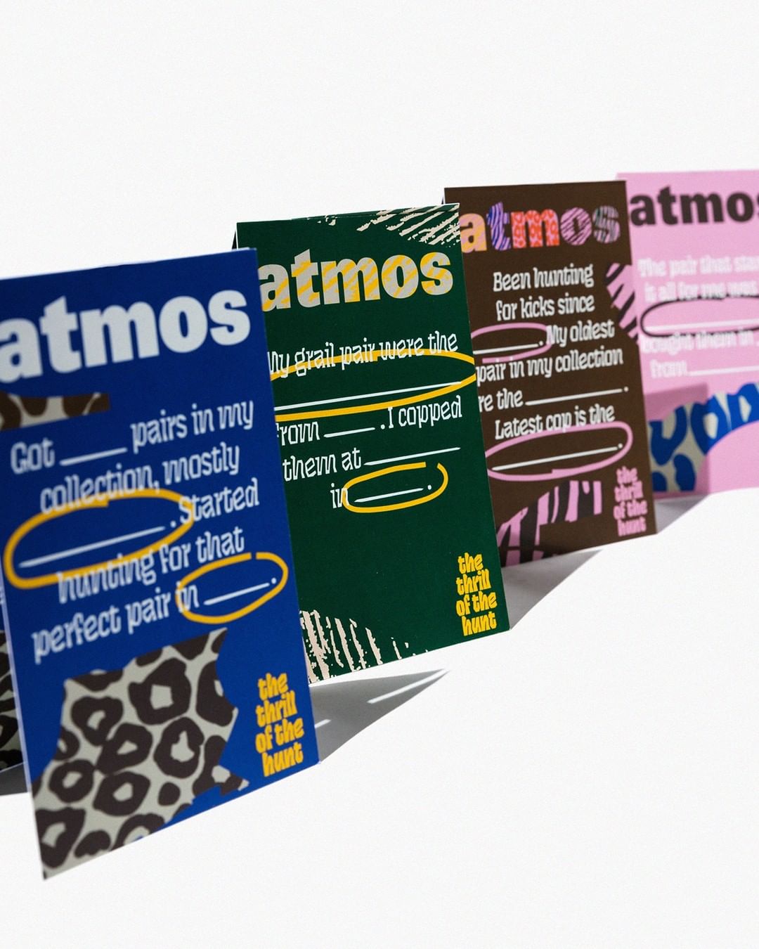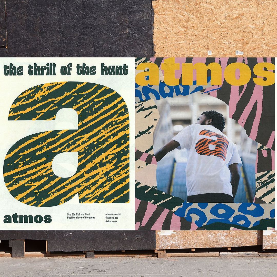 Designed by Portland-based studio FISK in collaboration with the atmos USA in-house team, atmos USA’s “Thrill of the Hunt” campaign uses Tommi Sharp’s Taters to encourage sneakerheads to “go wild”. Inspired by stamps carved from potatoes, the typeface’s chunky, organic shapes compliment the animal prints used in the campaign. FISK pairs Taters with stalwart Helvetica, an official atmos USA brand typeface. Still in use as of February 2021, the campaign spans advertising, environmental graphic design, social media, and the atmos USA house-brand clothing line.